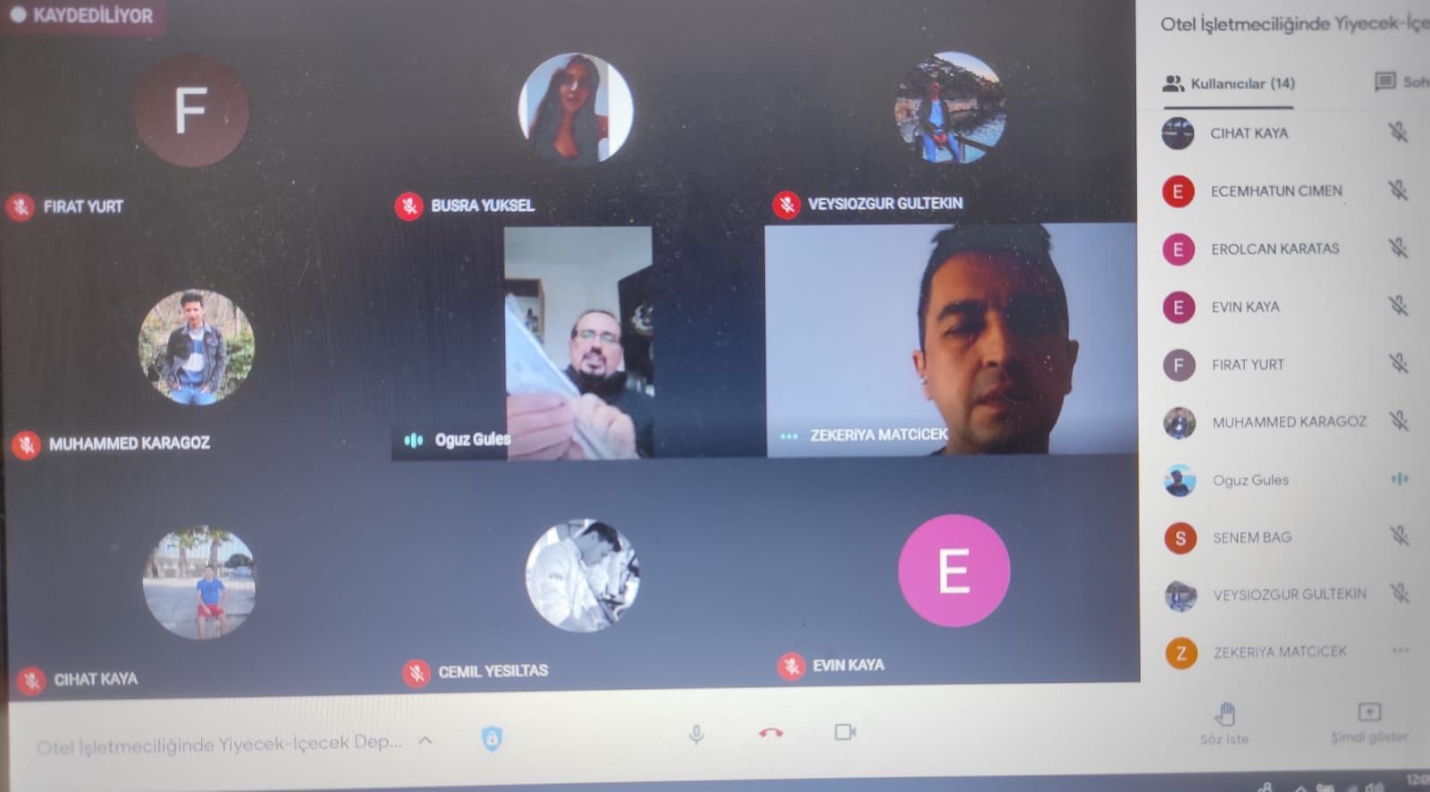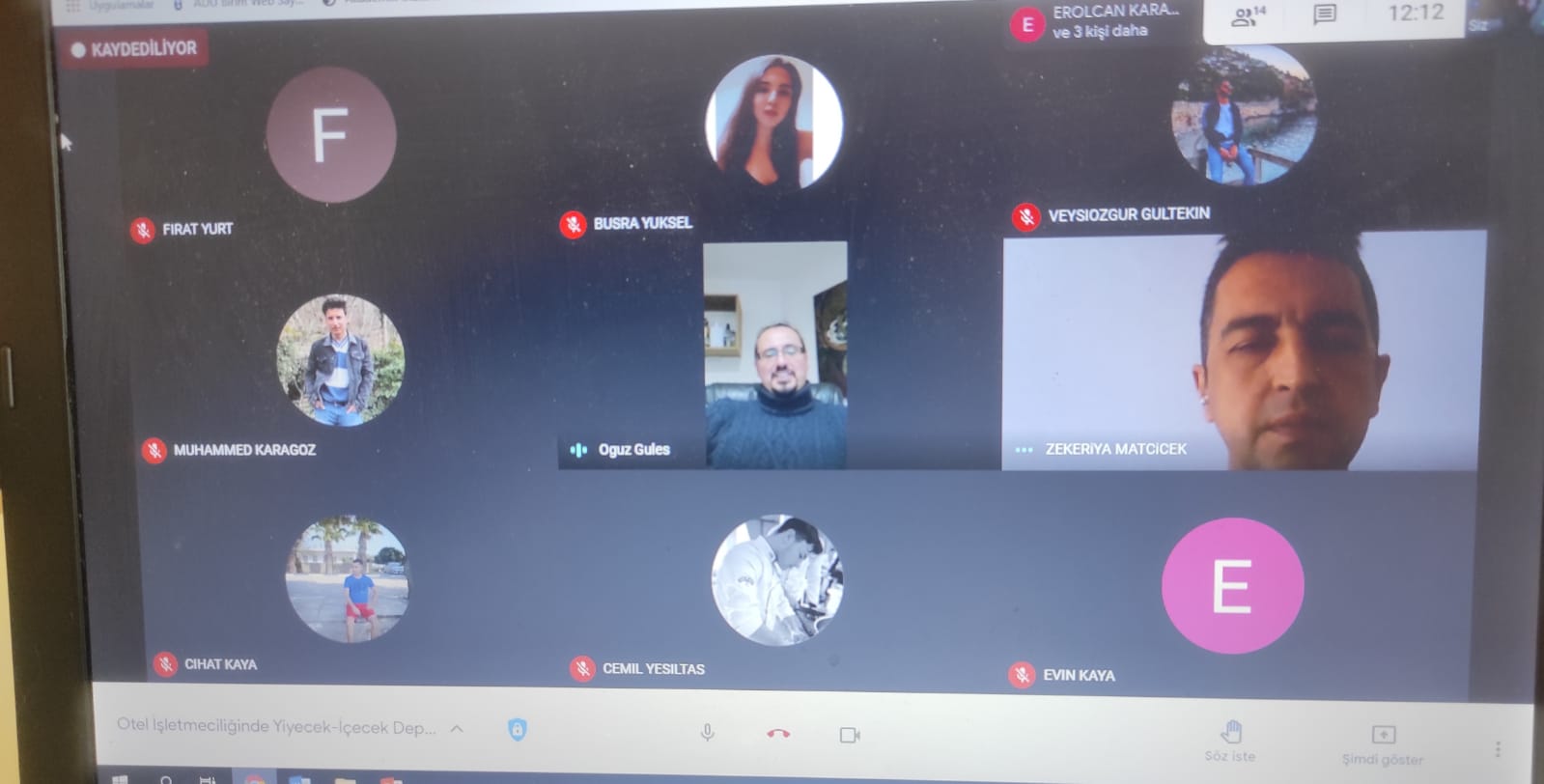 Karacasu Memnune İnci MYO’da “ Otel İşletmelerinde Yiyecek-İçecek Departmanı Sorunları” üzerine Söyleşi Düzenlendi. Karacasu Memnune İnci Meslek Yüksekokulu’nda 14 Nisan 2021 tarihinde Turizm ve Otel İşletmeciliği Programı 1. Ve 2. Sınıf öğrencileri ve Öğr. Gör. Zekeriya MATÇİÇEK ve Öğr.Gör. İsmail Mert ÖZDEMİR ve Kefaluka Resort Hotel (Bodrum) Yiyecek-içecek departmanı (F&B) Müdürü Oğuz GÜLEŞ’in katılımlarıyla “Otel İşletmelerinde Yiyecek-İçecek Departmanı Sorunları” üzerine söyleşi düzenlendi. Karacasu Memnune İnci Meslek Yüksekokulu Öğr. Gör. Zekeriya MATÇİÇEK’in moderatörlüğünü yaptığı söyleşide, Kefaluka Resort Hotel (Bodrum) Yiyecek-içecek departmanı (F&B) Müdürü Oğuz GÜLEŞ departman müdürlüğüne kadar uzanan kariyeri boyunca yaşadığı deneyimleri öğrencilerle paylaştıktan sonra, otel işletmelerinde yiyecek-içecek departmanın önemi ve yiyecek-içecek işletmeleri departmanındaki işleyiş hakkında bilgiler sundu. Öğrencilerden gelen soruların cevaplanmasıyla sona eren söyleşinin, pandemi dönemi sonrası yüz yüze olarak da gerçekleştirilmesi planlandı.