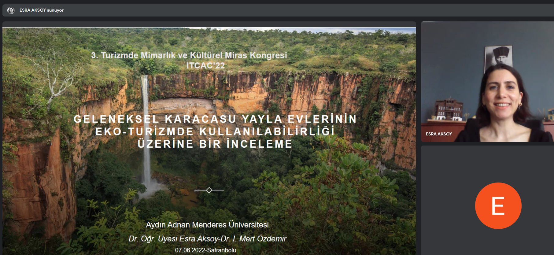 Yüksekokulumuz Mimari Restorasyon Programı Dr. ÖÄŸr. Üyesi Esra AKSOY ve Turizm ve Otel İşletmeciliÄŸi Programı öÄŸretim görevlisi Dr. İ. Mert ÖZDEMİR, 06-08 Haziran 2022 tarihleri arasında Karabük Üniversitesi, Çanakkale Onsekiz Mart Üniversitesi, İzmir Kavram M.Y.O ve İzmir Demokrasi Üniversitesi iÅŸbirliÄŸinde düzenlenen 3. Turizmde Mimarlık ve Kültürel Miras Kongresine ‘‘ Geleneksel Karacasu Yayla Evlerinin Eko-Turizmde KullanılabilirliÄŸi Üzerine Bir İnceleme’’ baÅŸlıklı bildiriyle katılım saÄŸladılar. Bildiride Karacasu geleneksel yayla evlerinin mekânsal analizleri yapılarak SWOT analizi yöntemiyle de eko-turizm açısından kullanılabilirliÄŸi üzerine deÄŸerlendirme yapılmıştır.