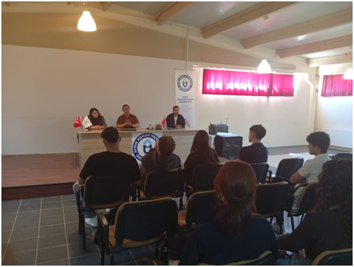 Yüksekokulumuzda 06 Nisan 2026 tarihinde Turizm ve Otel İşletmeciliği programı öğrencilerine yönelik Kariyer Planlaması dersi kapsamında “Xanadu Hotel Resort” yöneticilerinin katılımıyla kariyer günü etkinliği düzenlendi. Otel, Lokanta ve İkram Hizmetleri Bölüm Başkanı Dr. İsmail Mert ÖZDEMİR ve Öğr. Gör. Zekeriya MATÇİÇEK’in organizatörlüğünde gerçekleşen etkinlikte F&B Müdürü Asistanı Özgür TAŞ, Ön Büro Şefi Arda KÜTÜKÇÜ ve Kat Hizmetleri Müdür Yardımcısı Şerife ÖZGÜN, çalıştıkları departmanlardaki işleyiş hakkında öğrencilere bilgi verdi. Otel yönetiminin personellere karşı bakış açısı ve tutumlarına ilişkin detaylı bilgilere ek olarak, otel yönetiminin işletmede staj yapmak isteyen öğrencilerden beklentilerin neler olduğu vurgulandı. Verimli geçen etkinlik, öğrencilerden gelen soruların cevaplanması ve başvuru yapmak isteyen öğrencilerin başvuru formu doldurmalarıyla son buldu.