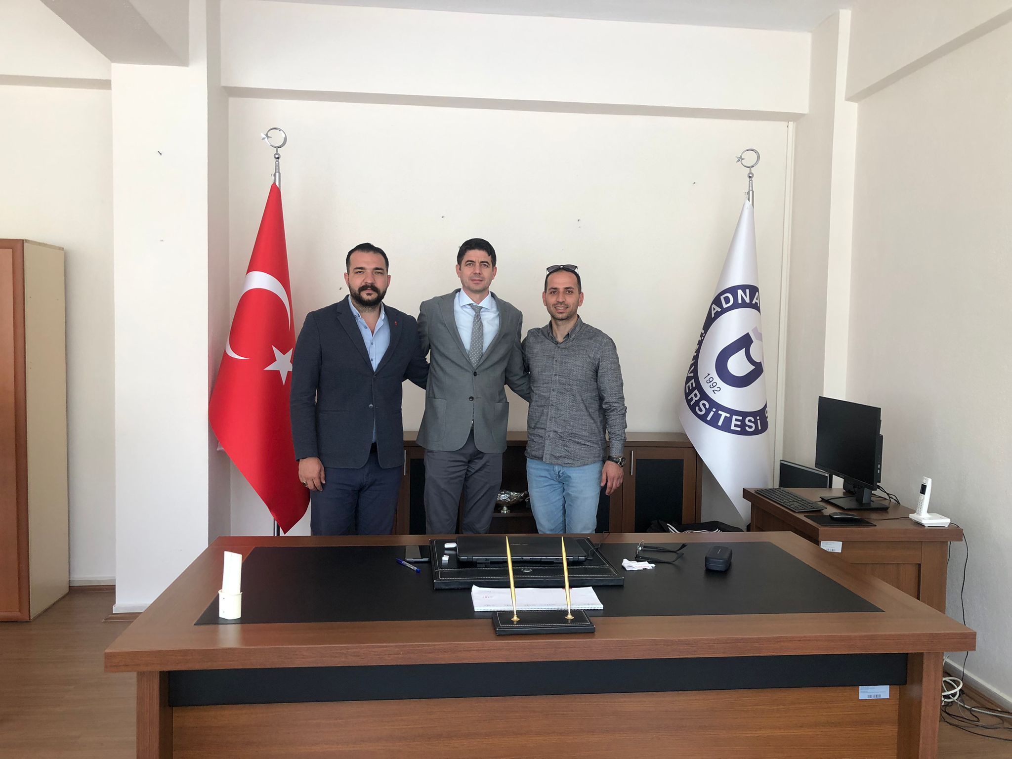 Aydın Veteriner Hekimler Odası Yönetim Kurulu BaÅŸkanı Veteriner Hekim Cemil Åžahin ve Aydın Veteriner Hekimler Odası Saymanı Sedat Turgut, 10 Mayıs 2023 tarihinde Yüksekokulumuz Müdürü Dr. ÖÄŸr. Üyesi Niyazi Küçük’e hayırlı olsun ziyaretinde bulundu.