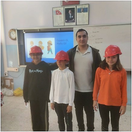 Dr. Öğr. Üyesi H. Önlem Ersöz’ün danışmanlığında yapılan toplumsal katkı projesinde İi Sağlığı ve Güvenliği Programı öğrencisi Anıl Bozdoğan ilkokul çocuklarına İSG’nin öneminden bahsetti. Öğrencilere iş yaşamında ve günlük yaşamda tehlike ve risk kavramlarını açıkladı.