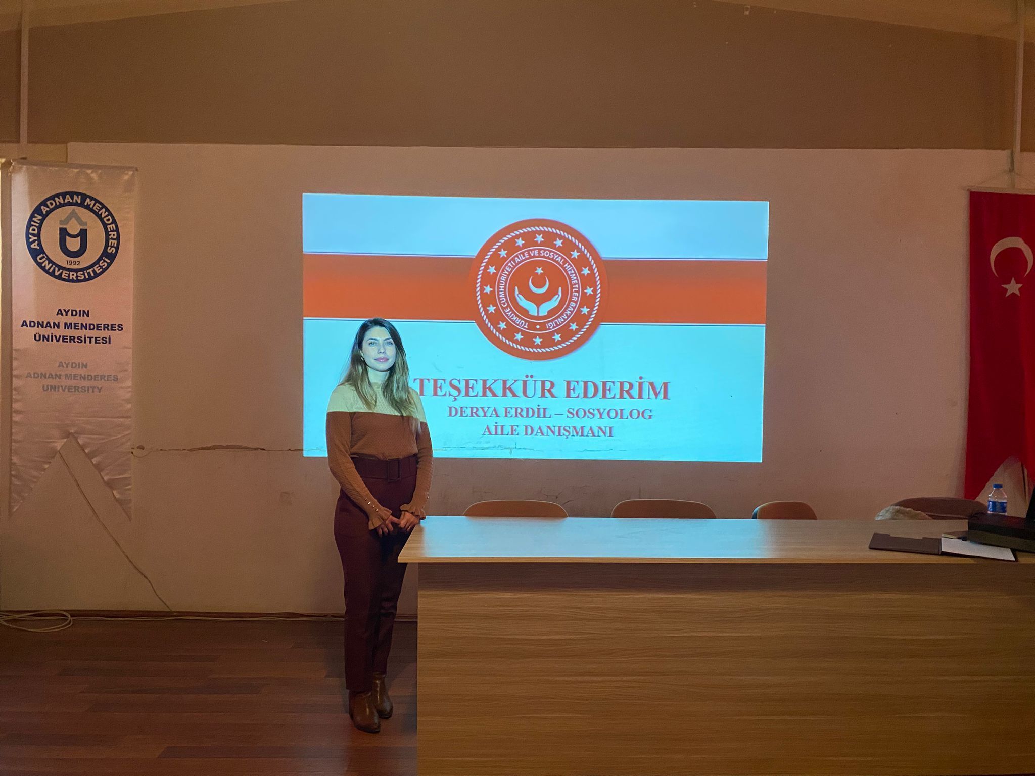 Konferansa Kuyucak Sosyal Hizmet Merkezi Müdürlüğü Kadın Hizmetleri Birimi personeli Sosyolog ve Aile Danışmanı Derya ERBİL konuşmacı olarak katıldı.