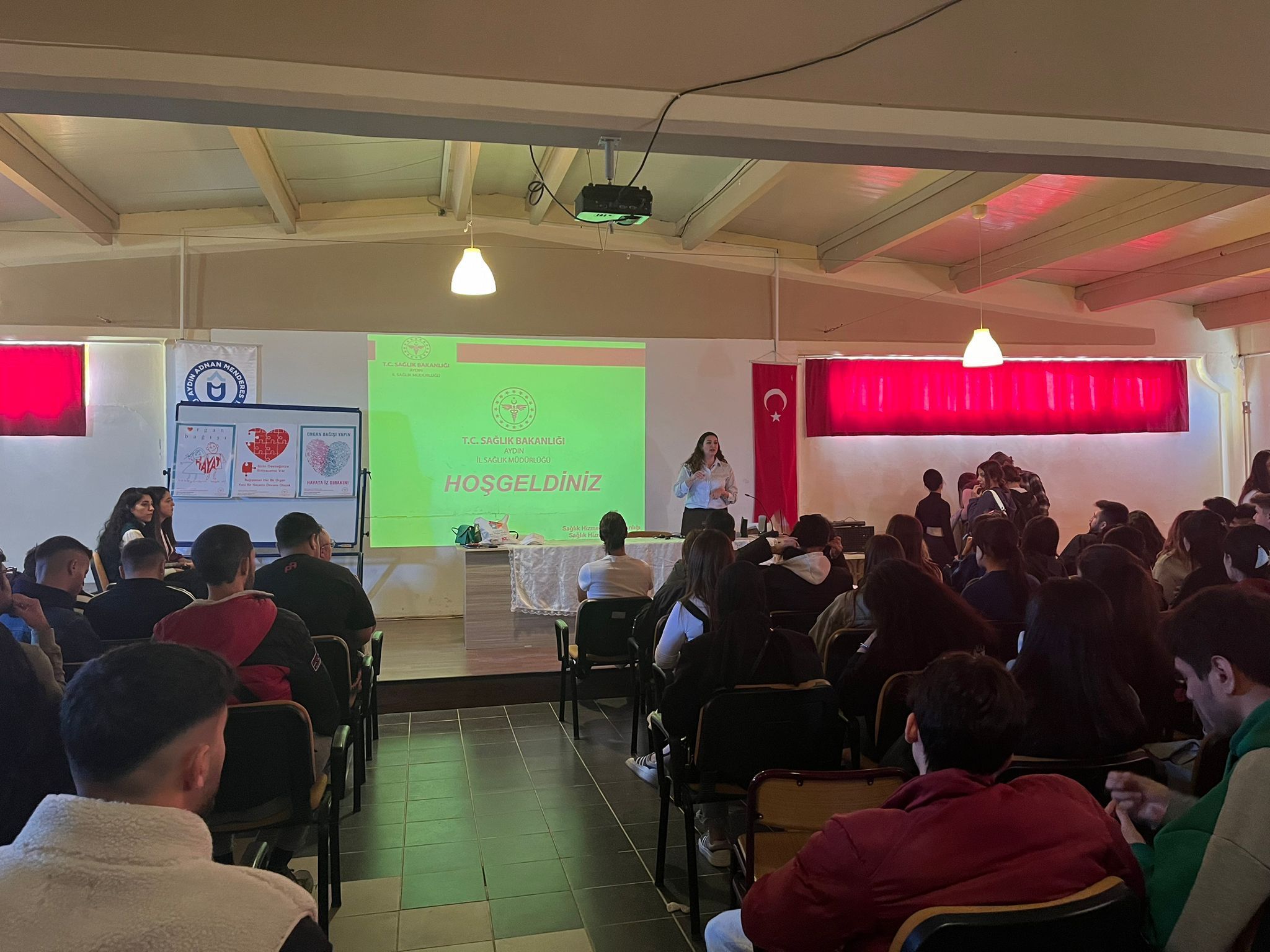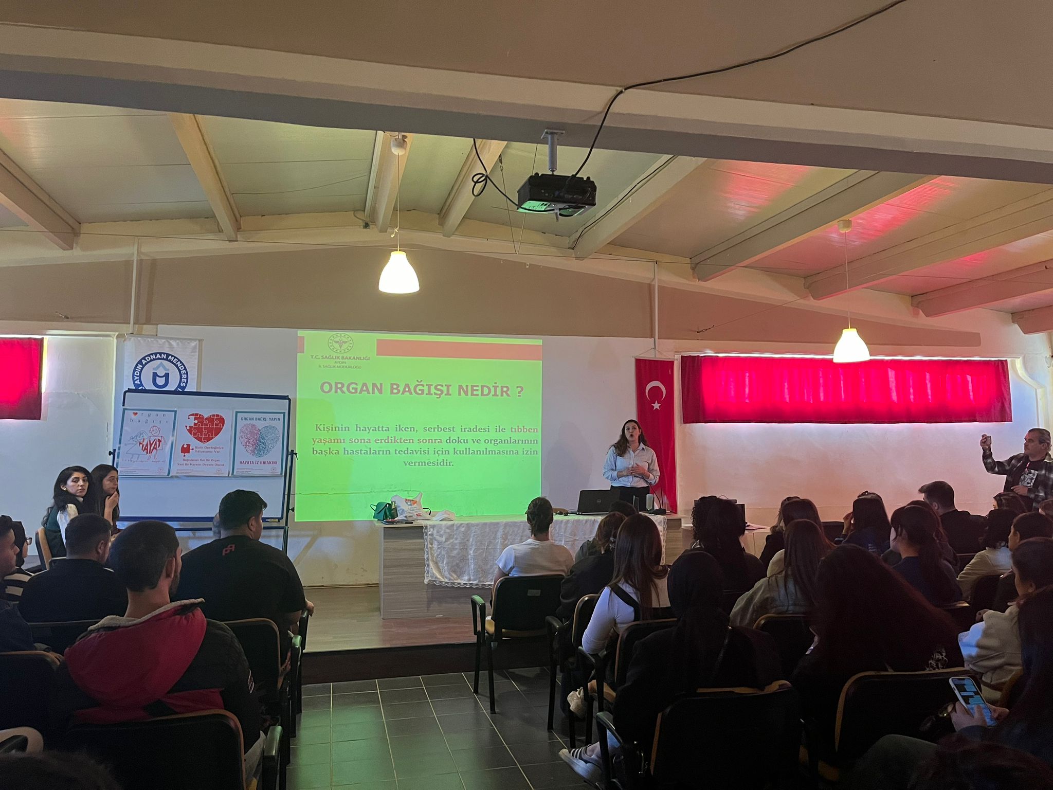 Karacasu Toplum Sağlığı Merkezi’nden Dr. Firuze Kesici’nin sunumuyla gerçekleşen seminerde Hemşire Sıla Günay ve Hemşire Mizgin Kılınç organ bağışı ve süreçleri hakkında bilgi verdiler.