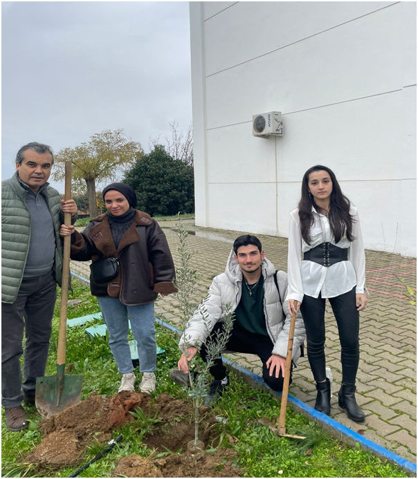 Bu amaçla Bezci ve İnci Kampüs bahçelerimize zeytin, mandalina ve elma fidanları dikildi. EtkinliÄŸe müdür yardımcılarımız Dr. ÖÄŸr. Üyesi Esra AKSOY ve Dr. ÖÄŸr. Üyesi Hüseyin Önlem ERSÖZ’de eÅŸlik etti.