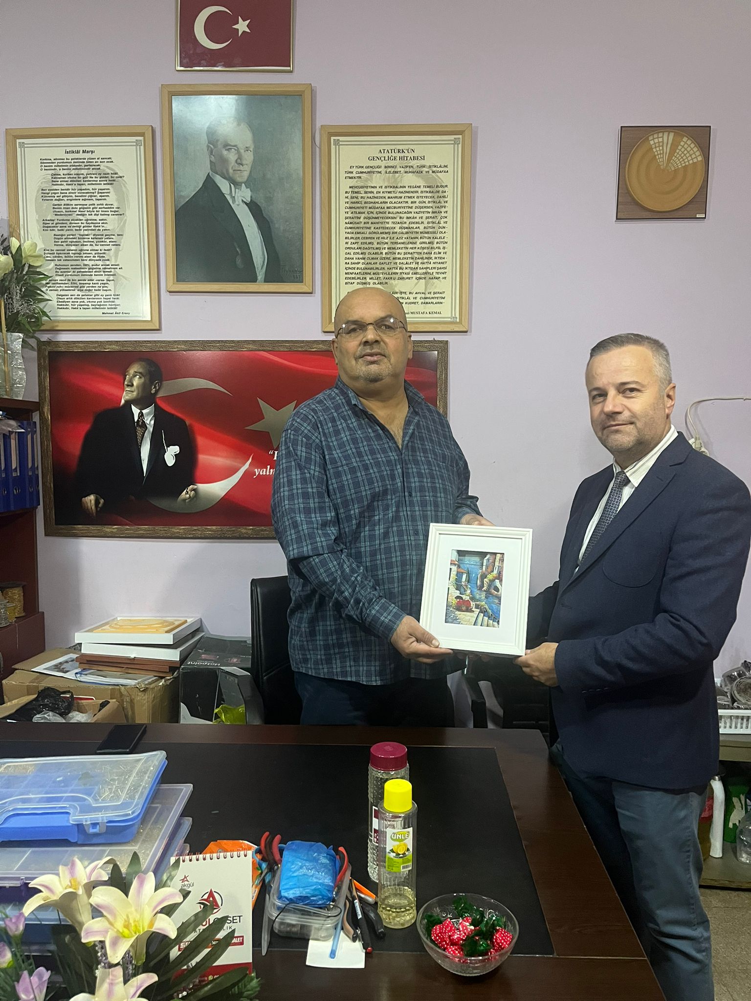 Karşılıklı teÅŸekkürlerin ve plaket takdiminin ardından ziyaret son buldu.