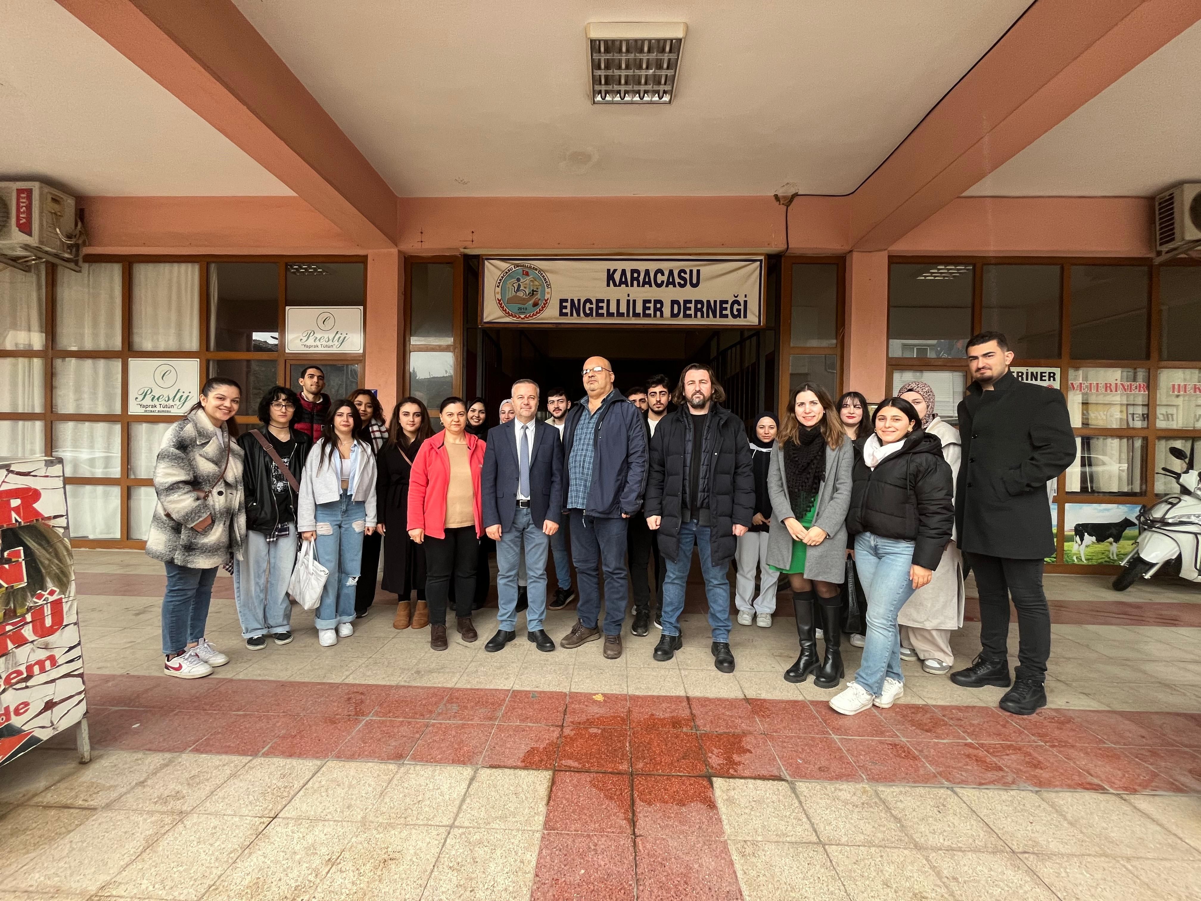Yüksekokul Müdürü ÖÄŸr. Gör. Mehmet TaÅŸdelen, Müdür Yardımcıları Dr. ÖÄŸr. Üyesi Esra Aksoy, Dr. ÖÄŸr. Üyesi İ. Mert Özdemir ve Yüksekokul öÄŸrencilerimiz, 3 Aralık Dünya Engelliler günü sebebiyle Karacasu Engelliler DerneÄŸi’ne ziyarette bulundu.