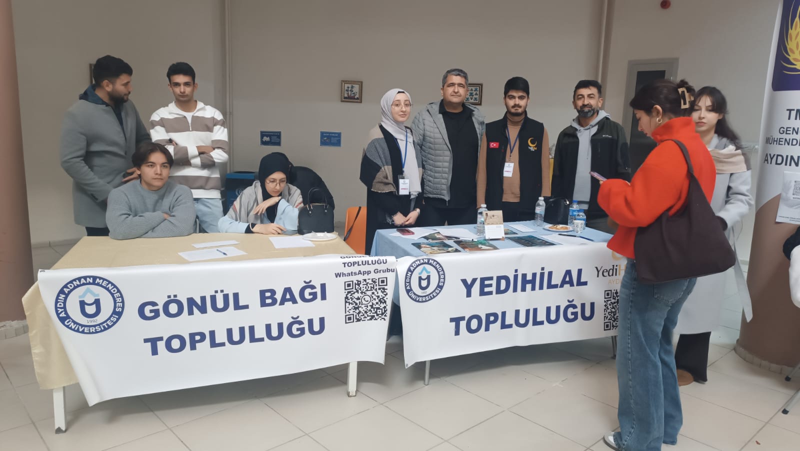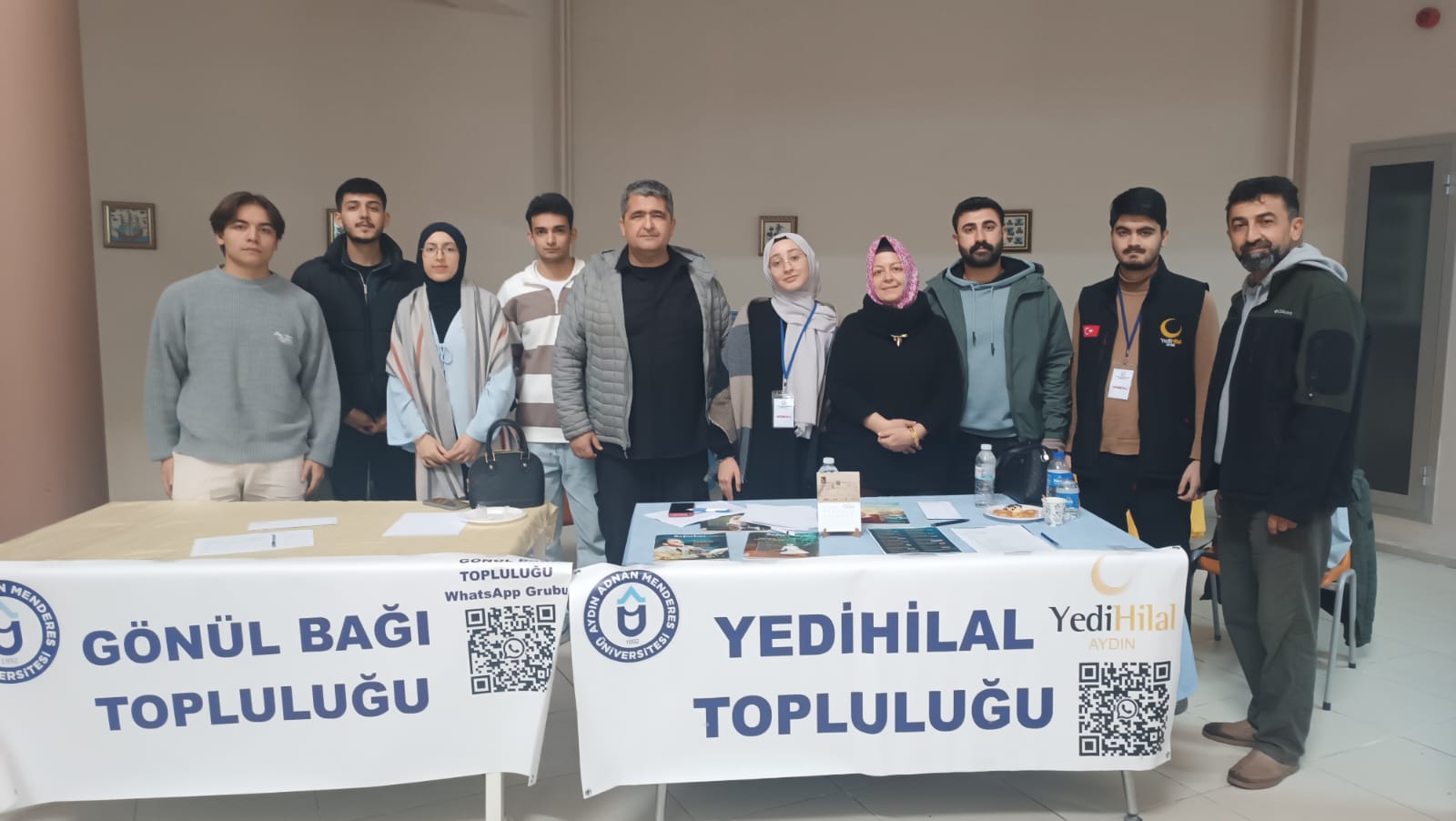 ADÜ Güney Kampüsü Kariyer Günü Etkinliği topluluk tanıtımına diğer toplulukların yanı sıra danışmanlığını Koçarlı MYO Dr. Öğr. Üyesi Feyza Döndü Bilgin’in yaptığı ADÜ Öğrenci Topluluklarından Yedi Hilal Topluluğu ve Gönül Bağı Topluluğu Katıldı. Topluluk tanıtımıyla öğrencilerin birbiriyle kaynaşması, topluluklara üye olması ve aidiyat duygusunun geliştirilmesi sağlandı. Etkinliğe Ziraat Fakültesi ve Koçarlı Meslek Yüksekokulu'ndan akademik personel, idari personel ve öğrenciler katıldı.