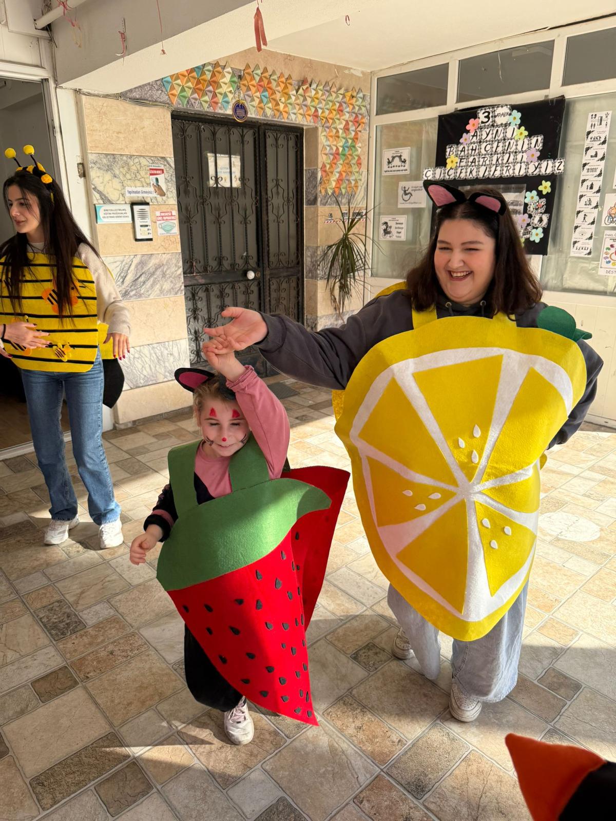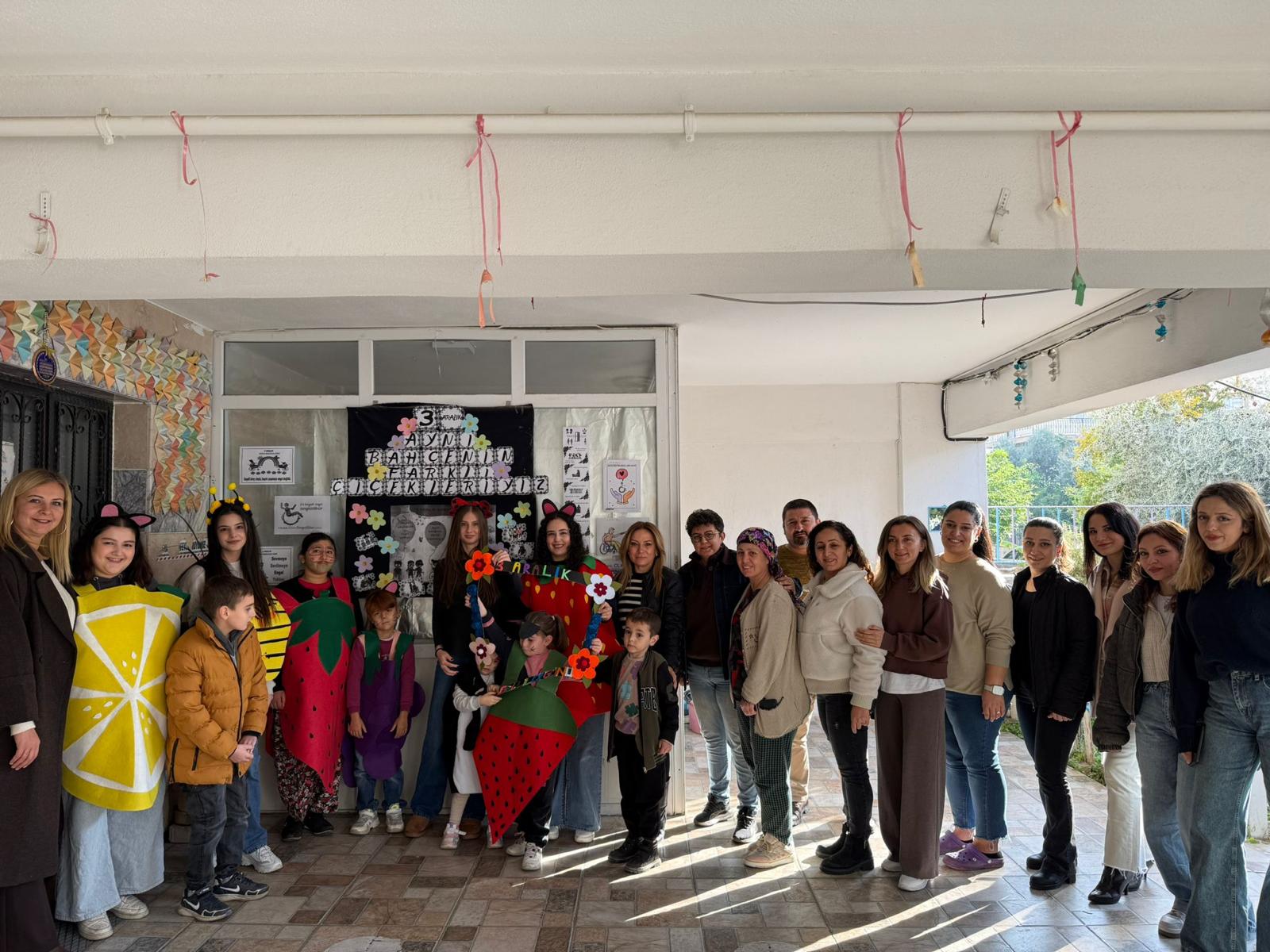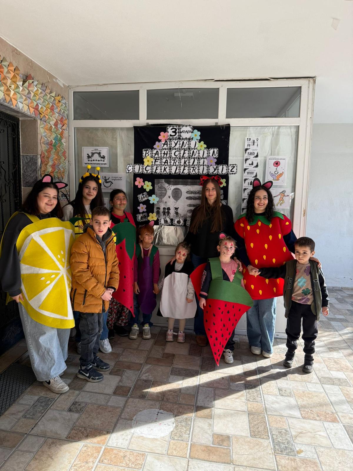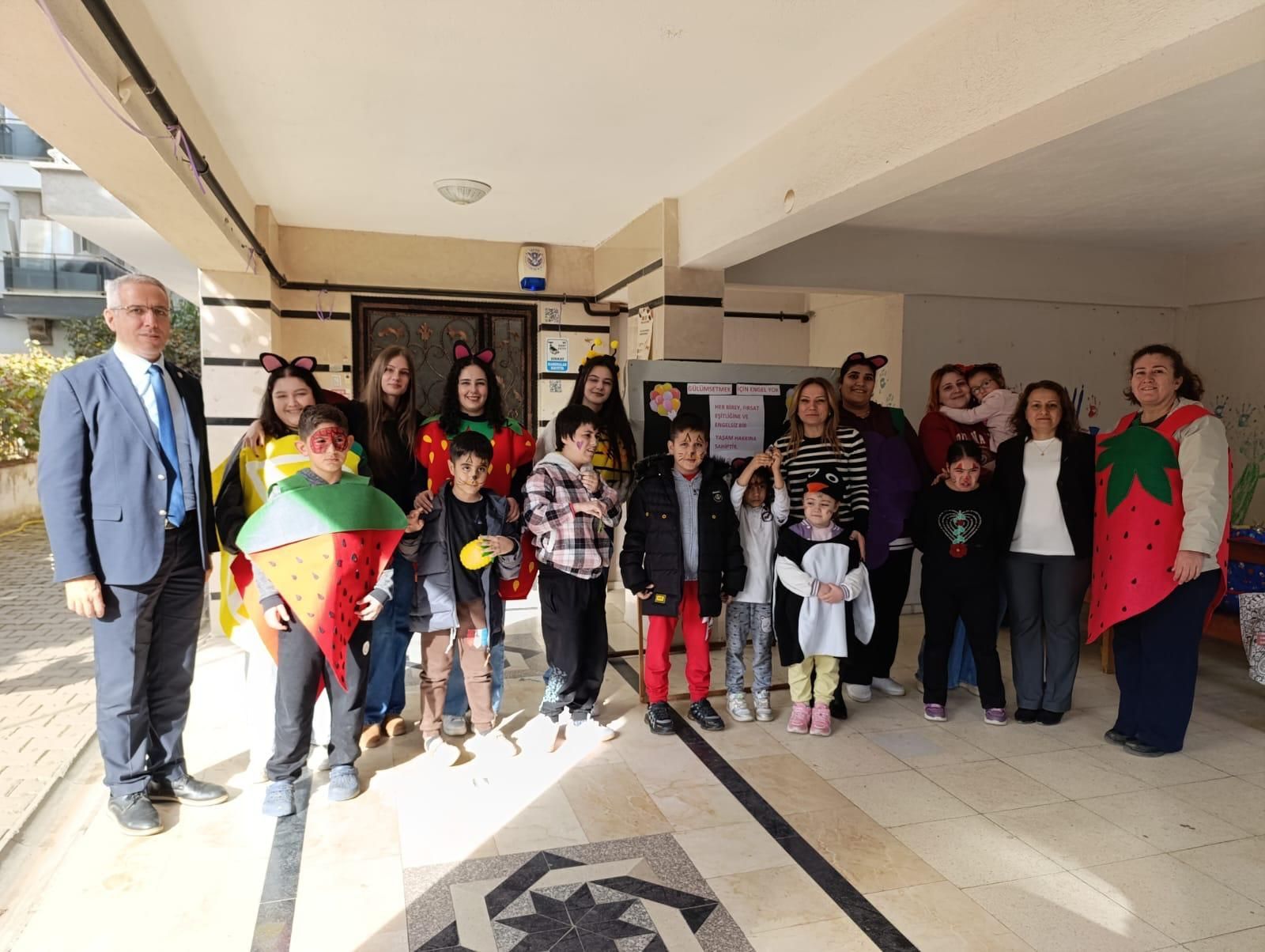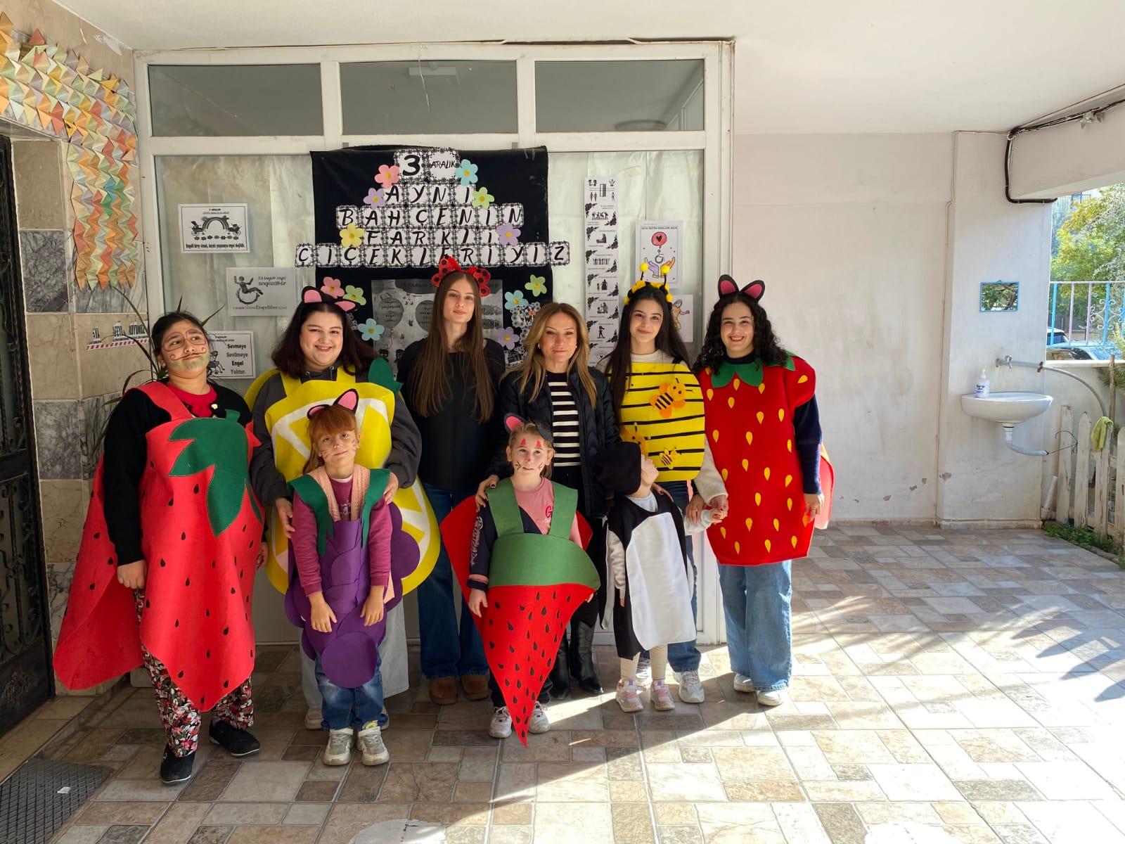 Aydın Adnan Menderes Üniversitesi Koçarlı Meslek Yüksekokulu Çocuk Gelişimi Programı öğrencileri Topluma Hizmet Uygulamaları dersi kapsamında 3 Aralık Dünya Engelliler Günü olması nedeniyle anlamlı bir ziyaret gerçekleştirdi. Öğr. Gör. Ayfer Ergezen koordinatörlüğünde özel olarak hazırlanan kostümlerle yola çıkan öğrencilerimiz, uygulama okullarımız olan Ege Güldem Özel Eğitim ve Rehabilitasyon Merkezi ve Seda Özel Eğitim ve Rehabilitasyon Merkezinde eğitim gören özel gereksinimli çocuklarla buluştu.
