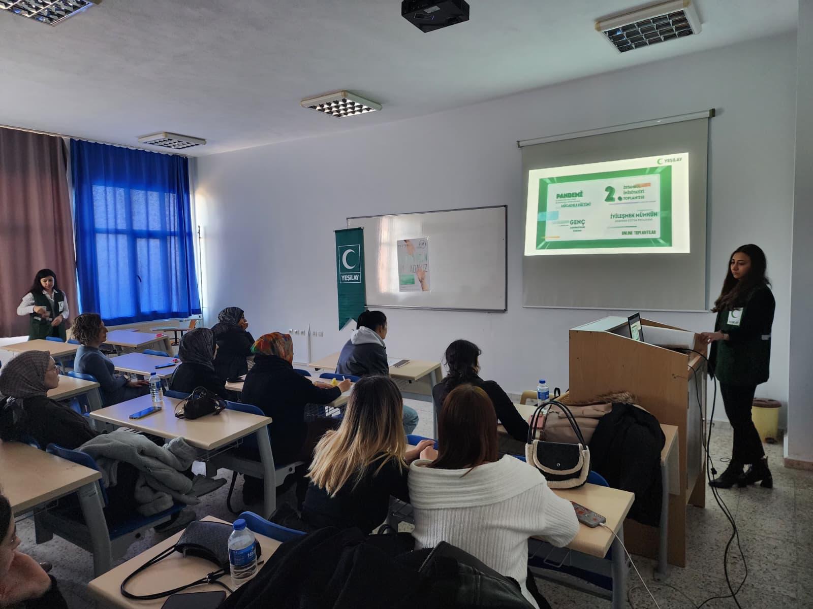 Üniversitemiz Koçarlı Meslek Yüksekokulu Dr. Öğr. Üyesi Feyza Döndü Bilgin koordinatörlüğünde Bağımlılıkla Mücadele dersi kapsamında Aydın Yeşilay Danışmanlık Merkezinden psikolog Elvan Akcıl Fidan ve Aydın Yeşilay Şube Sekteri Sayın Günnur KIRLANGIÇ öğrencilerimize merkezleri bünyesindeki Bağimlılıkla Mücadelede yolunda neler yapabilecekleri konusunda detaylı bilgiler verdiler.