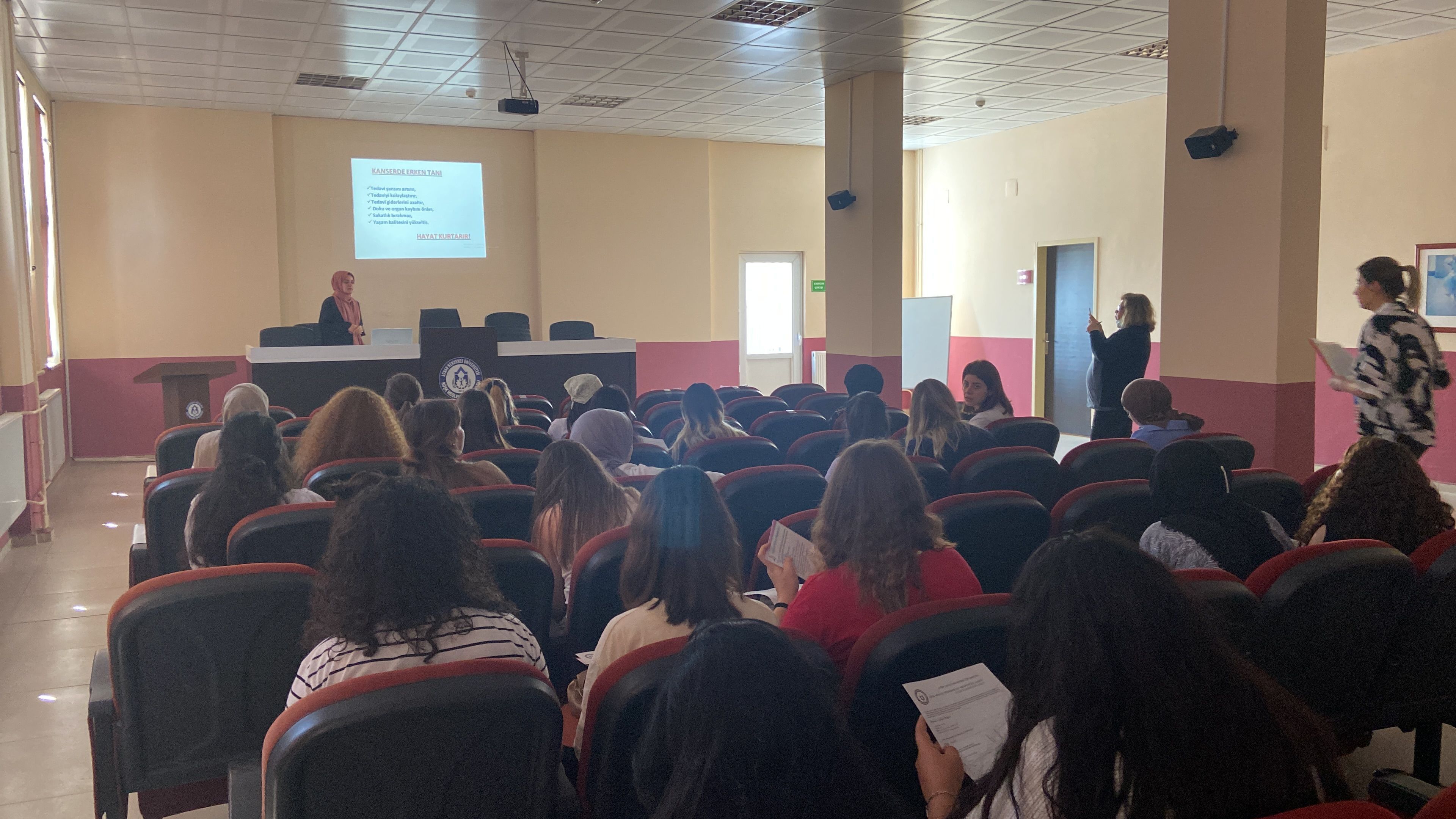 Aydın Adnan Menderes Üniversitesi KöÅŸk Meslek Yüksek Okulu Yönetim ve Organizasyon Bölüm BaÅŸkan V. ÖÄŸr.Gör.AyÅŸenur ÖREN ve KöÅŸk Devlet Hastanesi’nde görevli Doktor Servet DÖNMEZER ile Ebe Emine TOSUN tarafından kadın öÄŸrenci ve çalışanlar için düzenlenen, Aydın Kadın SaÄŸlığı EÄŸitim Projesi kapsamında KöÅŸk Meslek Yüksekokulu Konferans Salonu’nda 16 Mayıs 2022 tarihinde verilen eÄŸitimde kadın saÄŸlığına, meme kanserine ve bağımlılıkla mücadele konularına kapsamlı bir ÅŸekilde deÄŸinilmiÅŸtir. 26 öÄŸrencinin katıldığı eÄŸitim, öÄŸrenciler tarafından sorulan soruların yanıtlanmasıyla tamamlanmıştır. Katılımcıların %78’i verilen eÄŸitimden çok memnun kaldıklarını belirtmiÅŸlerdir.