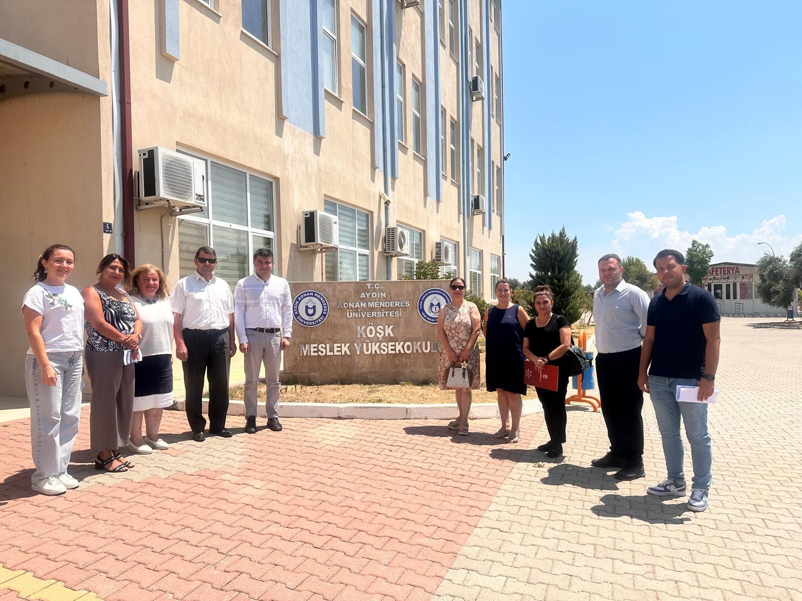 Nazik ziyaretleri için Aydın Ticaret Odası temsilcilerine teÅŸekkür eden Doç. Dr. Fatih Mehmet Yılmaz, ADÜ KöÅŸk MYO’nun eÄŸitim vizyonunu ve İşletmede Mesleki EÄŸitim Uygulamasını tanıtarak, okulumuzun sektörel iÅŸbirliklerine verdiÄŸi önemi vurguladı.