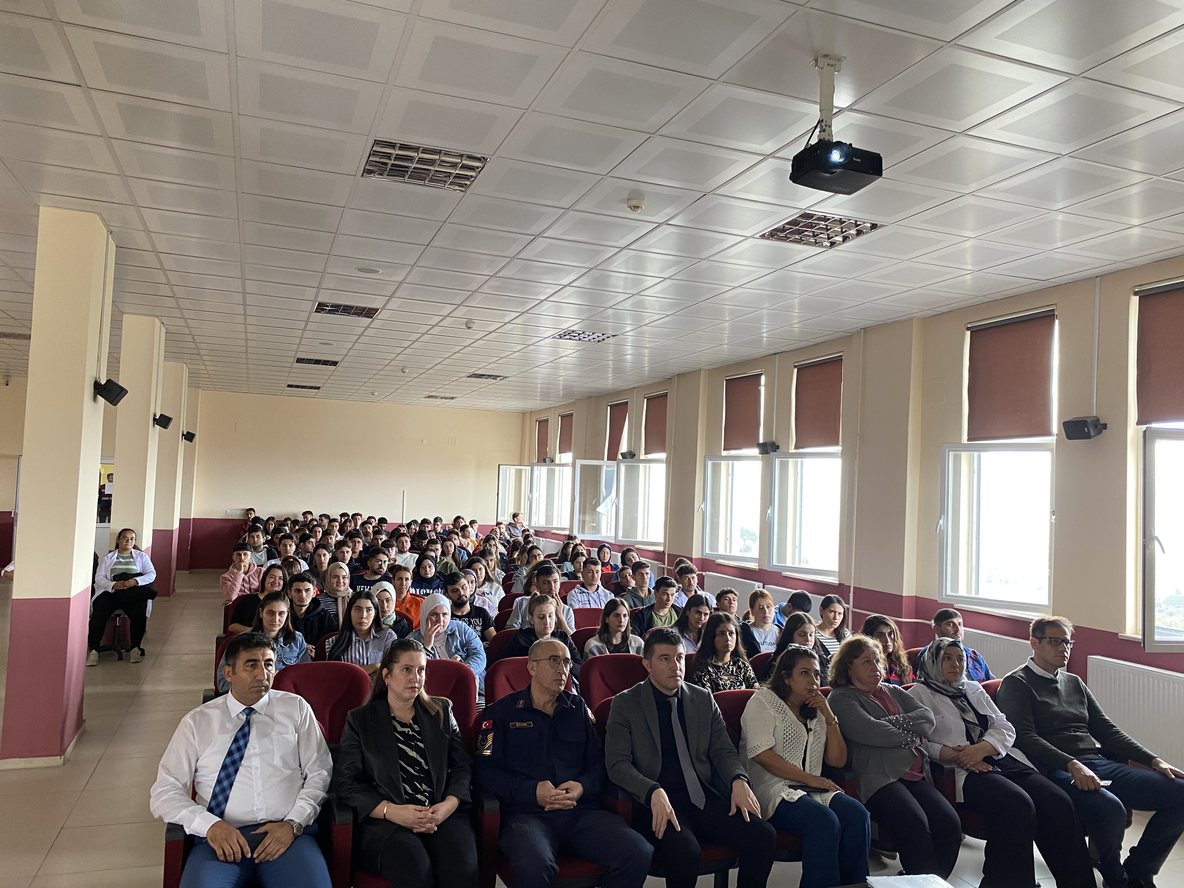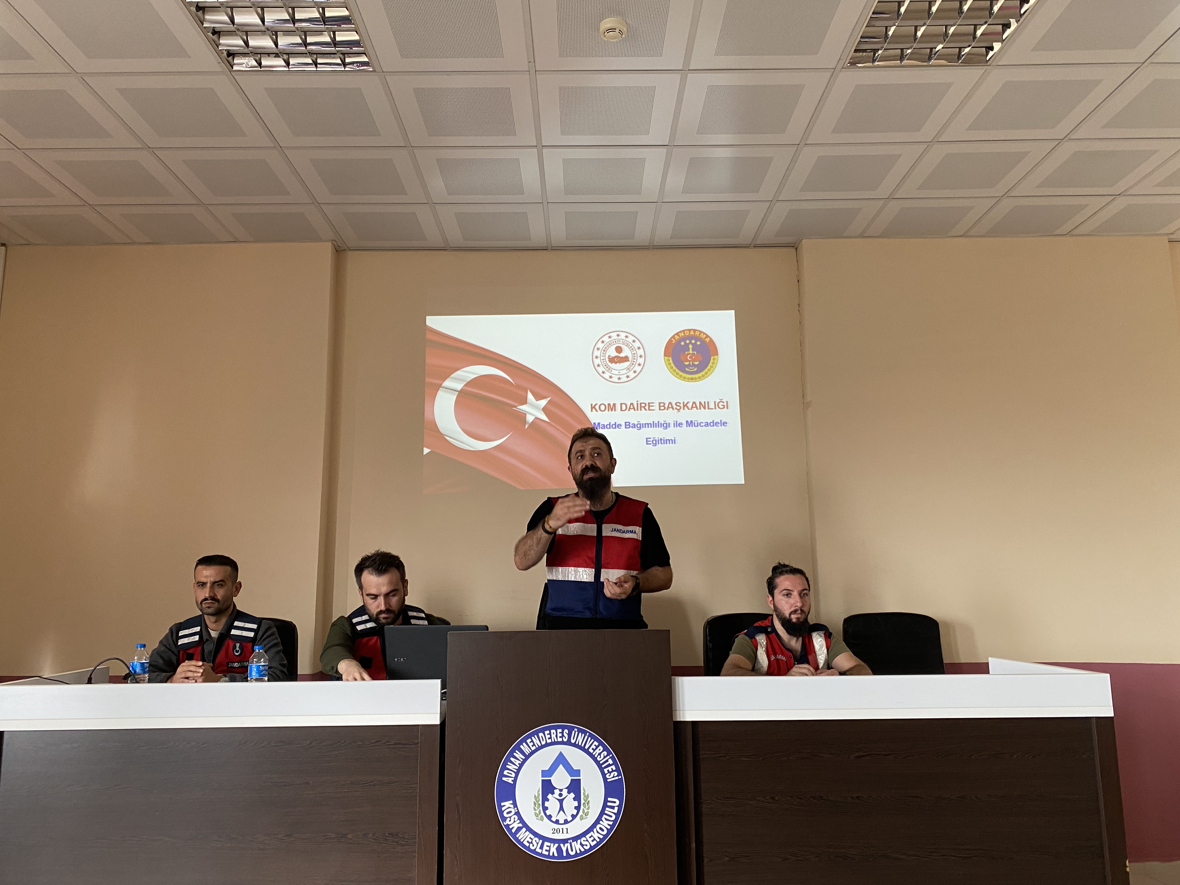 Aydın İl Jandarma Komutanlığı bünyesindeki Narkotik Suçlarla Mücadele Şube Müdürlüğü ve Siber Suçlarla Mücadele Şube Müdürlüğü personeli tarafından 6 Kasım 2023 tarihinde, Meslek Yüksekokulumuz öğrencilerine yönelik uyuşturucu madde kullanımı ve zararları ile siber suçlarla mücadele konularında narkotik köpekleri ile birlikte etkinlik ve tatbikat düzenlendi. Yapılan etkinlikte, uyuşturucu ile mücadelenin önemi ve siber suçların toplum üzerindeki etkileri vurgulanırken, öğrencilere bu suç türleriyle nasıl mücadele edileceği konusunda bilgiler verildi. Gerçekleştirilen tatbikatta ise, narkotik köpekleri tarafından teorik bilgilerin pratiğe dökülmesi sağlanarak öğrencilerin konuları daha iyi anlamaları sağlandı. Etkinlik, öğrenciler tarafından büyük ilgi gördü ve konularında uzman ekipler tarafından interaktif bir yaklaşımla gerçekleştirildi. Etkinlik, öğrencilerden gelen soruların cevaplandırılması ve eğitimi veren personellere Meslek Yüksekokulu Müdürümüz Doç. Dr. Fatih Mehmet YILMAZ tarafından teşekkür belgesi verilmesinin ardından sona erdi.