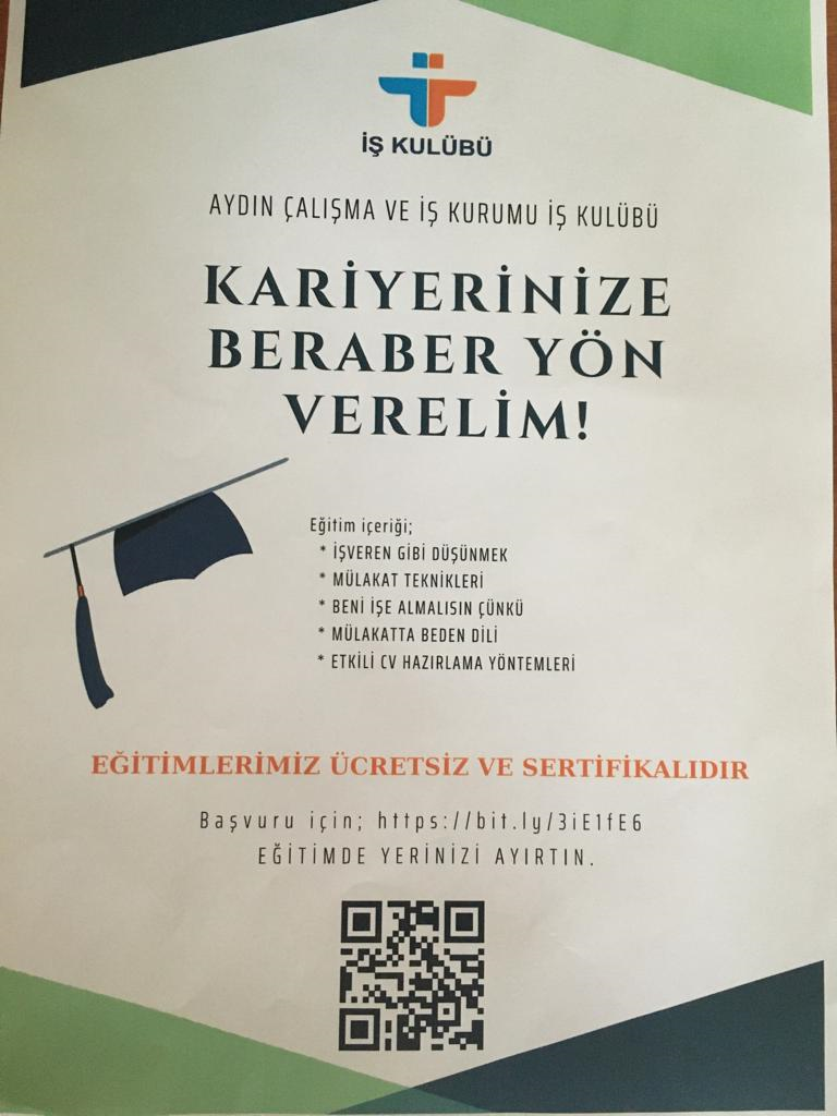Aydın Çalışma ve İş Kurumu İş Kulübü Liderleri Emine KARAKOÇ ve Gül YILDIZ tarafından 22.11.2021 tarihinde Adnan Menderes Üniversitesi Köşk Meslek Yüksekokulu öğrencilerine, gençleri iş hayatına hazırlamaya yönelik bilgiler verilmiş, iş hayatında beden dili, etkili iletişim, mülakat teknikleri, özgeçmiş hazırlamanın önemi ve İŞKUR’ un öğrencilere yönelik hizmetleri konularında sunum gerçekleştirilmiştir.