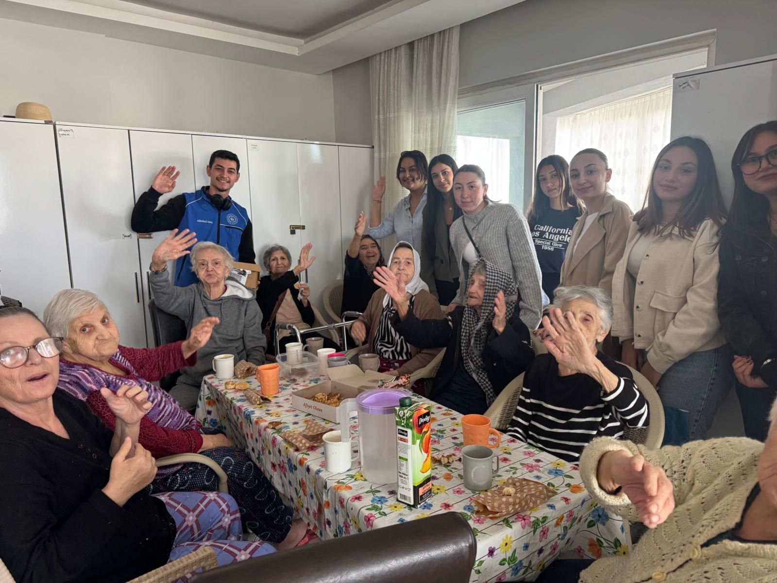 Huzurevi sakinleri ise öÄŸrencilerin ziyaretinden duydukları mutluluÄŸu dile getirerek teÅŸekkür ettiler. Etkinlik, toplu hatıra fotoÄŸrafı çekimiyle son buldu.