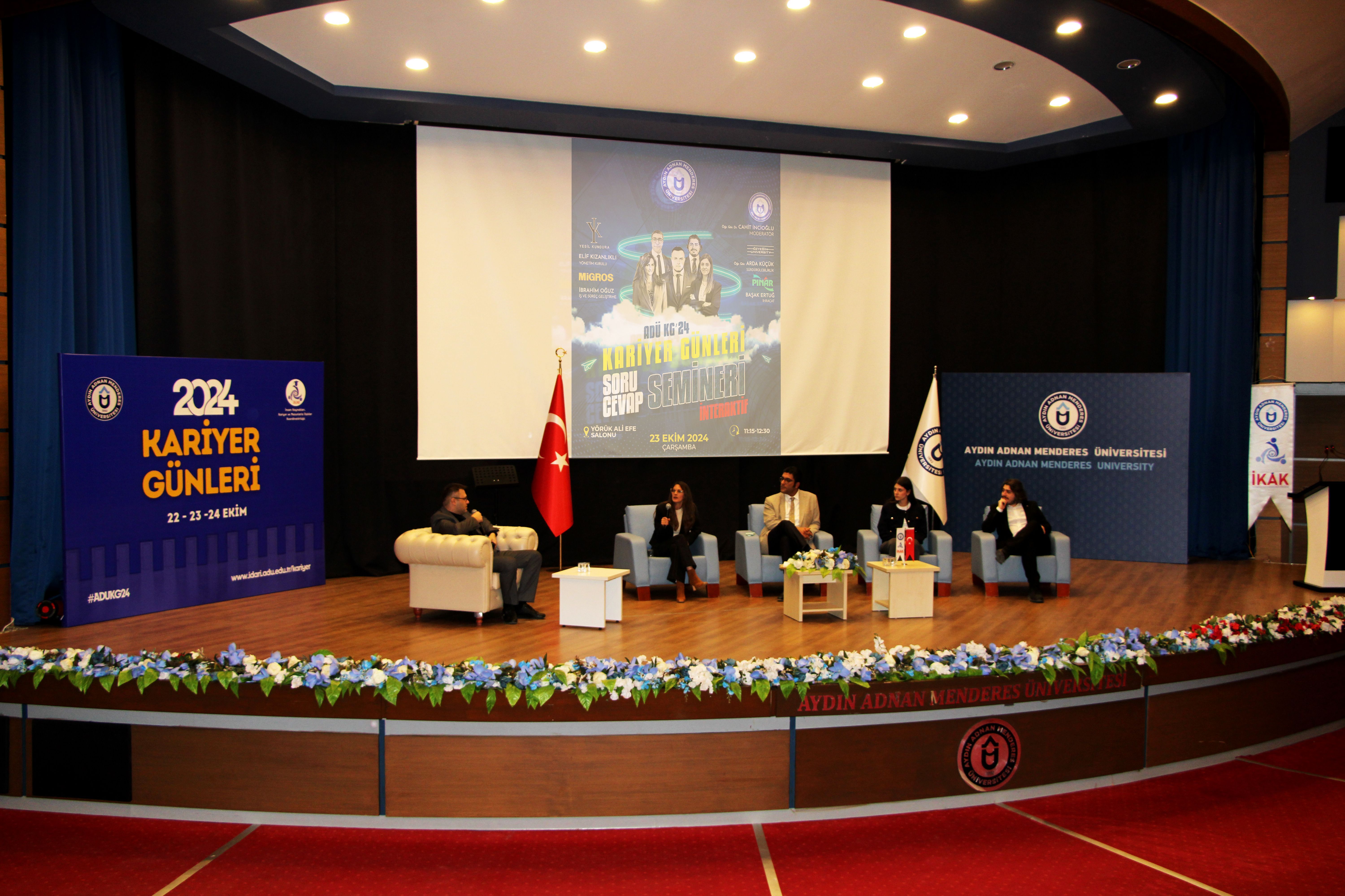 Aydın Adnan Menderes Üniversitesi Kariyer Günleri 2024 etkinlikleri çerçevesinde, Migros, Pınar, Yeşil Kundura ve Özyeğin Üniversitesi markalarını temsil eden yöneticilerin katılımıyla İnteraktif Soru-Cevap Semineri düzenlendi.