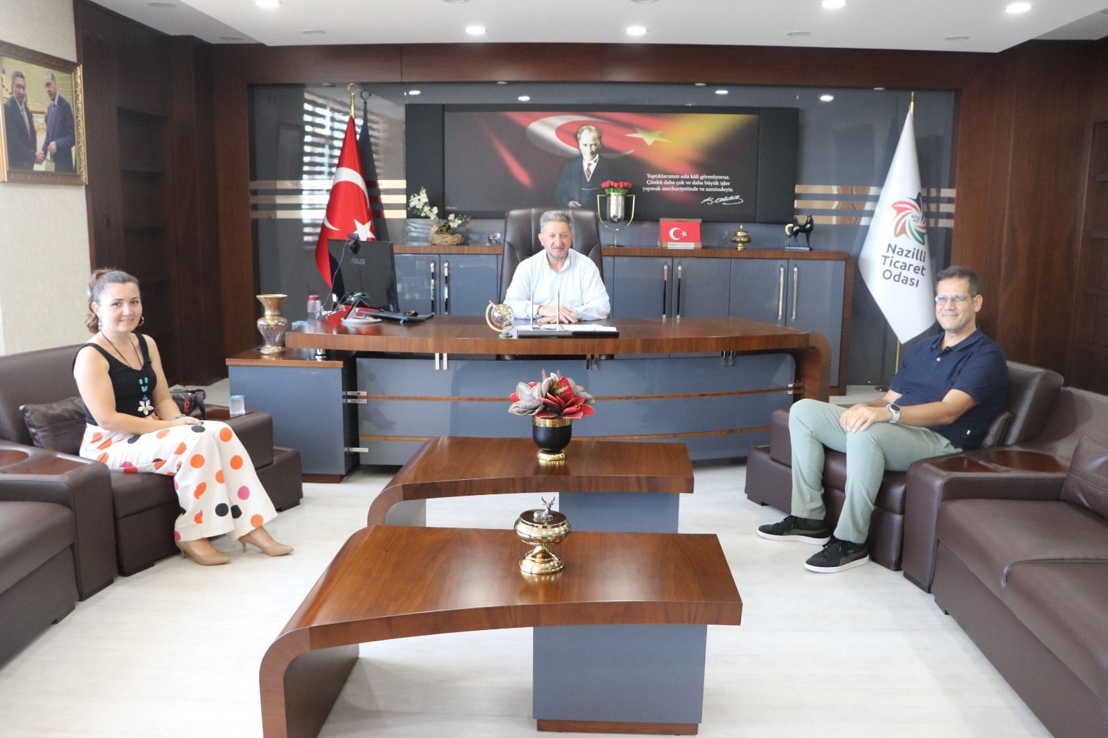 Meslek Yüksekokulumuz Öğretim Elemanları Dr. Öğretim Üyesi Özgün SARIOĞLU ve Öğr. Gör. Hayri KEMİKSİZOĞLU Nazilli Ticaret Odası Başkanı Nuri ARSLAN’a İşletmede Mesleki Eğitim Uygulaması kapsamında işbirliği ve destekleri için nezaket ziyaretinde bulundular. Ziyarette, eğitim-öğretim sürecinde sektör ile işbirliğinin önemine vurgu yapılarak, öğrencilerin mesleki gelişimlerine katkı sağlayacak uygulamalar hakkında görüş alışverişinde bulunuldu.