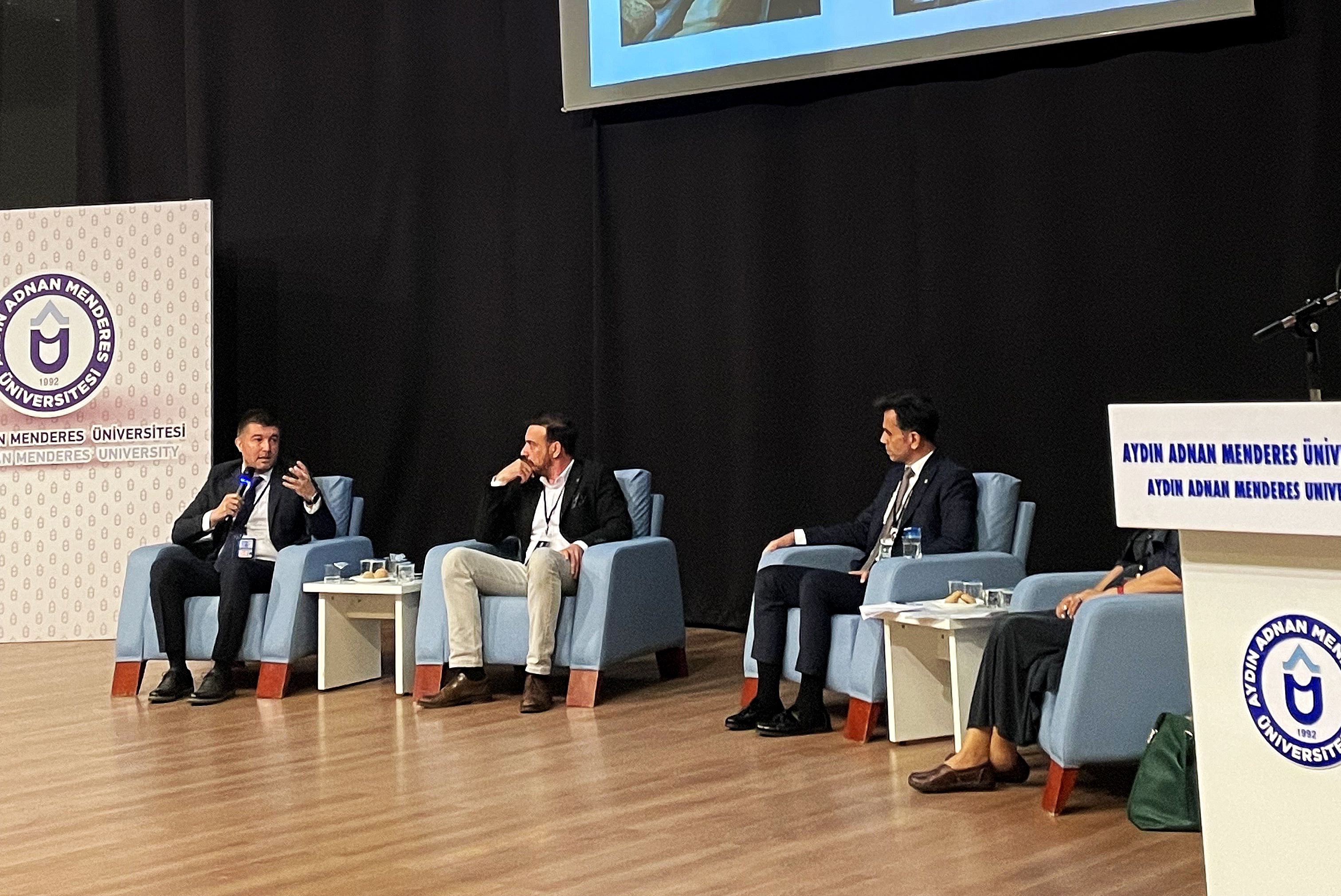 TOBB Aydın Genç GiriÅŸimciler İcra Kurulu BaÅŸkan Yrd. Anıl Kösehancı’nın moderatörlüÄŸünde gerçekleÅŸen panelde Üniversitemiz Ziraat Fakültesi ÖÄŸretim Üyesi Prof. Dr. Renan TunalıoÄŸlu ve HAUS CEO’su Hakkı Gözlüklü ile beraber yer alan Müdürümüz; gıda iÅŸleme süreçlerinde ve gıda analizlerinde yapay zekâ, makine öÄŸrenmesi, robotik üretim, IoT, VR, karanlık fabrikalar, ileri görüntüleme tekniklerinin kullanımı hakkında katılımcılara bilgiler sundu.