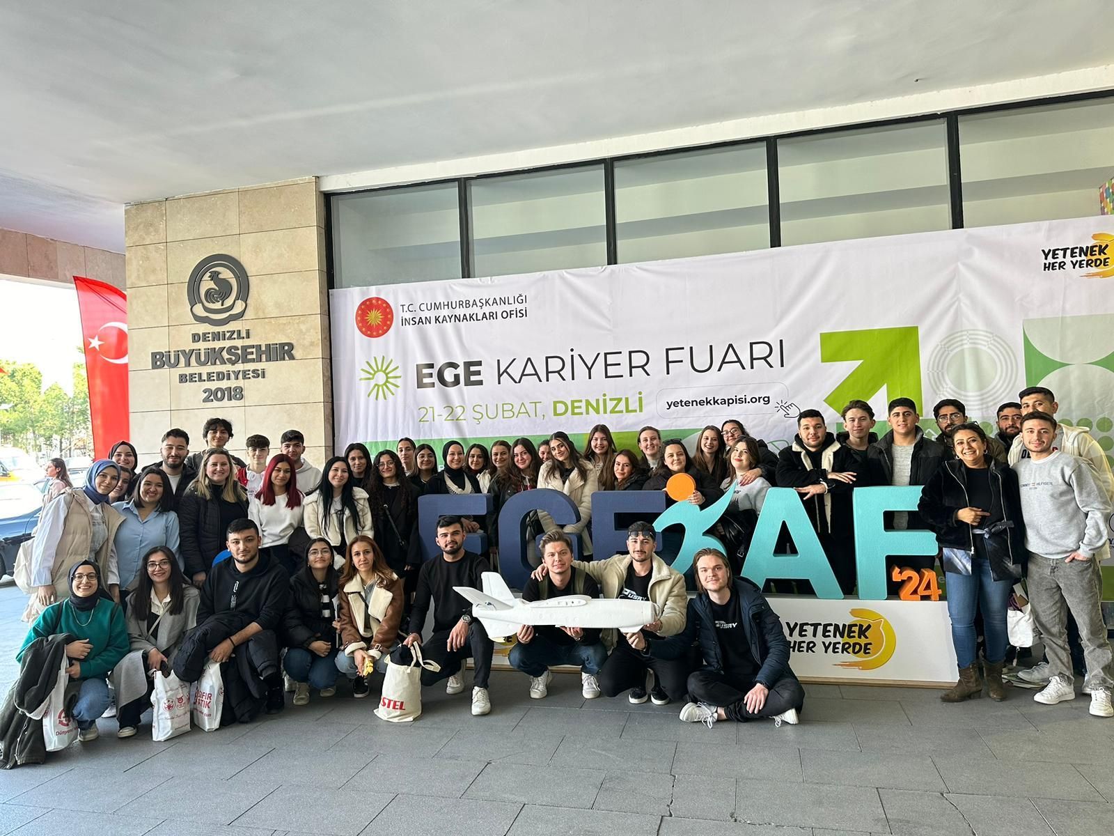 Meslek Yüksekokulumuzdaki çeşitli programlarımızda okumakta olan toplam 41 öğrencimiz, Okul Müdür Yardımcılarımız Öğr. Gör. Dr. Cennet ARMAN ZENGİ ile Öğr. Gör. Şerife Gökçen YANIK refakatinde, Cumhurbaşkanlığı İnsan Kaynakları Ofisi Başkanlığı koordinasyonunda, üniversitemizin paydaşlığı ile Pamukkale Üniversitesi ev sahipliğinde 22 Şubat 2024 tarihinde Denizli İli'nde düzenlenen “Yetenek Her Yerde/Bölgesel Kariyer Fuarı EGEKAF'24”e katıldı. Öğrencilerimiz çeşitli kurum ve kuruluşların stantlarıyla yer aldığı fuarda kendi kariyer hedeflerine ilişkin görüşmeler yapıp bilgi alışverişinde bulundular. Ayrıca Türkiye’nin lider iş dünyası temsilcileriyle bir araya gelme fırsatı yakalayan öğrencilerimiz, etkinlik ve stant alanlarını ziyaret ederek iş ve staj başvurusunda bulunarak kariyer planlaması yaptı.
