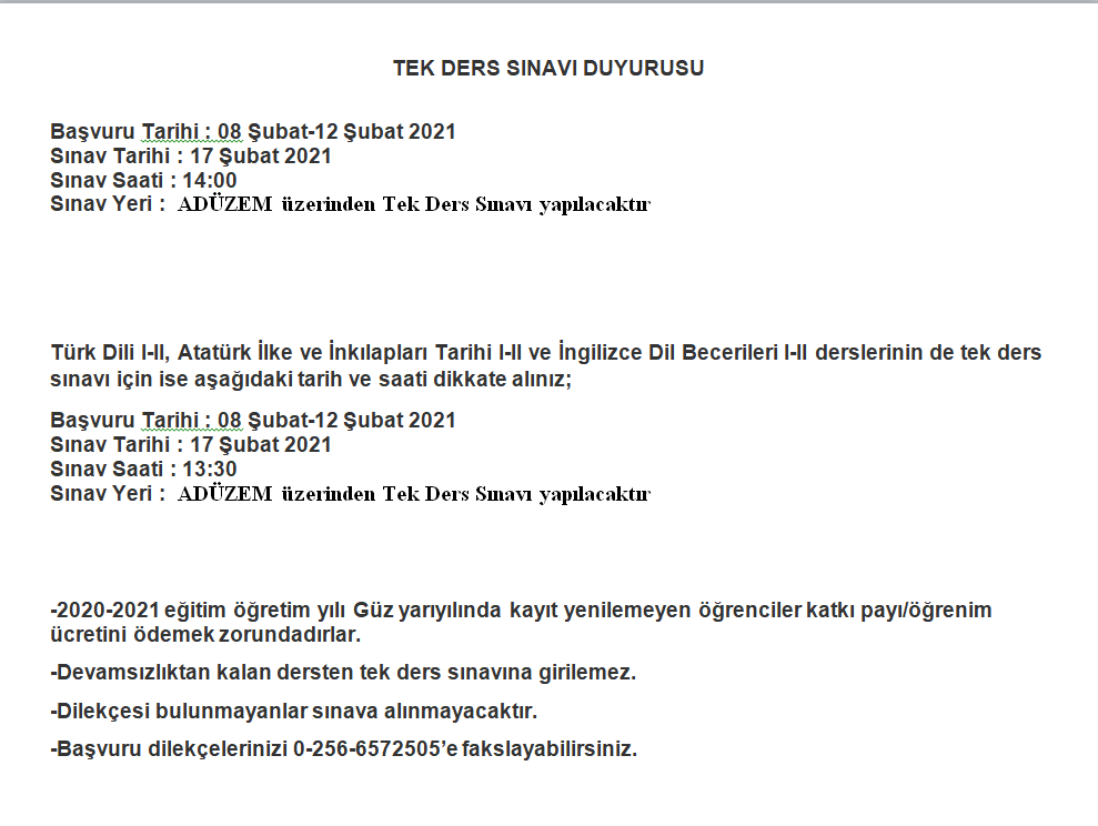 Yatay Geçiş Kontenjan ve İlan İşlemleri