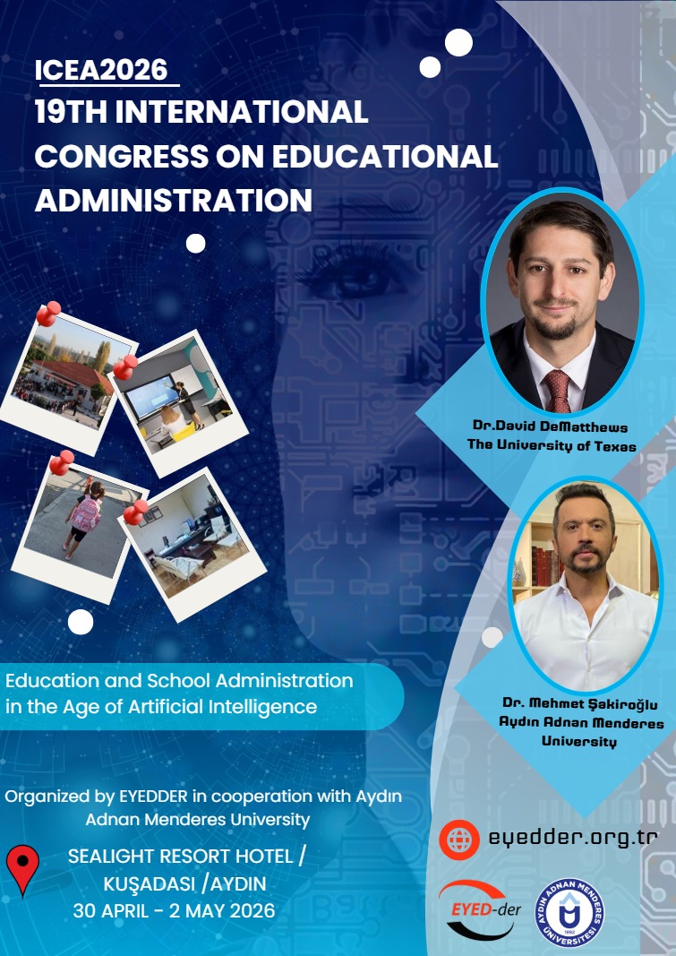 Üniversitemiz ile Eğitim Yöneticileri ve Eğitim Deneticileri Derneği iş birliğinde düzenlenen 19. Uluslararası Eğitim Yönetimi Kongresi, 30 Nisan – 2 Mayıs 2026 tarihleri arasında Kuşadası’nda gerçekleştirilmiştir. Kongrede; akademisyenler, öğretmenler, okul yöneticileri ve lisansüstü öğrenciler bir araya gelerek eğitim yönetimine ilişkin güncel konuları tartışmış, ulusal ve uluslararası düzeyde bilgi paylaşımına katkı sağlanmıştır.