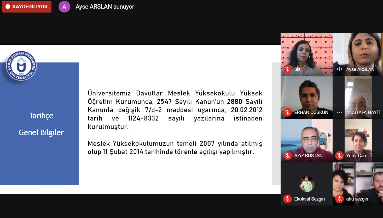 Davutlar Meslek Yüksekokulu 2020 Yılı Performans DeÄŸerlendirme Toplantısı 29 Aralık 2020 tarihinde saat 17:00'de Google Meet uygulaması üzerinden çevrimiçi olarak gerçekleÅŸtirilmiÅŸtir. Toplantıya Yüksekokul Müdürümüz, Yüksekokul Müdür Yardımcıları, tüm Akademik ve İdari Personelimiz ile ÖÄŸrenci Temsilcilerimiz katılım saÄŸlamıştır.