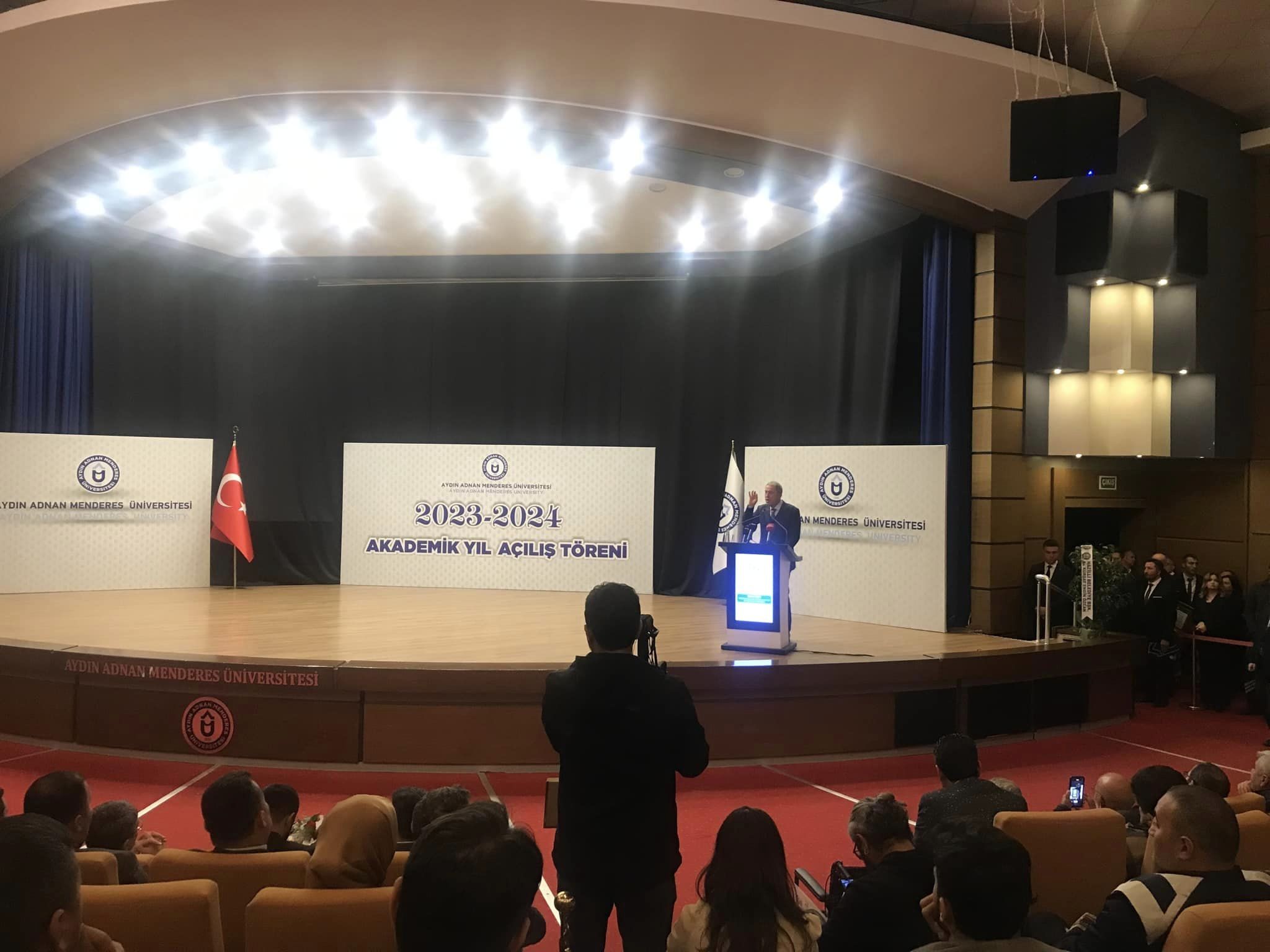 21 Kasım 2023 tarihinde ADÜ Merkez Kampüs Atatürk Kongre Merkezi’nde gerçekleştirilen 2023-2024 Akademik Yıl Açılış Töreni’mize ADÜ Davutlar Meslek Yüksekokulu Müdürümüz Sayın Prof. Dr. Pınar ALTIOK GÜREL ve akademik-idari kadrolarımızla katılım sağlanmıştır. Sayın Rektörümüz Prof. Dr. Bülent KENT’in açılış konuşmasının ardından, TBMM Milli Savunma Komisyonu Başkanı ve AK Parti Kayseri Milletvekili Sayın Hulusi AKAR ilk ders sunumunu gerçekleştirmiştir. Törende, Rektörlük birimleri, senato üyeleri, öğretim üyeleri ve öğrenciler de hazır bulunmuştur. Törene, Aydın Valisi Sayın Yakup CANBOLAT, AK Parti Aydın Milletvekili Sayın Ömer ÖZMEN, AK Parti MKYK Üyesi Sayın Umut TUNCER, AK Parti Aydın İl Başkanı Sayın Gökhan ÖKTEN, protokol üyeleri, İl Jandarma Komutanı Albay Sayın Ali Naci ALDEMİR, İl Emniyet Müdürü Sayın Mehmet Suat EKİCİ, sivil toplum kuruluşları temsilcileri, siyasi parti temsilcileri de katılmıştır. Tören, ADÜ Rektörü Sayın Prof. Dr. Bülent KENT’in, Sayın Hulusi AKAR’a teşekkür belgesi ile birlikte el oyması tablo hediye etmesinin ardından toplu fotoğraf çekimi ile sona ermiştir.