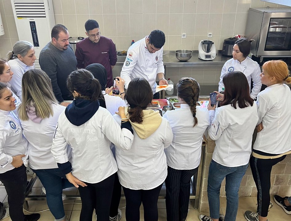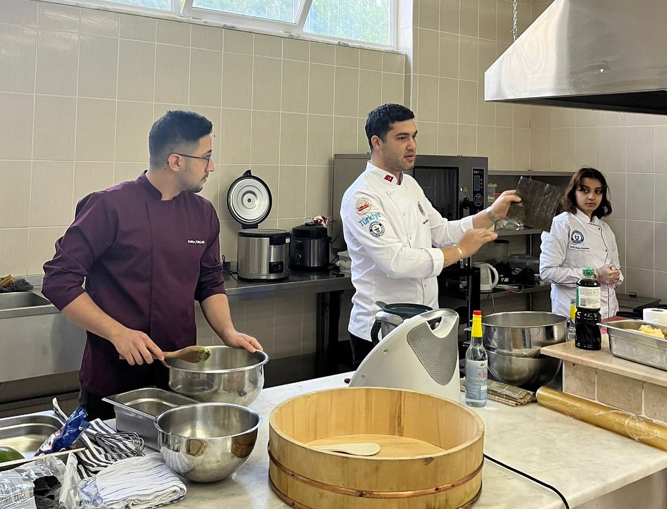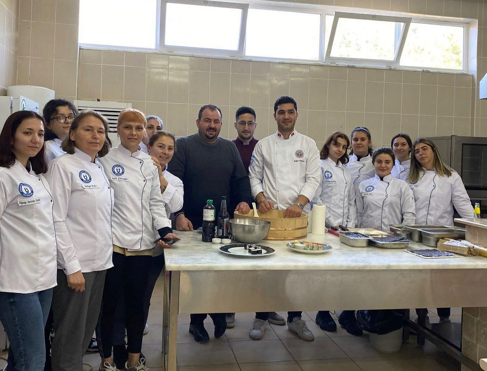 ADÜ Davutlar MYO’da 28 Aralık 2023 tarihinde Dünya Mutfak Kültürleri dersi kapsamında Dr. Öğr. Üyesi Emrah Köksal Sezgin nezaretinde Lucky’s Club şefleri Kağan Sürer ve Selim Fırlak’ı okulumuzda misafir ettik. Şeflerimiz öğrencilerimize Suşi yapım teknikleri ve uygulamaları hakkında bilgi vererek tecrübelerini paylaştılar.