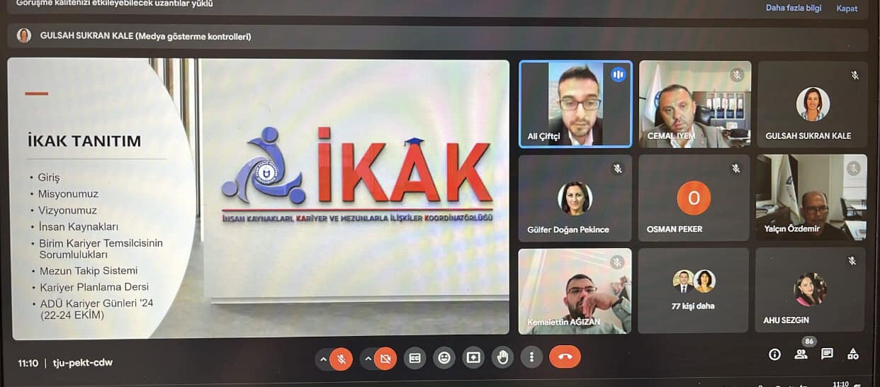 ADÜ Kuşadası MYO olarak 20 Ağustos 2024 tarihinde düzenlenen Üniversitemiz Kalite Koordinatörlüğü ve İnsan Kaynakları, Kariyer ve Mezunlarla İlişkiler Koordinatörlüğü (İKAK) İç Paydaş toplantısına katılım sağlanmıştır. ADÜ Rektör Yardımcımız Sayın Prof. Dr. Cemal İYEM hocamızın yönetiminde gerçekleştirilen toplantıda birim âmirimiz olarak ADÜ Kuşadası Meslek Yüksekokulu Müdürümüz Sayın Prof. Dr. Pınar ALTIOK GÜREL, birim kalite komisyonu üyemiz olarak Müdür Yardımcımız Sayın Öğr. Gör. Dr. Ahu SEZGİN ve birim kariyer temsilcimiz olarak Müdür Yardımcımız Sayın Öğr. Gör. Nurcan YILMAZ hazır bulunmuşlardır. Toplantıda 2024-2025 eğitim öğretim döneminde İKAK ile ilgili düzenlenecek faaliyetler ve sürdürülecek çalışmalar değerlendirilmiştir. Sevgi ve saygılarımızla…