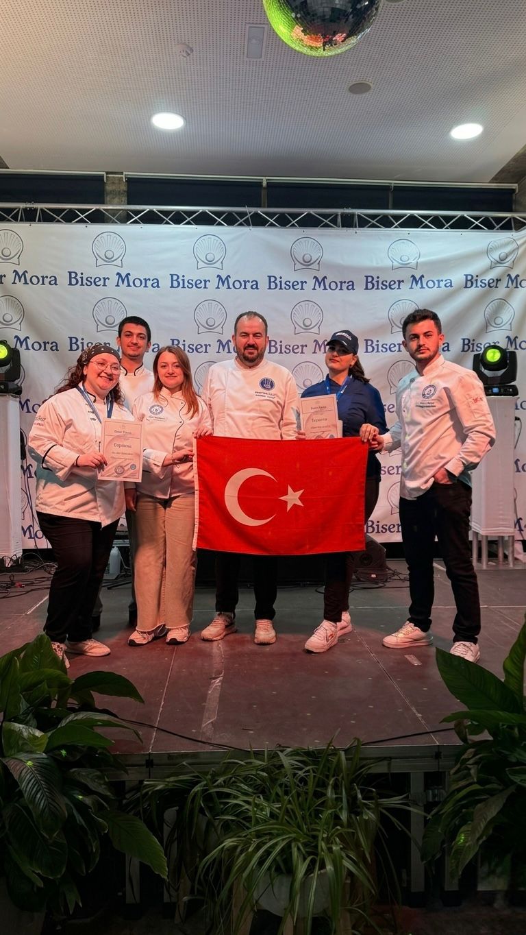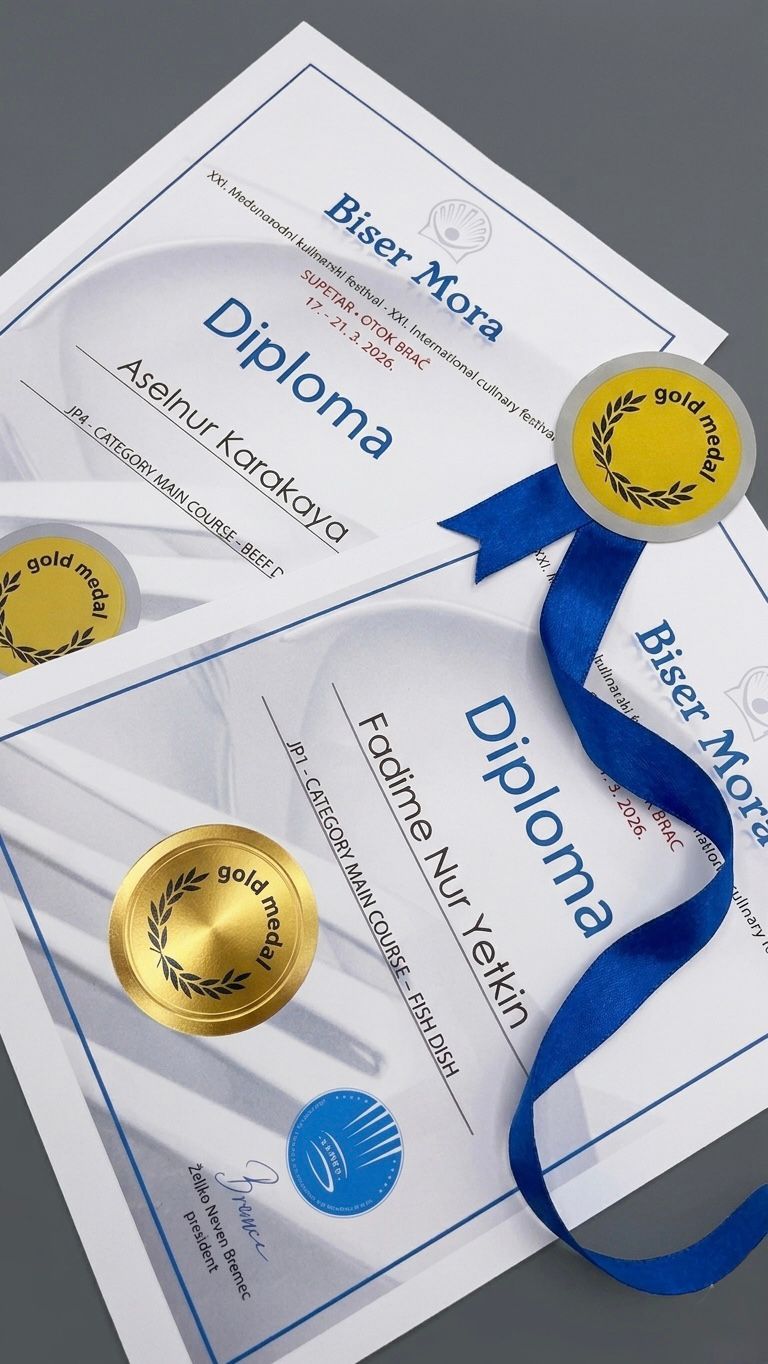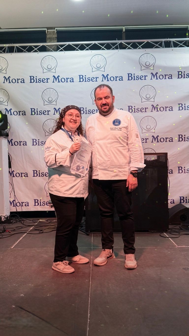 Aydın Adnan Menderes Üniversitesi Kuşadası Davutlar Meslek Yüksekokulu, Hırvatistan’ın Brač Adası’nda düzenlenen 21. Biser Mora Uluslararası Aşçılık Yarışması’nda iki altın madalya kazanarak önemli bir başarıya imza attı. Otel, Lokanta ve İkram Hizmetleri Bölüm Başkanı Dr. Öğr. Üyesi Emrah Köksal SEZGİN önderliğinde yarışmaya katılan öğrencilerimiz Fadime Nur YETKİN ve Aselnur KARAKAYA, “Balık” ve “Dana Yemeği” kategorilerinde sergiledikleri performansla altın madalya elde etti. Dünya çapında şeflerin buluştuğu bu prestijli organizasyonda kazanılan dereceler, Üniversitemizin gastronomi alanındaki uluslararası başarılarını bir kez daha pekiştirmiştir. Öğretim üyemizi ve yarışmaya katılan öğrencilerimizi tebrik eder, başarılarının devamını dileriz.