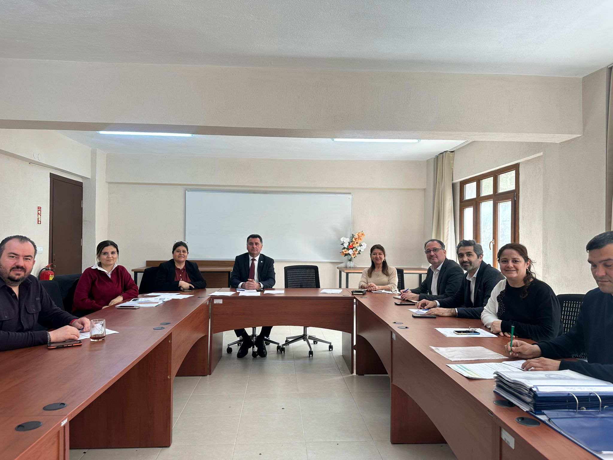 Aydın Adnan Menderes Üniversitesi Kuşadası Davutlar Meslek Yüksekokulu’nda, 6331 sayılı İş Sağlığı ve Güvenliği Kanunu kapsamında İş Sağlığı ve Güvenliği Kurulu 2026 yılı toplantısı 2 Nisan 2026 Perşembe günü saat 13.00’te gerçekleştirildi. Toplantıda 2026 yılı İş Sağlığı ve Güvenliği konularına ilişkin eğitim ve çalışma planları, çalışanların sağlık gözetimleri ile Meslek Yüksekokulu’nda yapılması gerekli tesisat, bakım ve onarım konuları görüşüldü. Alınan kararlar doğrultusunda Üniversitemiz Rektörlüğü’nün ilgili daire başkanlıklarına talep yazılarının yazılması kararlaştırılarak, toplantı kararları tutanak altına alındı.