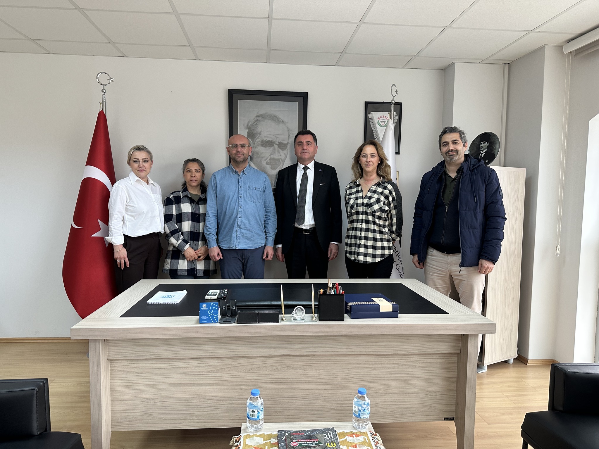 Adnan Menderes Üniversitesi Kuşadası Davutlar Meslek Yüksekokulu Müdürü Prof. Dr. Güntekin ŞİMŞEK ve Müdür Yardımcısı Dr. Öğr. Üyesi Erhan COŞKUN, 31 Mart 2026 tarihinde Aydın Turist Rehberleri Odası Yönetim Kurulu Başkanı Sayın Ozan GÜNDÜZALP’ı makamında ziyaret etti. Ziyarette Yönetim Kurulu Başkan Yardımcısı Sayın Rabia ÖZNALBANT, Yönetim Kurulu Üyesi Sayın Nafia DEMİRCAN ve Sayın Neslihan HURDA da hazır bulundu. Görüşmede turizm alanında iş birliği, meslekleşme ve öğrenci istihdamına yönelik çalışmalar değerlendirildi. Misafirperverlikleri ve katkıları için kendilerine teşekkür edildi.