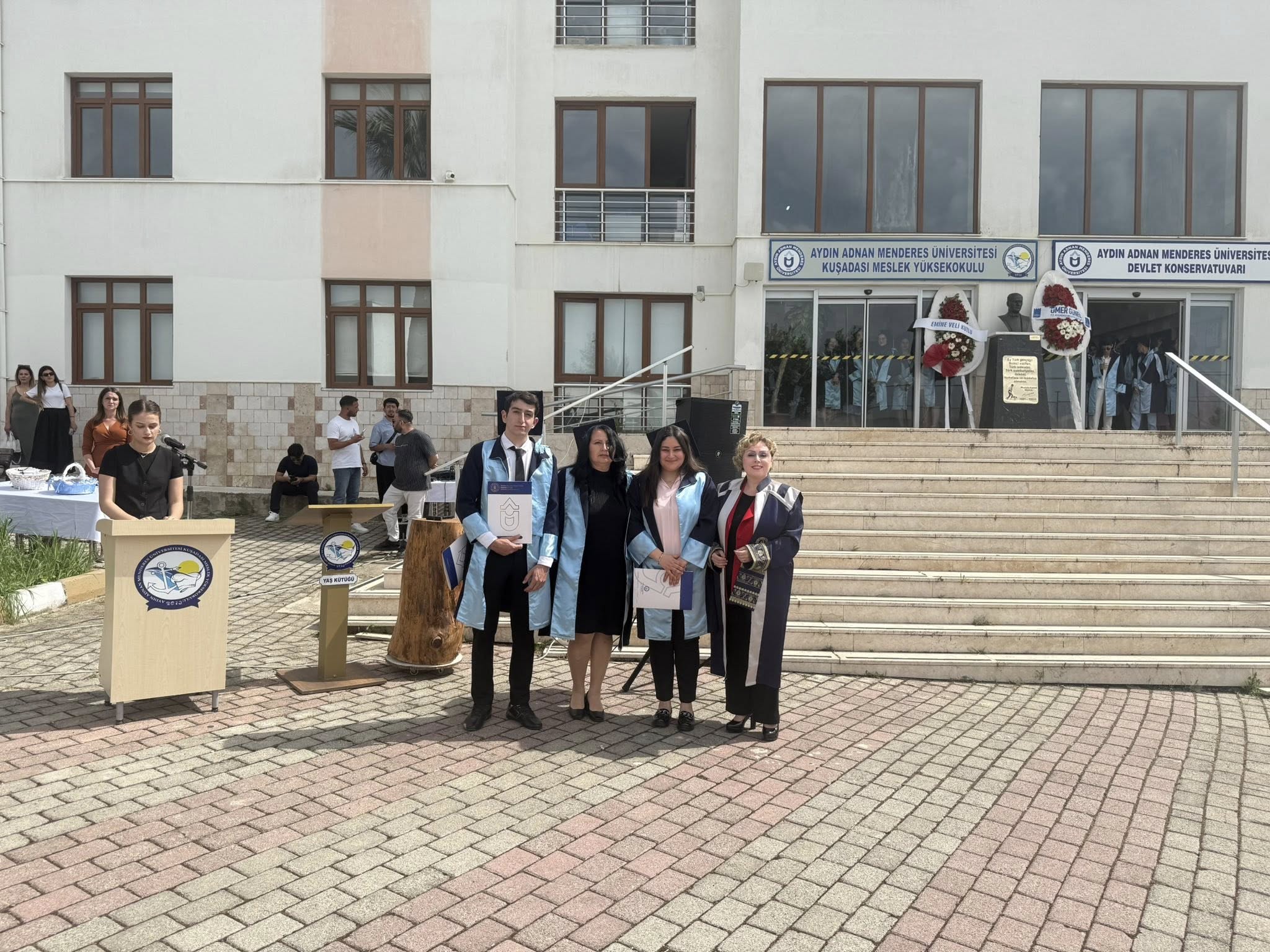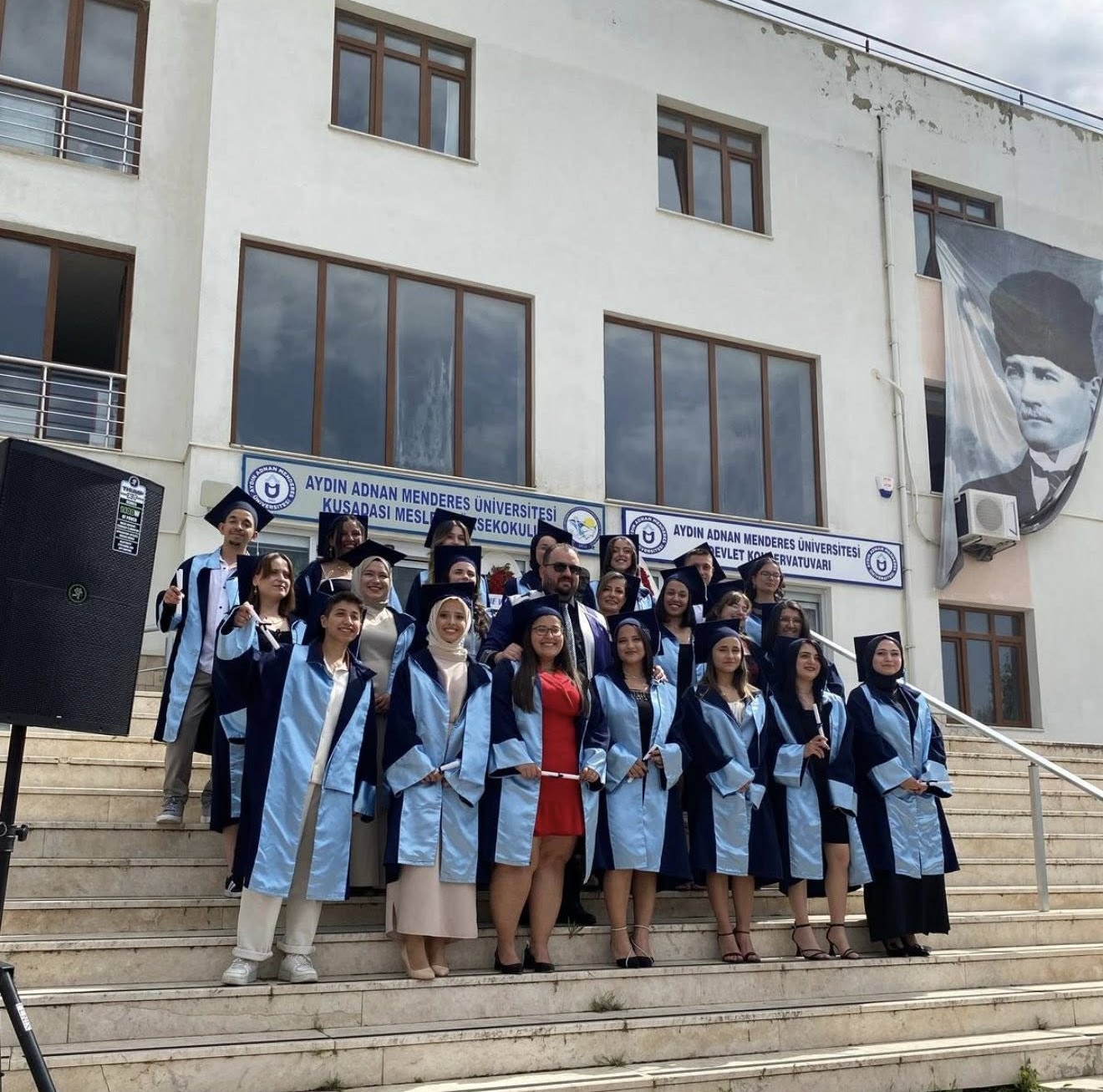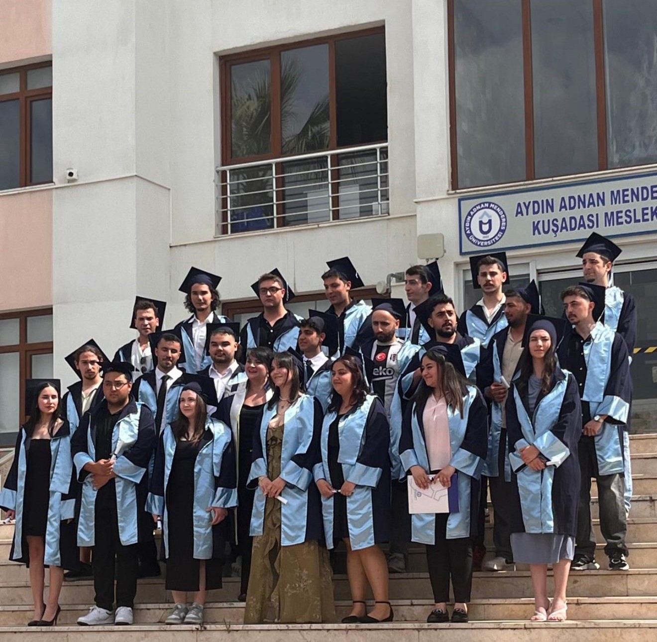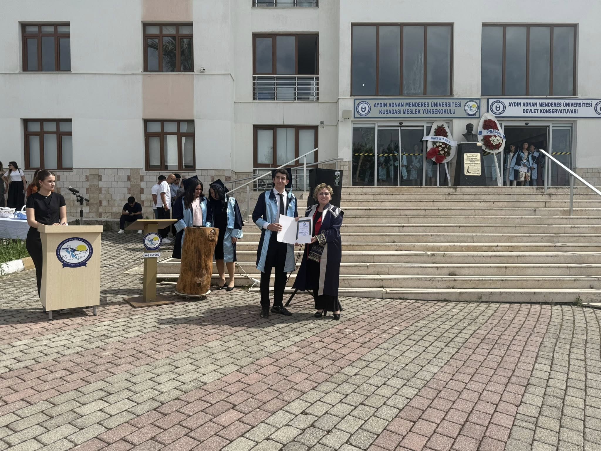 9 Mayıs 2025 tarihinde ADÜ Kuşadası Meslek Yüksekokulu’nda 2024-2025 eğitim-öğretim dönemi mezuniyet töreni, öğrencilerimizin bu mutlu günlerine eşlik eden velilerimizin ve çok sayıda davetlinin yoğun katılımıyla icrâ edilmiştir. Törende saygı duruşu ve İstiklâl Marşı’nın okunmasının ardından ADÜ Kuşadası Meslek Yüksekokulu Müdürümüz Sayın Prof. Dr. Pınar ALTIOK GÜREL konuşmalarını yapmışlar ve okulumuz birincisine binişi giydirilerek yaş kütüğüne isim çakma seramonisi yapılmıştır. Akabinde meslek yüksekokulumuz birinci-ikinci ve üçüncülerine başarı belgeleri takdim edilmiştir. Törende “Aşçılık”, “İkram Hizmetleri”, “Turizm ve Otel İşletmeciliği”Programlarımızın biniş ve kepleri ile takdim seramonisi yapılmış ve ADÜ Kuşadası Meslek Yüksekokulu hocalarımız tarafından mezuniyet belgeleri dağıtılmıştır. Öğrencilerimizin bugünlere gelmesinde çok büyük emekleri olan saygıdeğer velilerimize, hakları asla ödenmeyecek olan kıymetli hocalarımıza, canla başla çalışan çok değerli idari personelimize teşekkürü borç biliyoruz. Bu anlamlı günümüzde katılım göstererek bizleri onurlandıran tüm konuklarımıza sonsuz sevgi ve saygılarımızı sunuyor, teşekkür ediyoruz. Çok değerli öğrencilerimizi tebrik ediyor, mezuniyetleri hayırlı uğurlu olsun diyoruz. Yeni başlangıçlarında sonsuz başarılar diliyoruz. Sevgi ve saygılarımızla.