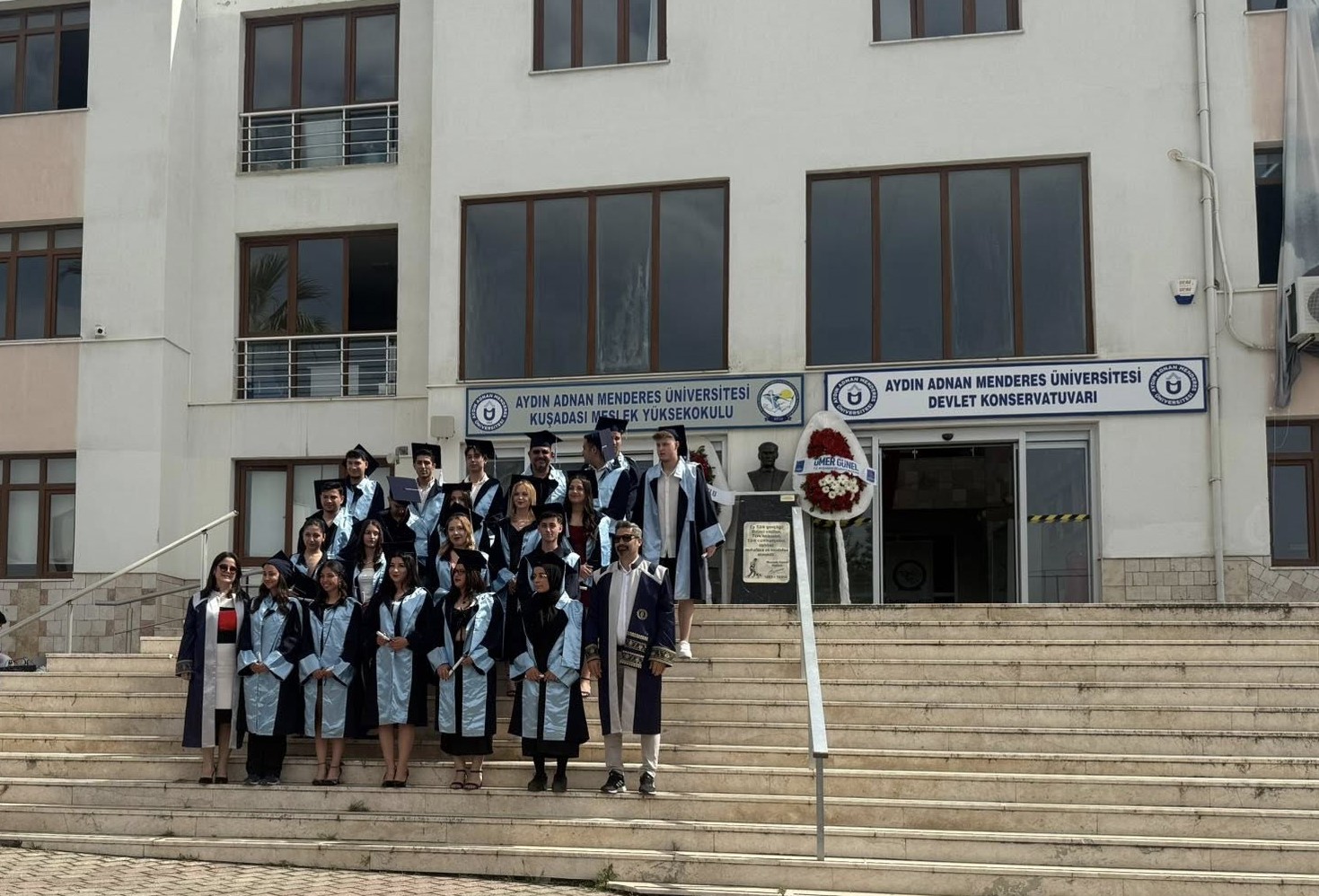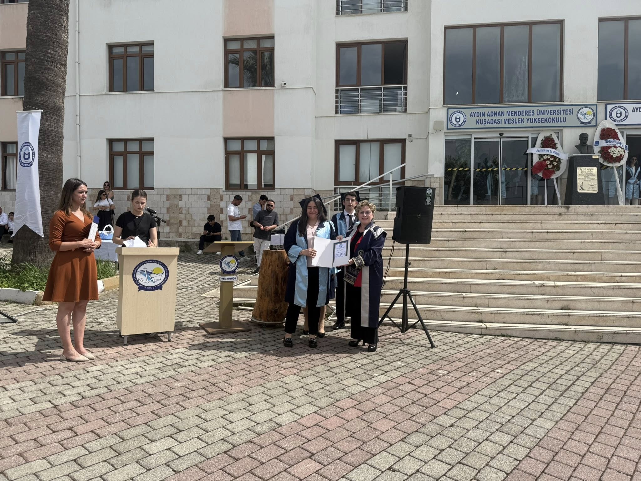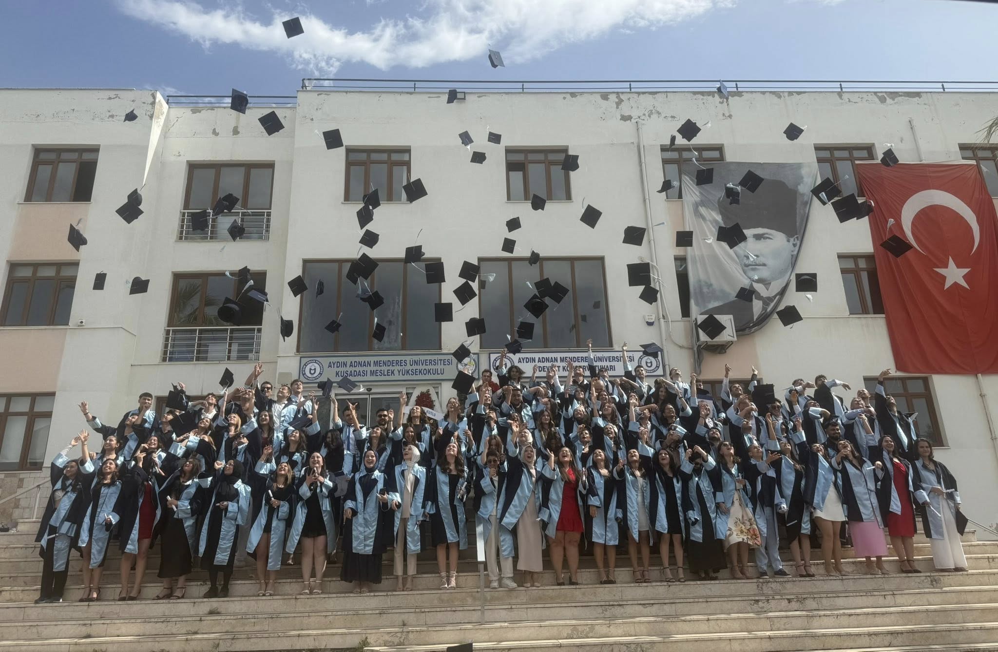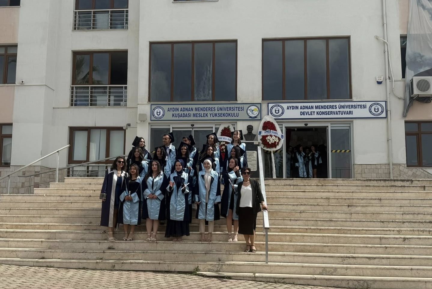 9 Mayıs 2025 tarihinde ADÜ Kuşadası Meslek Yüksekokulu’nda 2024-2025 eğitim-öğretim dönemi mezuniyet töreni, öğrencilerimizin bu mutlu günlerine eşlik eden velilerimizin ve çok sayıda davetlinin yoğun katılımıyla icrâ edilmiştir. Törende saygı duruşu ve İstiklâl Marşı’nın okunmasının ardından ADÜ Kuşadası Meslek Yüksekokulu Müdürümüz Sayın Prof. Dr. Pınar ALTIOK GÜREL konuşmalarını yapmışlar ve okulumuz birincisine binişi giydirilerek yaş kütüğüne isim çakma seramonisi yapılmıştır. Akabinde meslek yüksekokulumuz birinci-ikinci ve üçüncülerine başarı belgeleri takdim edilmiştir. Törende “Aşçılık”, “İkram Hizmetleri”, “Turizm ve Otel İşletmeciliği”Programlarımızın biniş ve kepleri ile takdim seramonisi yapılmış ve ADÜ Kuşadası Meslek Yüksekokulu hocalarımız tarafından mezuniyet belgeleri dağıtılmıştır. Öğrencilerimizin bugünlere gelmesinde çok büyük emekleri olan saygıdeğer velilerimize, hakları asla ödenmeyecek olan kıymetli hocalarımıza, canla başla çalışan çok değerli idari personelimize teşekkürü borç biliyoruz. Bu anlamlı günümüzde katılım göstererek bizleri onurlandıran tüm konuklarımıza sonsuz sevgi ve saygılarımızı sunuyor, teşekkür ediyoruz. Çok değerli öğrencilerimizi tebrik ediyor, mezuniyetleri hayırlı uğurlu olsun diyoruz. Yeni başlangıçlarında sonsuz başarılar diliyoruz. Sevgi ve saygılarımızla.