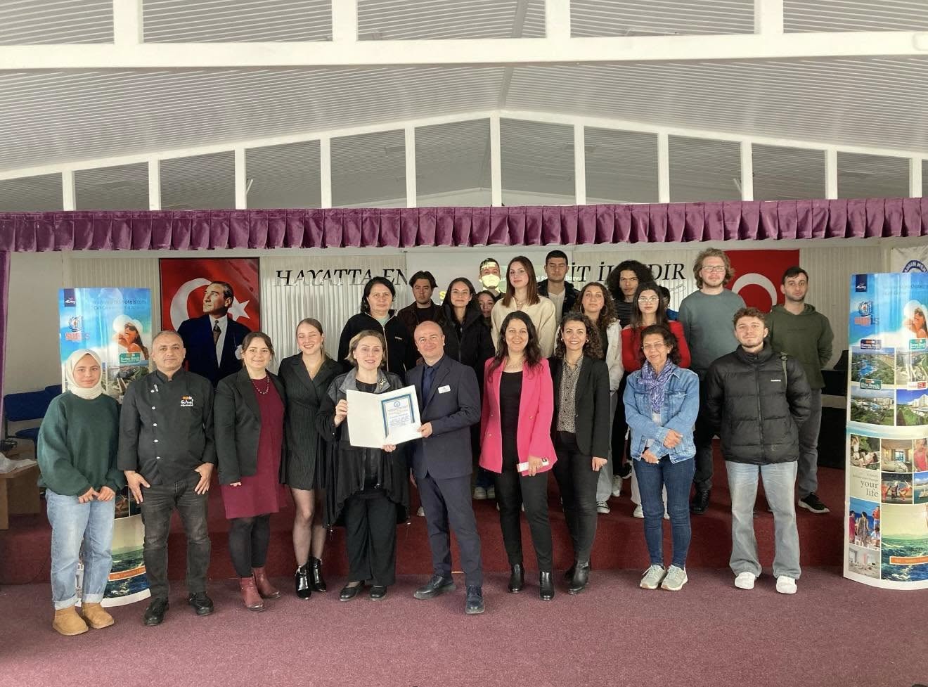 ADÜ Kuşadası Meslek Yüksekokulumuz Kariyer Günleri - Üniversite Sektör Buluşması Etkinliği 2025’in ikinci etabı, Müdürümüz Sayın Prof. Dr. Pınar ALTIOK GÜREL tarafından katılımcı konuklarımıza teşekkür belgelerinin takdim edilmesinin ardından, fotoğraf çekimi ile sona erdi.