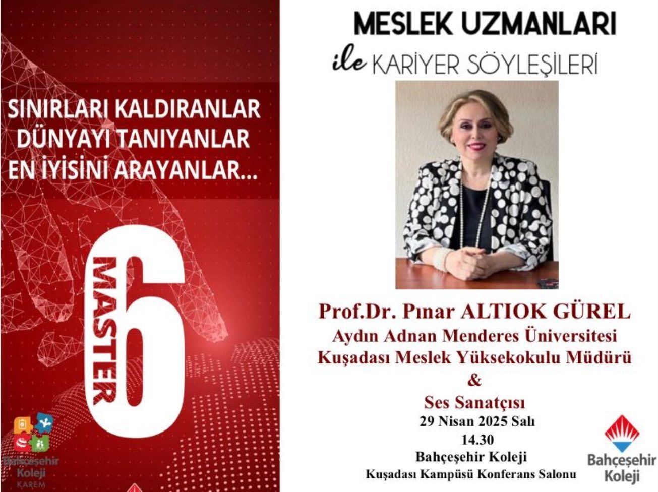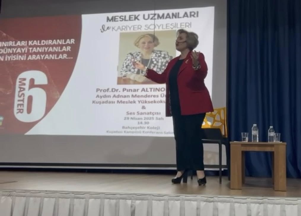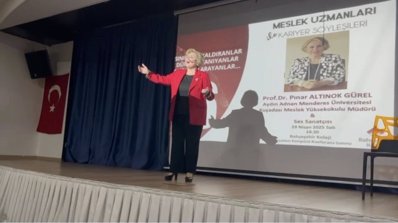 29 Nisan 2025 tarihinde Bahçeşehir Koleji Kuşadası Kampüsü Konferans Salonu’nda gerçekleştirilen etkinliğe, Meslek Yüksekokulu Müdürümüz Sayın Prof. Dr. Pınar ALTIOK GÜREL, akademisyen ve ses sanatçısı kimlikleriyle katılım sağladı. Bahçeşehir Koleji Kuşadası Kampüsü yöneticisi ve edebiyat öğretmeni Sayın Hayri PADAK’ın takdim konuşması ile başlayan etkinlik öğrencilerin yoğun ilgisiyle gerçekleşti. Sayın Prof. Dr. Pınar ALTIOK GÜREL, programın moderatörü PDR öğretmeni Sayın Özge ÖZBİLGE ALTUNSOY’un; akademisyenliğin gerektirdiği yetenek ve yetkinlikler, 21. yüzyılın yöneticilerinde bulunması gereken liderlik özellikleri, yapay zekânın günümüzdeki meslekleri dönüştürmesi, bir meslekte profesyonel olmak için gençlerin izlenmesi gereken yol ve yöntemler, gençlerin değerlendirilmesi gereken fırsatlar ve nasıl bir kariyer planlamasına sahip olunması gerektiği yönündeki sorularını bir meslek uzmanı olarak yanıtladı. Lise öğrencilerinin büyük ilgiyle dinledikleri söyleşi, Prof. Dr. Pınar ALTIOK GÜREL’e yöneltilen soruların cevaplanmasıyla devam etti. Program, fotoğraf çekimi ile sona erdi. Nâzik konukseverlikleri için Sayın Hayri PADAK’a, Sayın Özge ÖZBİLGE ALTUNSOY’a ve Bahçeşehir Koleji Kuşadası Kampüsünde görev yapan tüm değerli eğitimci ve idarecilere teşekkürlerimizi, sevgi ve saygılarımızı sunuyor, sevgili öğrencimize başarılar diliyoruz.
