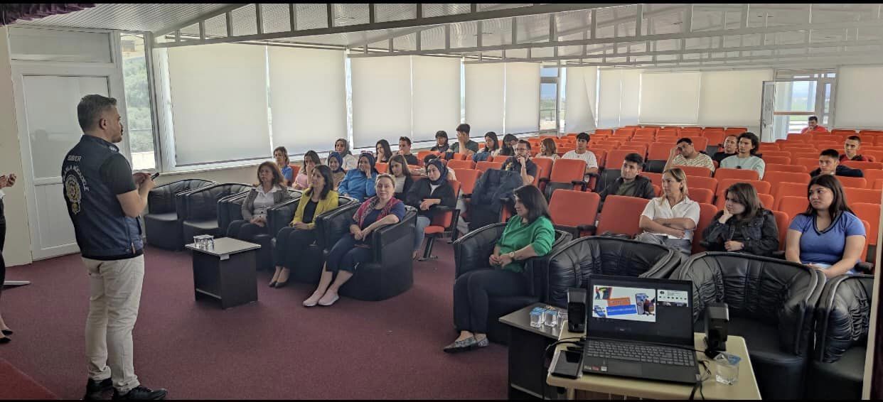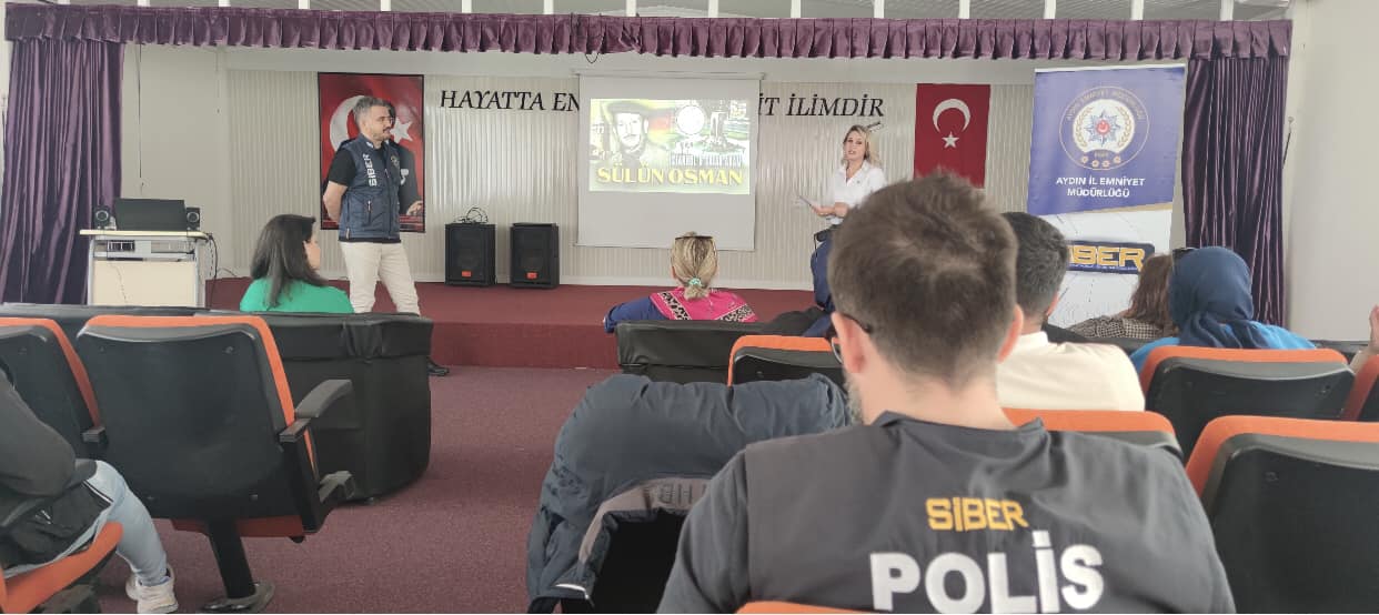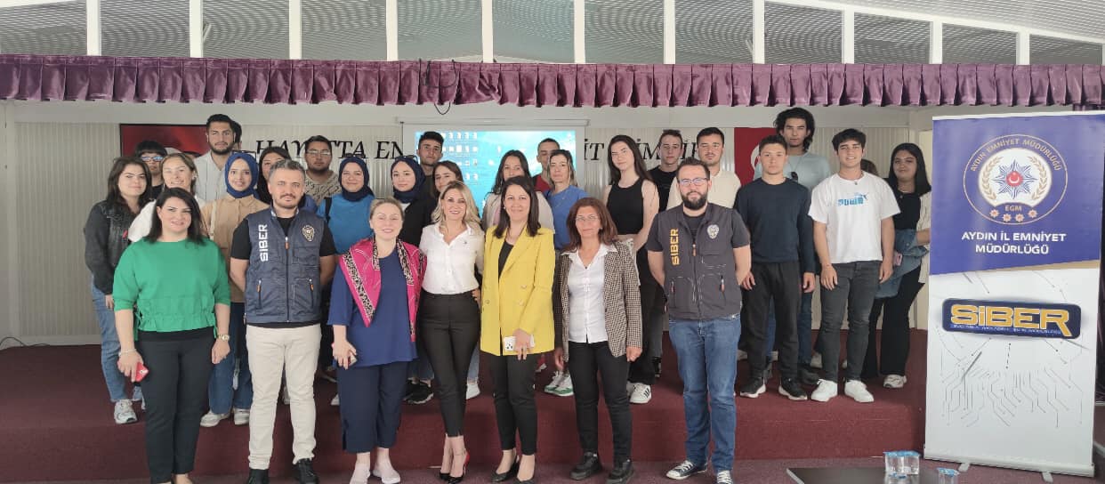 6 Mayıs 2024 tarihinde ADÜ Kuşadası Meslek Yüksekokulu’nda, ADÜ Aymes Öğr. Gör. Sayın Zuhal MOLLAOĞULLARI, Aydın Emniyet Müdürlüğü Siber Suçlarla Mücâdele Şûbe Müdürlüğü Siber Güvenlik Uzmanı Sayın Uğur BULUT ve Sayın Emre ÖZAYDIN tarafından “Siber Suçlar ve Siber Güvenlik” farkındalık eğitimi gerçekleştirilmiştir.Takdim konuşmaları Müdür Yardımcımız Sayın Öğr. Gör. Dr. Ahu SEZGİN tarafından yapılan etkinliğe birimimizin akademik ve idari personeli ve öğrencilerimiz katılım göstermişlerdir. Uzman konuklarımızın sunumunun ardından, merak edilen sorular cevaplandırılmıştır.