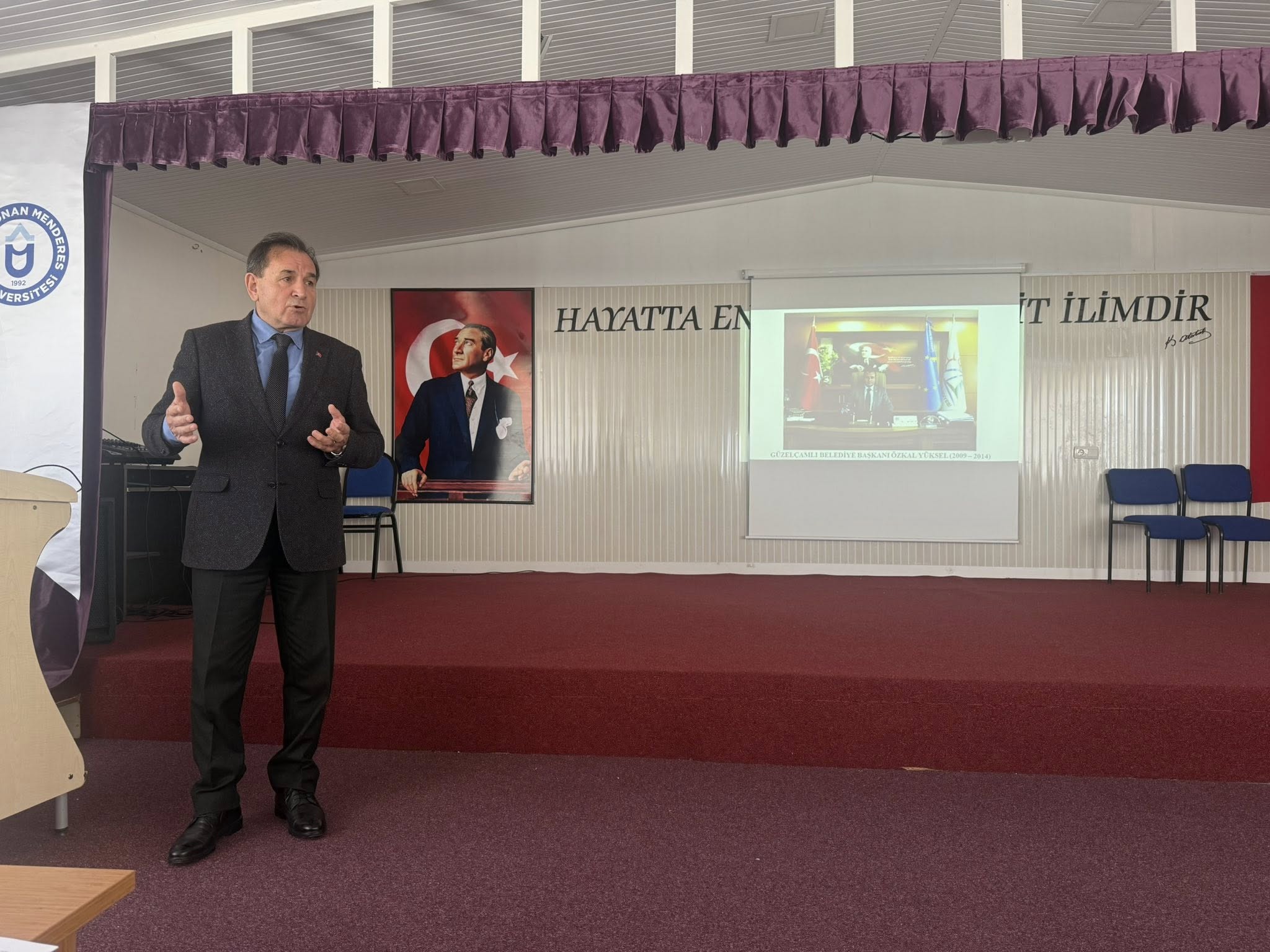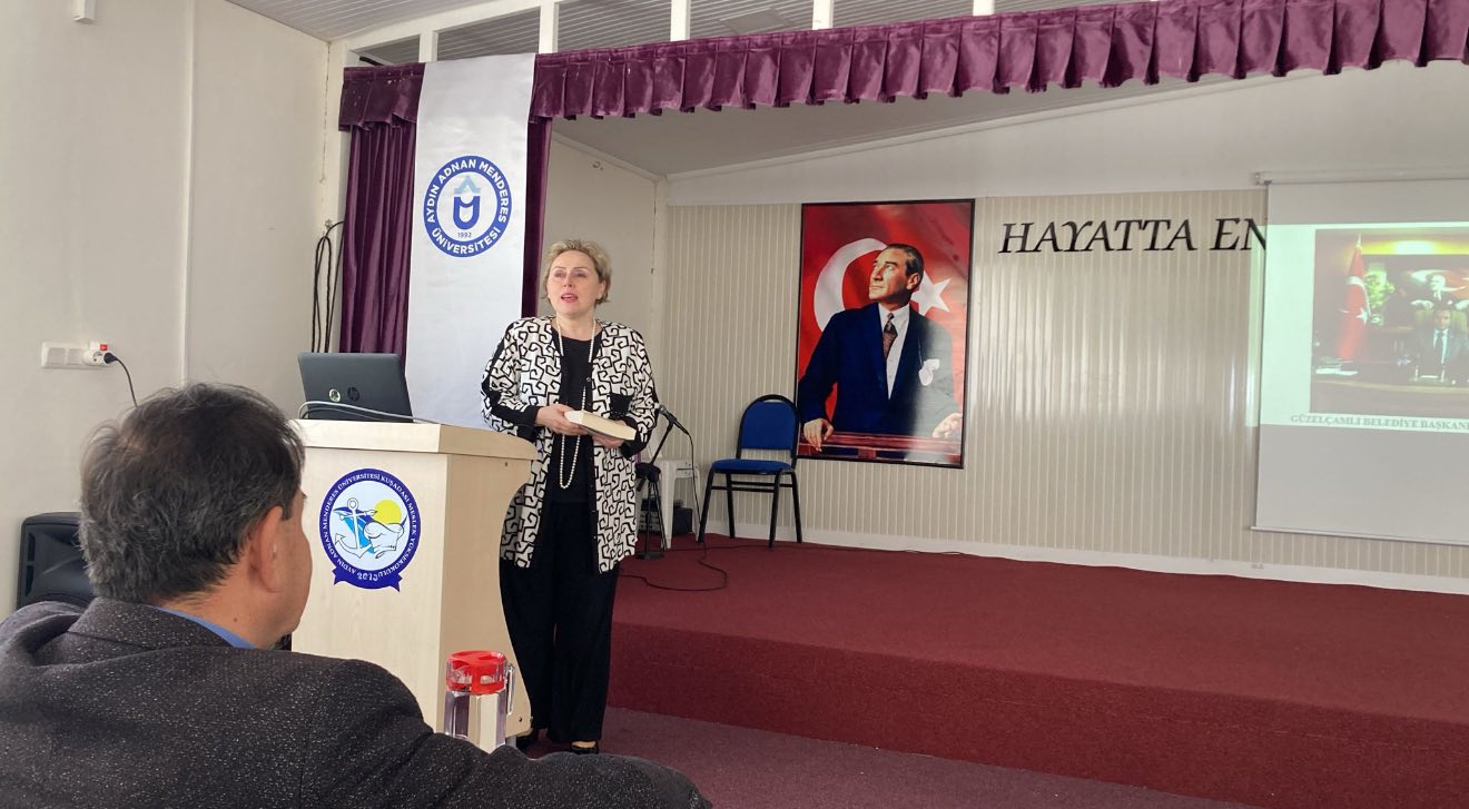 17 Nisan 2025 tarihinde ADÜ Kuşadası Meslek Yüksekokulu Konferans Salonu’nda Turizm Haftası etkinlikleri kapsamında sunum düzenlenmiştir. Takdim konuşmaları Müdür Yardımcımız Sayın Öğr. Gör. Nurcan YILMAZ tarafından yapılan etkinlikte, öğrencilerimiz ve akademik-idari kadrolarımız hazır bulunmuştur. ADÜ Kuşadası Meslek Yüksekokulu Müdürümüz Sayın Prof. Dr. Pınar ALTIOK GÜREL’in hitap konuşmasının ardından; turizm sektöründe profesyonel olarak uzun yıllardır aktif olarak çalışan, önce Kuşadası Otelcilik ve Turizm Meslek Lisesi’ni, ardından Boğaziçi Üniversitesi Turizm Meslek Yüksekokulu’nu ve sonra da Anadolu Üniversitesi İktisat Fakültesi’ni bitirerek, yurt içinde ve İsviçre başta olmak üzere yurtdışında çeşitli turizm işletmelerinde çalışan, turizm ve seyahat işletmecisi, Kuşadası Güzelçamlı’da ilk A grubu seyahat acentesinin kurucusu, serbest İngilizce ve Fransızca ülkesel profesyonel turist rehberi ve 2009-2014 yılları arasında Güzelçamlı Belediye Başkanlığı görevini sürdüren Sayın Özkal YÜKSEL tarafından "Turizmde Yerel Kültür ve Yerel Yönetimler İlişkisi” konulu sunum gerçekleştirilmiştir. Etkinlikte Sayın Özkal YÜKSEL, turizm sektöründe aldığı eğitimler, geçirdiği aşamalar, turizm alanında mesleki kariyerde gençlerimizin izlemesi gereken ilerleme safhaları konularında öğrencilerimizi bilgilendirdikten sonra kendi yazmış olduğu “Leftere’den Güzelçamlı’ya Mübâdele ve Güzelçamlı 1924’ten-2024’e Yüzyıl” isimli kitapta yer alan bilgi ve belgeler üzerinden bölgemizin kültürel değerlerini tanıtmıştır. Ardından, turizmin ekonomik yönden önemi, turizm yerel yönetim ilişkisi, yerel kültür-turizm ilişkisi ve sürdürülebilir turizm başlıklarını içeren bilgilendirici bir sunum yapılmıştır. Sunumun son bölümünde ise Sayın Özkal YÜKSEL, kişisel fotoğraf arşivinden örneklerle, Kuşadası Güzelçamlı’da uzun yıllar boyunca düzenlenen ulusal ve uluslararası turizm etkinlikleri üzerinden “Turizmde Yerel Kültür ve Yerel Yönetimler İlişkisi”nin planlama gerektiren ve ülke kalkınmasına olumlu katkıları bulunan önemli bir alan olduğu konularını vurgulamıştır. Etkinlik, Meslek Yüksekokulu Müdürümüz Sayın Prof. Dr. Pınar ALTIOK GÜREL tarafından Sayın Özkal YÜKSEL’e teşekkür belgesi takdim edilmesi ve toplu fotoğraf çekimi ile sona ermiştir. ADÜ Kuşadası MYO ailesi olarak Turizm Haftamızı bir kez daha kutluyor, etkinliğimizin gerçekleştirilmesinde gösterdikleri emekler için Sayın Özkal YÜKSEL’e ve katılım gösteren akademik-idari kadrolarımıza ve sevgili öğrencilerimize çok teşekkür ediyor, sonsuz sevgi ve saygılarımızı sunuyoruz.