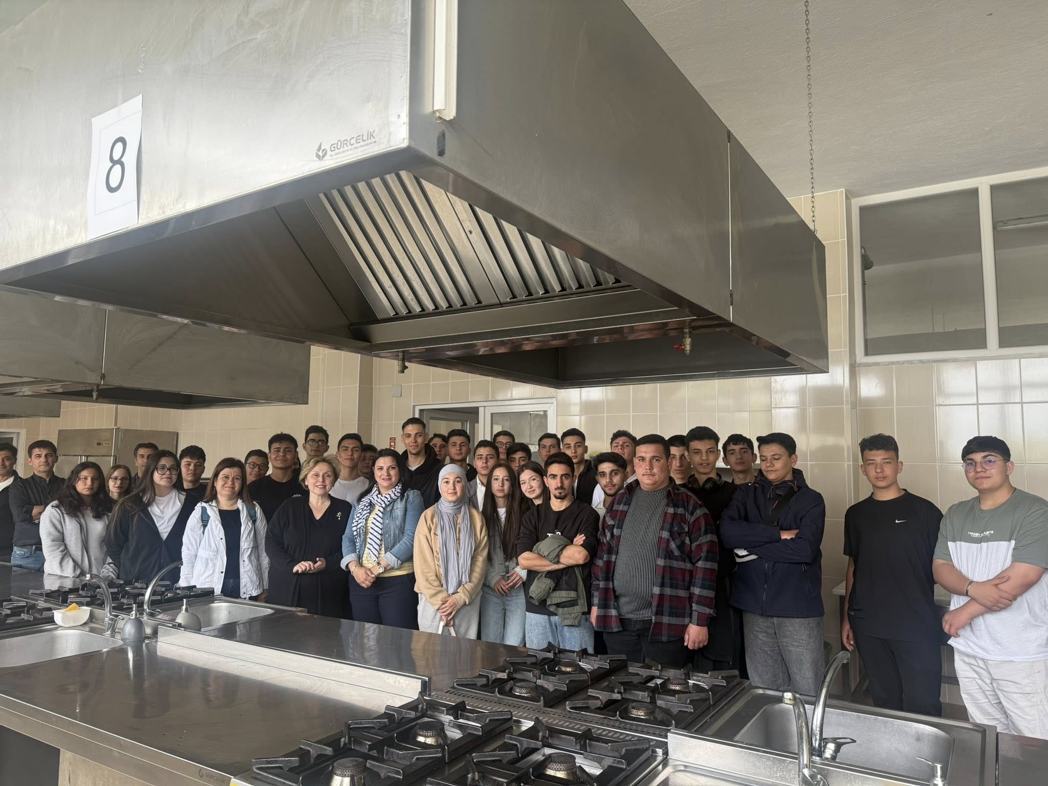 Akhisar Mesleki Eğitim Merkezi, Aşçılık-Pasta ve Gıda programlarında eğitim görmekte olan öğrenci ve öğretmenleri, 30 Nisan 2025 tarihinde kampüsümüze ziyaret gerçekleştirmiştir. (YKS) Yükseköğretime Geçiş Sınavları aşamasında okulumuzu yakından tanımak, bölümlerimiz hakkında bilgi edinmek ve bizlerle tanışmak amacıyla kampüsümüze gelen 9., 10. ve 11. sınıf öğrencileri Üniversite’mizdeki ortamı yakından tanıma olanağı bulmuşlardır. Ziyarette Dr. Öğr. Üyesi Sayın Ahu Sezgin tarafından okulumuzda bulunan programlar, idari ve akademik kadrolarımız, fiziksel altyapımız, teknik olanaklarımız, okulumuzdaki sosyal ve sportif faaliyetler, sektörel işbirliklerimiz, staj imkânlarımız, mezunlarımızın çalışma alanları tanıtılmış, ardından amfilerimiz, sınıflarımız, kütüphanemiz, bilgisayar laboratuarımız, endüstriyel mutfaklarımız, çok amaçlı spor alanımız, kampüs bahçemizde yer alan sosyal alanlarımız gezdirilmiştir. Konuk öğrenci ve öğretmenlerin ADÜ Kuşadası Meslek Yüksekokulu Müdürümüz Sayın Prof. Dr. Pınar ALTIOK GÜREL’e ve Yüksekokulumuz Otel, Lokanta ve İkram Hizmetleri Bölüm Başkanı Dr. Öğr. Üyesi Sayın Emrah Köksal SEZGİN’e merak ettikleri soruları yöneltmiş, soruların yanıtlanmasının ardından toplu fotoğraf çekimi ile ziyaret sona ermiştir. Konuk öğrenci kardeşlerimiz ADÜ Kuşadası Meslek Yüksekokulu’muza yoğun ilgi göstermiş, Üniversite tercihlerinde özellikle yer vererek öğrencimiz olmak istediklerini ifade ederek bizleri onurlandırmışlardır. ADÜ Kuşadası MYO olarak, bizlere konuk olan değerli öğretmen ve öğrencilere nâzik ziyaretleri için çok teşekkür ediyor, sınavlarda başarılar diliyoruz.