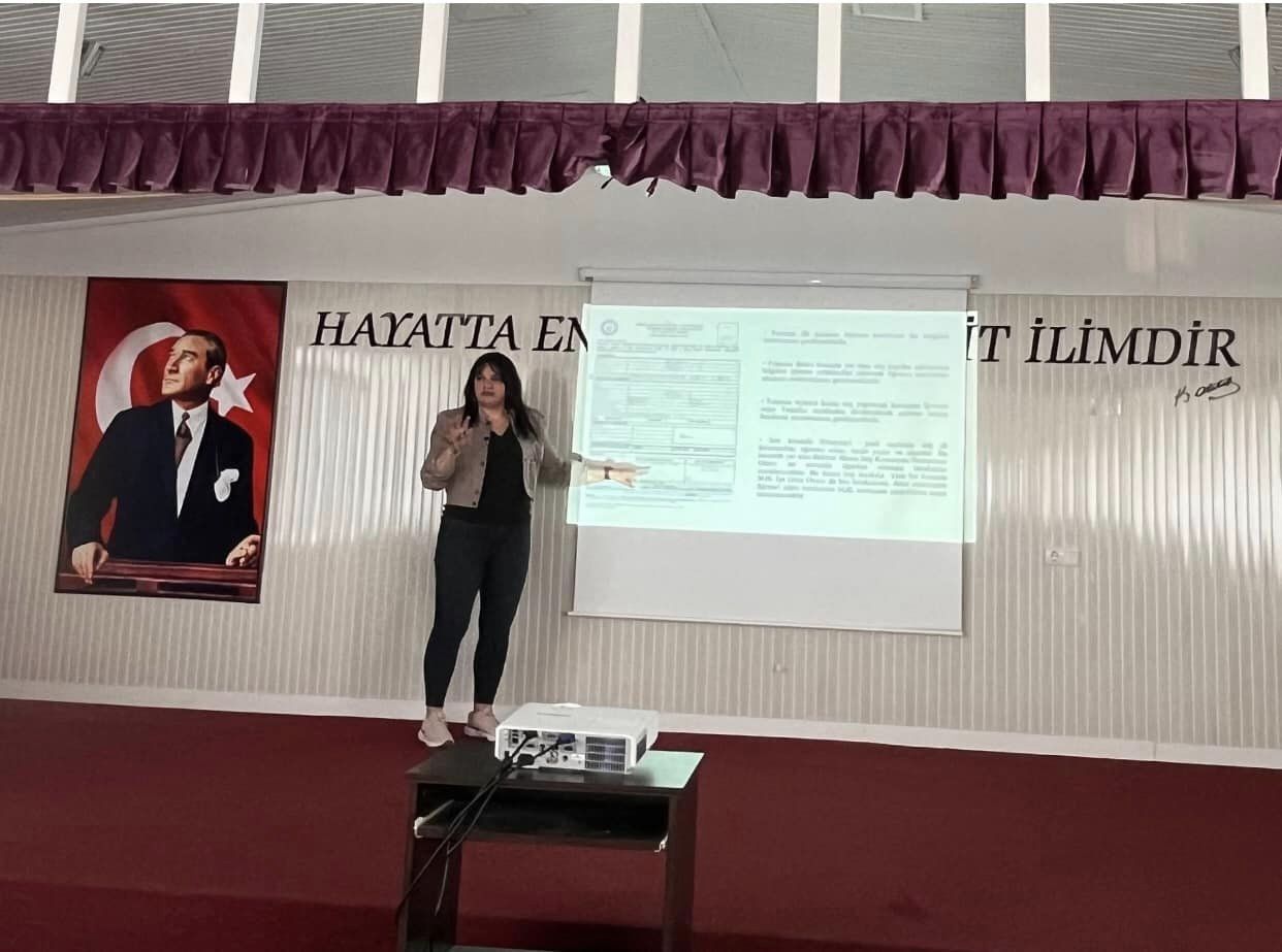 28 Mart 2024 tarihinde öğrencilerimize önümüzdeki staj dönemi için “2023-2024 Eğitim-Öğretim Yılı Yaz Stajı Başvuru ve Takip İlkeleri” hakkında bilgilendirme toplantısı gerçekleştirilmiştir. Akademik ve idari kadrolarımızın hazır bulunduğu toplantıda ADÜ Kuşadası MYO Müdürümüz Sayın Prof. Dr. Pınar ALTIOK GÜREL’in açılış konuşmasının ardından, Müdür Yardımcımız Sayın Öğr. Gör. Dr. Ahu SEZGİN staj sürecinin bütün aşamalarını anlatan bir sunum yapmıştır. Ardından Müdür Yardımcılarımız Sayın Öğr. Gör. Dr. Ahu SEZGİN, Sayın Öğr. Gör. Nurcan YILMAZ, Otel, Lokanta ve İkram Hizmetleri Bölüm Başkanı Dr. Öğr. Üyesi Emrah Köksal SEZGİN ve okulumuzun tüm akademik ve idari kadroları tarafından öğrencilerimizin staj süreci ile ilgili soruları cevaplandırılmıştır.