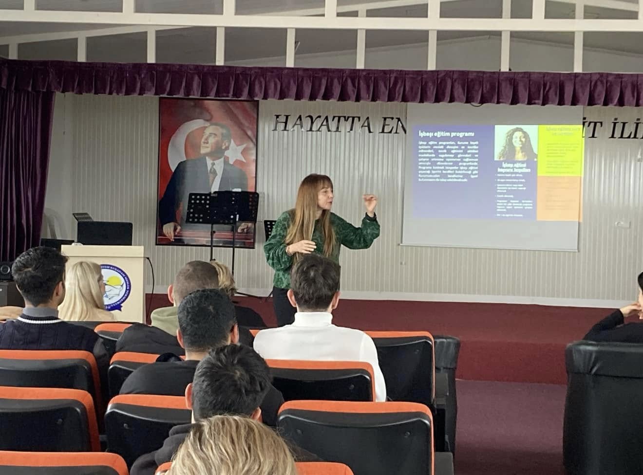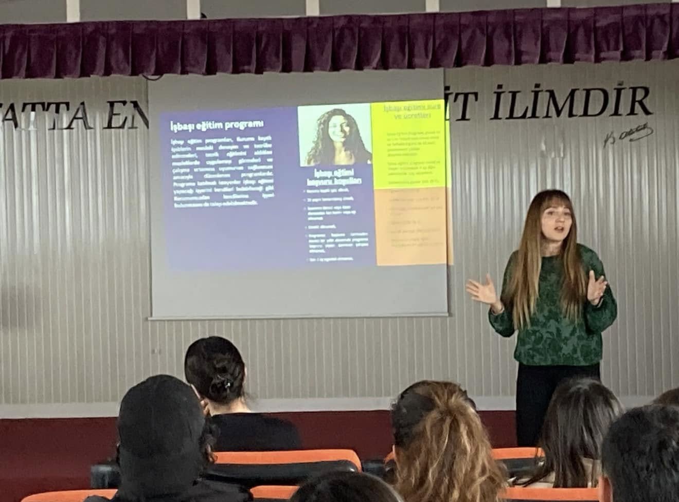 27 Şubat 2025 tarihinde Kuşadası İŞKUR Hizmet Merkezi Şube Müdürü Sayın Demet YILDIZ, İş ve Meslek Danışmanları Sayın Sibel AYDIN META ve Ayşe SELİMOĞLU, ADÜ Kuşadası Meslek Yüksekokulu Müdürümüz Sayın Prof. Dr. Pınar ALTIOK GÜREL’e ziyarette bulunmuşlardır. Müdür Yardımcılarımız Sayın Öğr. Gör. Dr. Ahu SEZGİN, Sayın Öğr. Gör. Nurcan YILMAZ ve Meslek Yüksekokulu V. Sekreterimiz Sayın Ufuk GÖVERCİ’nin hazır bulunduğu ziyarette, İŞKUR ile Meslek Yüksekokulu arasında gerçekleştirilmesi planlanan eğitim faaliyetleri üzerinde istişârelerde bulunularak ortaklaşa geliştirilecek yeni dönem çalışmalarımız üzerinde işbirliği yapılması kararı alınmıştır. Ayrıca Konferans salonumuzda önce Müdür Yardımcımız Sayın Öğr. Gör. Nurcan YILMAZ bilgilendirme amaçlı bir konuşma yapmış, ardından İŞKUR İş ve Meslek Danışmanı Sayın Sibel AYDIN META tarafından, akademik personelimizin ve öğrencilerimizin katılım gösterdiği bir sunum gerçekleştirilmiştir. Sunumda; gençlere yönelik mesleki eğitim, işbaşı eğitim programı, işbaşı eğitimi süre ve ücretleri, başvuru koşulları, staj portalı, mesleki yönelim test bataryası, nitelikli işgücü yetiştirme programı (NİYEP), gençlik programı, yetenek kapısı, EUROPASS uyumlu yapay zekâ destekli CV, ATS uyumlu CV, mülakatta dikkat edilmesi gereken özellikler, mülakat soruları, yurtdışında kullanılan en popüler iş arama kanalları olmak üzere geniş kapsamlı konular işlenmiştir. Etkinlik, öğrencilerin sorularının cevaplanması ve toplu fotoğraf çekimiyle son bulmuştur.
