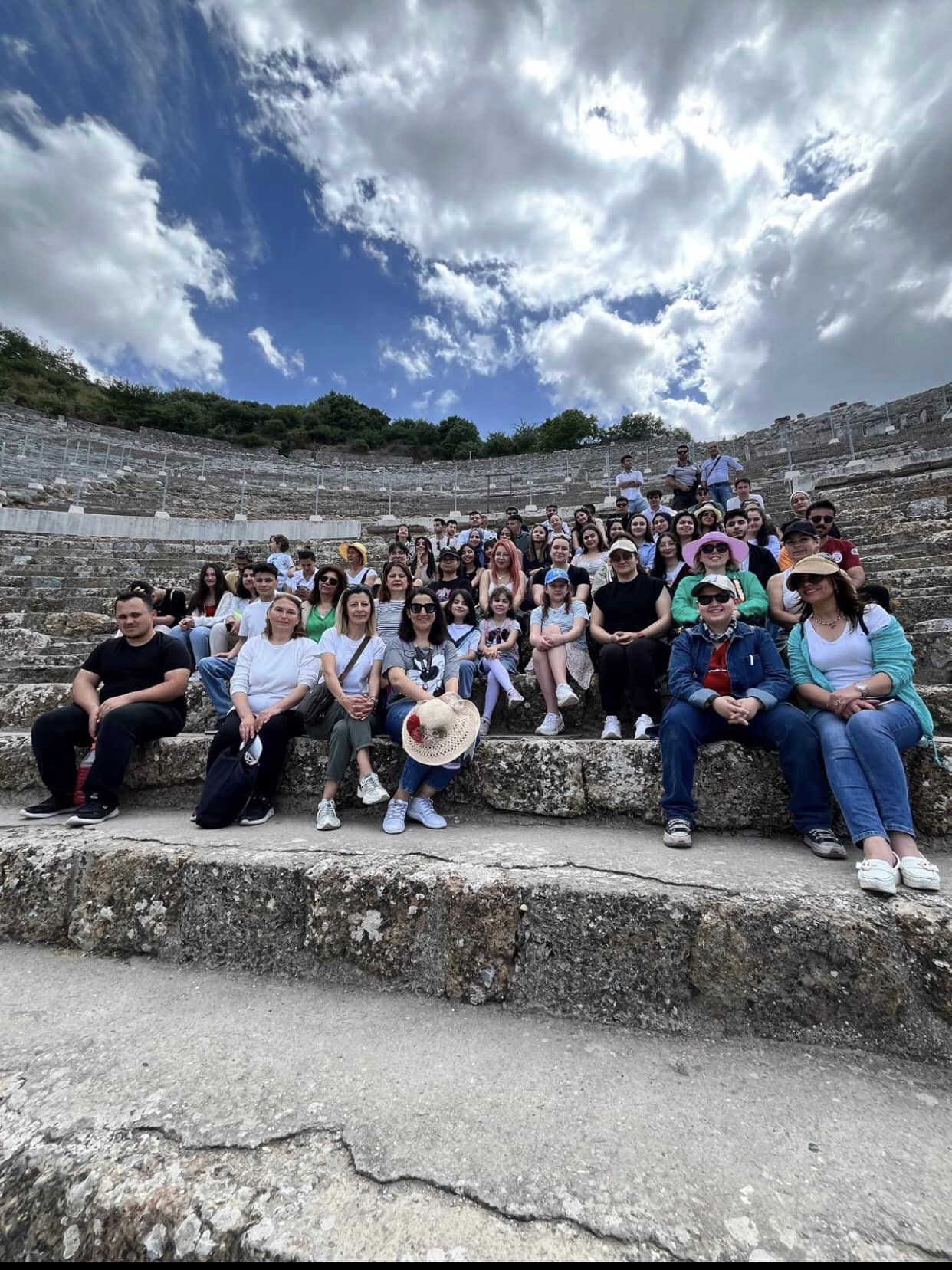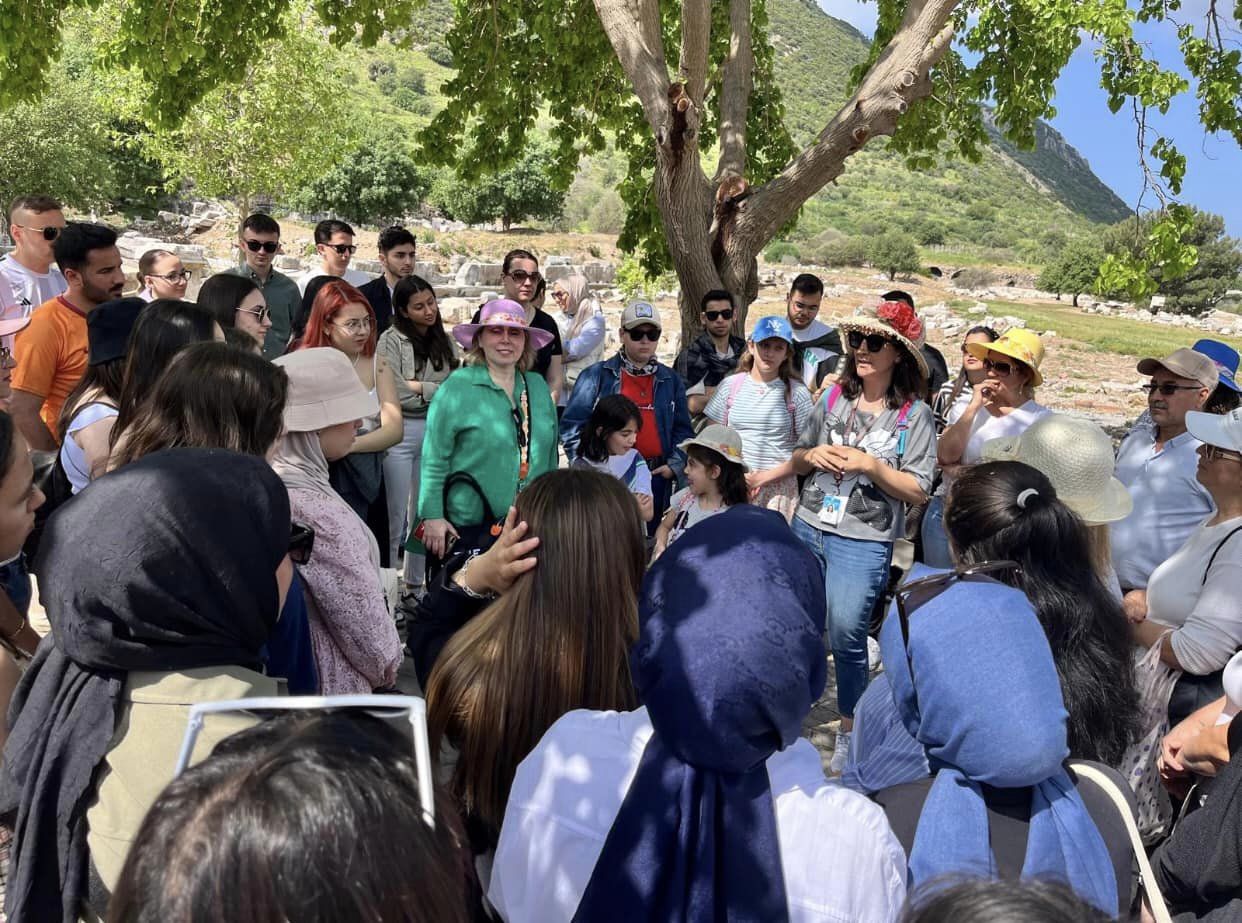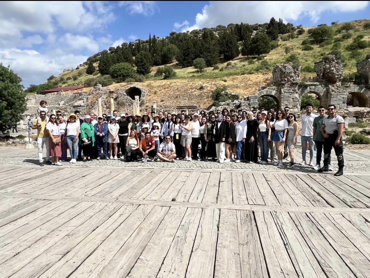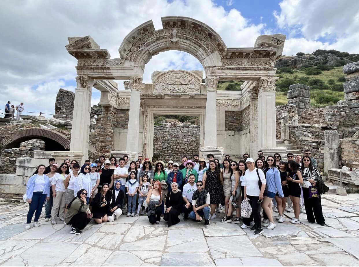 ADÜ Kuşadası MYO olarak 19 Nisan 2024 tarihinde Efes Antik Kenti’ne düzenlenen teknik geziye, ADÜ Kuşadası Meslek Yüksekokulu Müdürümüz Sayın Prof. Dr. Pınar ALTIOK GÜREL, Aşçılık, İkram Hizmetleri ve Turizm ve Otel İşletmeciliği programlarında eğitim görmekte olan öğrencilerimiz, akademik ve idari personelimiz katılım göstermişlerdir. ADÜ Kuşadası Meslek Yüksekokulu İkram Hizmetleri Programı Koordinatörü Profesyonel Turist Rehberi Dr. Öğretim Görevlisi Sayın Yeter ÇAN DOMRUK hocamızın eşsiz sunumuyla Efes Antik Kenti’nin tarihî süreç içerisinde geçirmiş olduğu bütün aşamalar, ülkemiz için taşıdığı kültürel ve turistik önem, Magnesia Kapısı, Doğu Gymnasiumu ve Devlet Agorası Hamamları, Agora, Odeon, Prytaneion, Herakles Kapısı, Kuretler Caddesi, Skolastika Hamamları, Latrina, Traian Çeşmesi, Yamaç Evler, Hadrianus Tapınağı, Aşk Evi, Mermer Cadde, Celcius Kütüphanesi, Ticaret Agorası, Mermer Cadde, Büyük Tiyatro, Liman Caddesi gibi öne çıkan Efes Antik Kenti Yapıları teknik ve bilimsel olarak bütün ayrıntılarıyla öğrencilerimize anlatılmıştır. Çok kıymetli hocamız Sayın Dr. Yeter ÇAN DOMRUK’a renkli ve muhteşem anlatımı için sonsuz teşekkürlerimizi sunuyoruz. Efes Antik Kenti teknik gezimizin gerçekleşmesi için günler öncesinden değerli emeklerini esirgemeyen ADÜ Kuşadası MYO Müdür Yardımcılarımız Sayın Öğr. Gör. Dr. Ahu SEZGİN’e ve Sayın Öğr. Gör. Nurcan YILMAZ’a, katılım gösteren değerli hocalarımıza ve idari personelimize, gezide ADÜ Kuşadası Meslek Yüksekokulu olarak gerçek bir aile olduğumuzu tüm davranışlarıyla sergileyerek bizleri gururlandıran sevgili öğrencilerimize sonsuz teşekkürlerimizi sunuyoruz. Gezimizde yiyecek içecek ikramlarını üstlenerek bizleri onore eden Gastronomi Derneği’ne sonsuz teşekkürlerimizi sunuyoruz. Turizm Haftası sebebiyle teknik gezimizin gerçekleştirilmesinde bizlere desteğini esirgemeyen Sayın Rektörlüğümüzün ilgili tüm birimlerine sonsuz teşekkürlerimizi sunuyoruz. Sevgi ve saygılarımızla.
