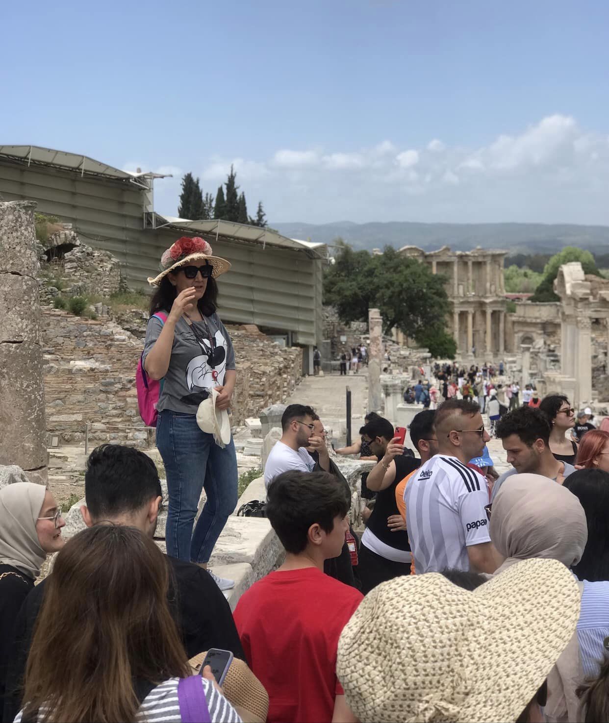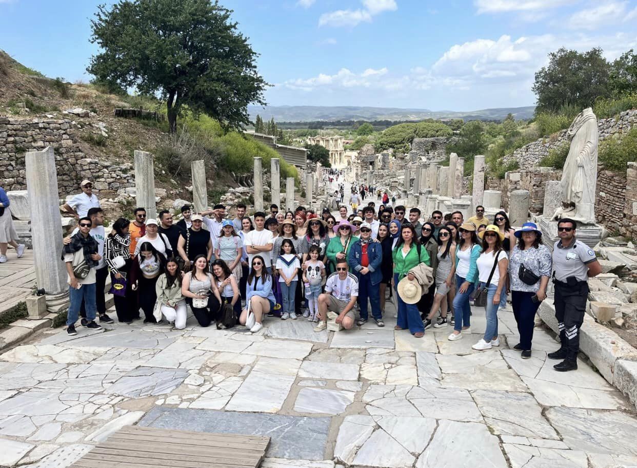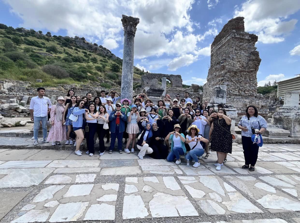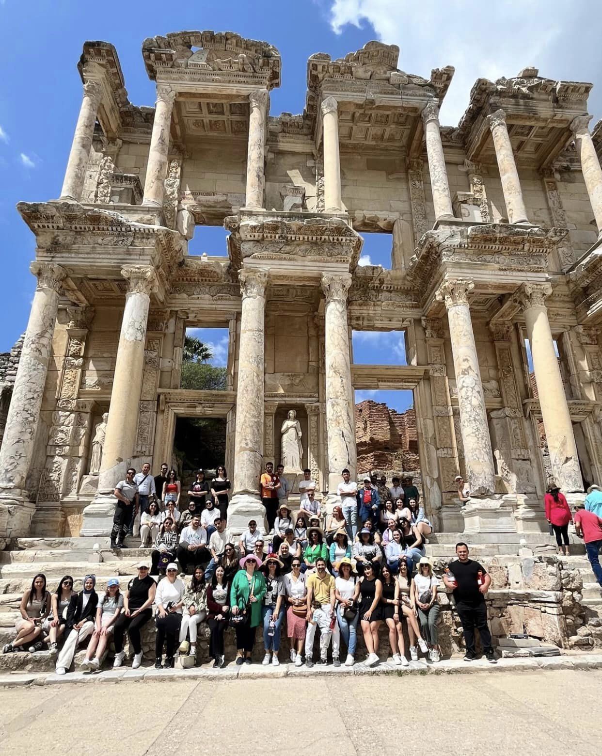 ADÜ Kuşadası MYO olarak 19 Nisan 2024 tarihinde Efes Antik Kenti’ne düzenlenen teknik geziye, ADÜ Kuşadası Meslek Yüksekokulu Müdürümüz Sayın Prof. Dr. Pınar ALTIOK GÜREL, Aşçılık, İkram Hizmetleri ve Turizm ve Otel İşletmeciliği programlarında eğitim görmekte olan öğrencilerimiz, akademik ve idari personelimiz katılım göstermişlerdir. ADÜ Kuşadası Meslek Yüksekokulu İkram Hizmetleri Programı Koordinatörü Profesyonel Turist Rehberi Dr. Öğretim Görevlisi Sayın Yeter ÇAN DOMRUK hocamızın eşsiz sunumuyla Efes Antik Kenti’nin tarihî süreç içerisinde geçirmiş olduğu bütün aşamalar, ülkemiz için taşıdığı kültürel ve turistik önem, Magnesia Kapısı, Doğu Gymnasiumu ve Devlet Agorası Hamamları, Agora, Odeon, Prytaneion, Herakles Kapısı, Kuretler Caddesi, Skolastika Hamamları, Latrina, Traian Çeşmesi, Yamaç Evler, Hadrianus Tapınağı, Aşk Evi, Mermer Cadde, Celcius Kütüphanesi, Ticaret Agorası, Mermer Cadde, Büyük Tiyatro, Liman Caddesi gibi öne çıkan Efes Antik Kenti Yapıları teknik ve bilimsel olarak bütün ayrıntılarıyla öğrencilerimize anlatılmıştır. Çok kıymetli hocamız Sayın Dr. Yeter ÇAN DOMRUK’a renkli ve muhteşem anlatımı için sonsuz teşekkürlerimizi sunuyoruz. Efes Antik Kenti teknik gezimizin gerçekleşmesi için günler öncesinden değerli emeklerini esirgemeyen ADÜ Kuşadası MYO Müdür Yardımcılarımız Sayın Öğr. Gör. Dr. Ahu SEZGİN’e ve Sayın Öğr. Gör. Nurcan YILMAZ’a, katılım gösteren değerli hocalarımıza ve idari personelimize, gezide ADÜ Kuşadası Meslek Yüksekokulu olarak gerçek bir aile olduğumuzu tüm davranışlarıyla sergileyerek bizleri gururlandıran sevgili öğrencilerimize sonsuz teşekkürlerimizi sunuyoruz. Gezimizde yiyecek içecek ikramlarını üstlenerek bizleri onore eden Gastronomi Derneği’ne sonsuz teşekkürlerimizi sunuyoruz. Turizm Haftası sebebiyle teknik gezimizin gerçekleştirilmesinde bizlere desteğini esirgemeyen Sayın Rektörlüğümüzün ilgili tüm birimlerine sonsuz teşekkürlerimizi sunuyoruz. Sevgi ve saygılarımızla.