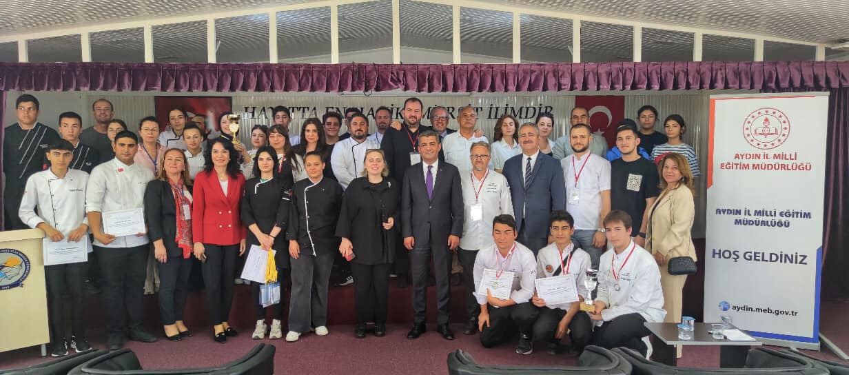 Ülkemizde 81 ilde bulunan Yiyecek İçecek Hizmetleri alanı öğrencilerinin katılımıyla Milli Eğitim Bakanlığı Meslekî ve Teknik Eğitim Genel Müdürlüğü koordinesinde düzenlenen MEB Gastronomi Festivali ve Yemek Yarışması’nın Ege Bölgesi ayağı 17 Nisan 2024 tarihinde Meslek Yüksekokulumuz mutfak atölyesinde yapılmıştır. Yarışmaya Aydın ve Muğla illerinde bulunan 3’er kişilik ekiplerden oluşan 15 farklı Meslekî ve Teknik Anadolu Lisesi öğrencileri katılmıştır. Ayrıca okul müdürleri ve danışman hocalar da öğrencilere eşlik etmiştir. Yarışmanın Ege Bölge koordinatörlüğünü Meslek Yüksekokulumuz Otel, Lokanta ve İkram Hizmetleri bölüm başkanı Dr. Öğr. Üyesi Emrah Köksal SEZGİN yapmıştır. Yarışma süresince liseler ve MEB organizasyonu bölge sorumlusu, Kadıköy Abdülhamid Han Mesleki ve Teknik Anadolu Lisesi Müdürü Merzuka AKPINAR tarafından sağlanmıştır. Ayrıca organizasyona Aydın İl Milli Eğitim Müdürü Süleyman EKİCİ, Aydın İl Milli Eğitim Müdür Yardımcısı Gülfidan KENDİRLİOĞLU ve Kuşadası İlçe Milli Eğitim Müdürü Sayın İbrahim ATAMAN katılmışlardır. Yarışma ADÜ Kuşadası Meslek Yüksekokulu Müdürümüz Prof. Dr. Pınar ALTIOK GÜREL, Otel, Lokanta ve İkram Hizmetleri bölüm başkanımız Dr. Öğr. üyesi Emrah Köksal SEZGİN ve Aydın İl Milli Eğitim Müdürü Süleyman EKİCİ’nin konuşmalarının ardından ödül töreni ile sona ermiştir. ADÜ Kuşadası MYO olarak, yarışmaya katılan ve dereceye giren bütün öğrencileri tebrik ediyor başarılar diliyoruz. Milli Eğitim Bakanlığı nezdinde gerçekleştirilen böylesi bir yarışmada okulumuzun, Üniversitemize yakışır bir ev sahipliği yapabilmesi için günler öncesinden değerli emeklerini esirgemeyen ADÜ Kuşadası MYO Müdür Yardımcımız Sayın Öğr. Gör. Dr. Ahu SEZGİN’e, Otel, Lokanta ve İkram Hizmetleri bölüm başkanımız Dr. Öğr. Üyesi Emrah Köksal SEZGİN’e, idari personelimize ve gönüllü olarak katkı sağlayan sevgili öğrencilerimiz İrem SEMİZ, Alihan ÇEVİKER, Mehmet Fatih IŞIK ve Orçun GACAR’a sonsuz teşekkürler ederiz. Sevgi ve saygılarımızla.