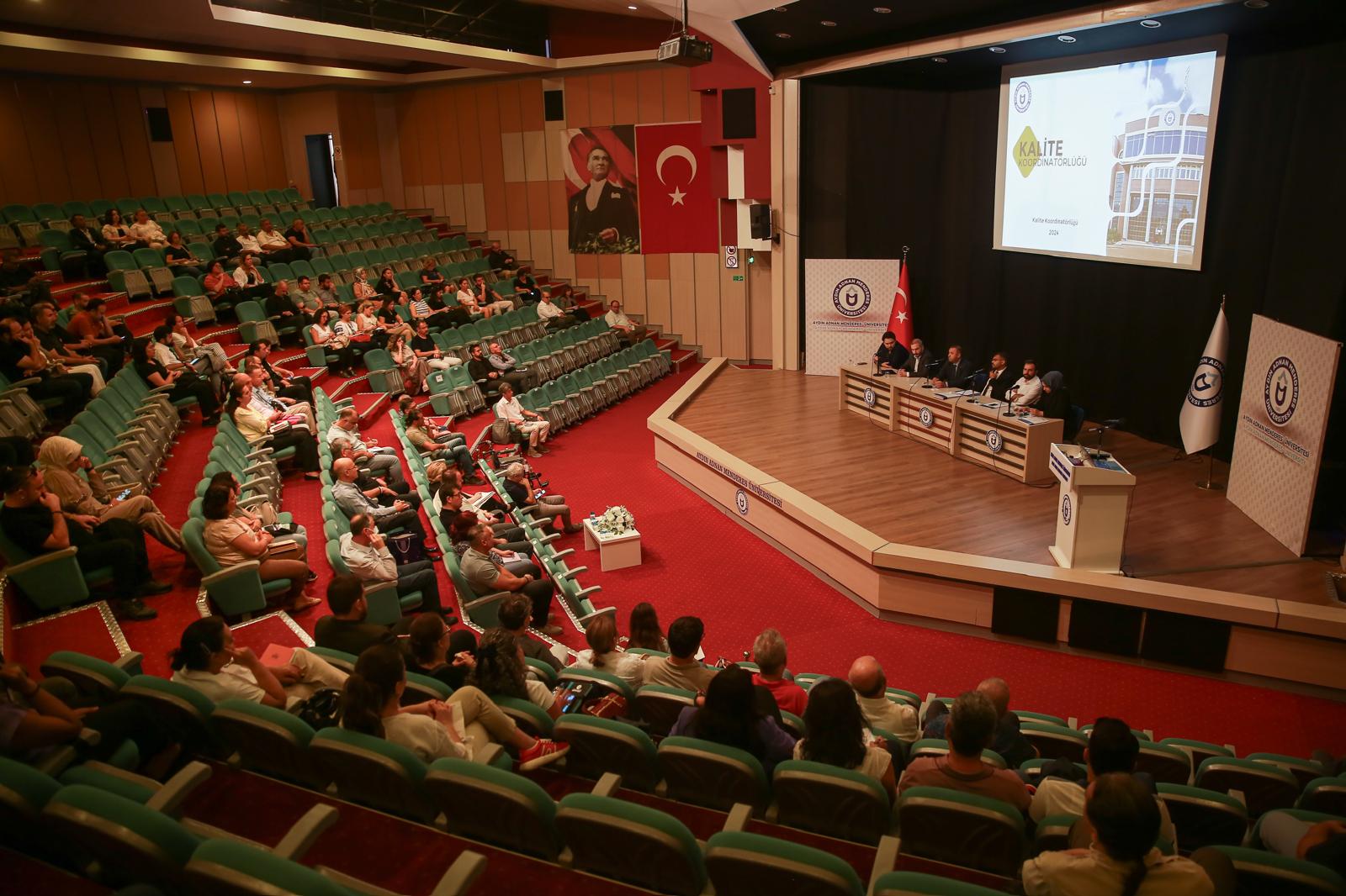 Üniversitemiz Kalite Koordinatörlüğü tarafından 24 Eylül 2024 tarihinde Merkez Kampüs Atatürk Kongre Merkezi Aydın Bey Salonu’nda gerçekleştirilen toplantıya, Üniversite Rektörümüz Sayın Prof. Dr. KENT, Rektör Yardımcısı Sayın Prof. Dr. Cemal İYEM, Genel Sekreter V. Sayın Prof. Dr. Bertan AKYOL, Rektör Danışmanı Sayın Dr. Öğr. Üyesi Ahmet Fatih HACIYUSUFOĞLU ve Üniversitemiz’in birim bölüm başkanlıklarını yürüten akademisyenler katılım göstermişlerdir.