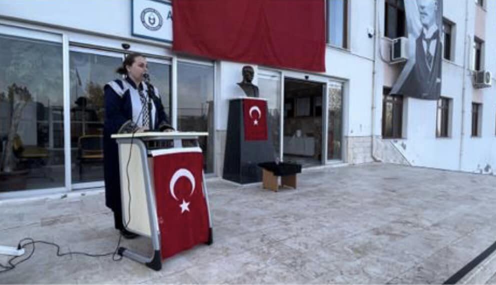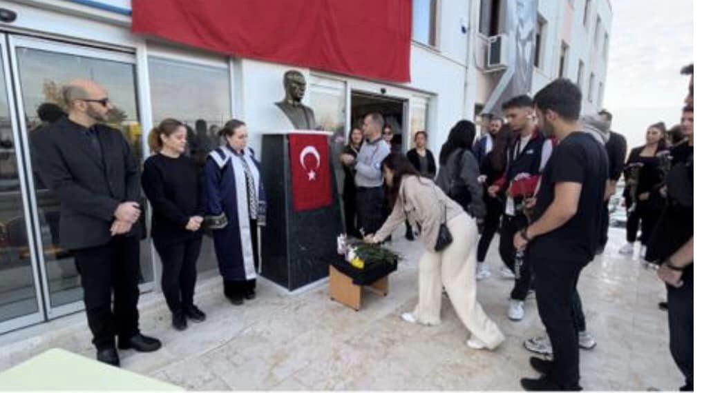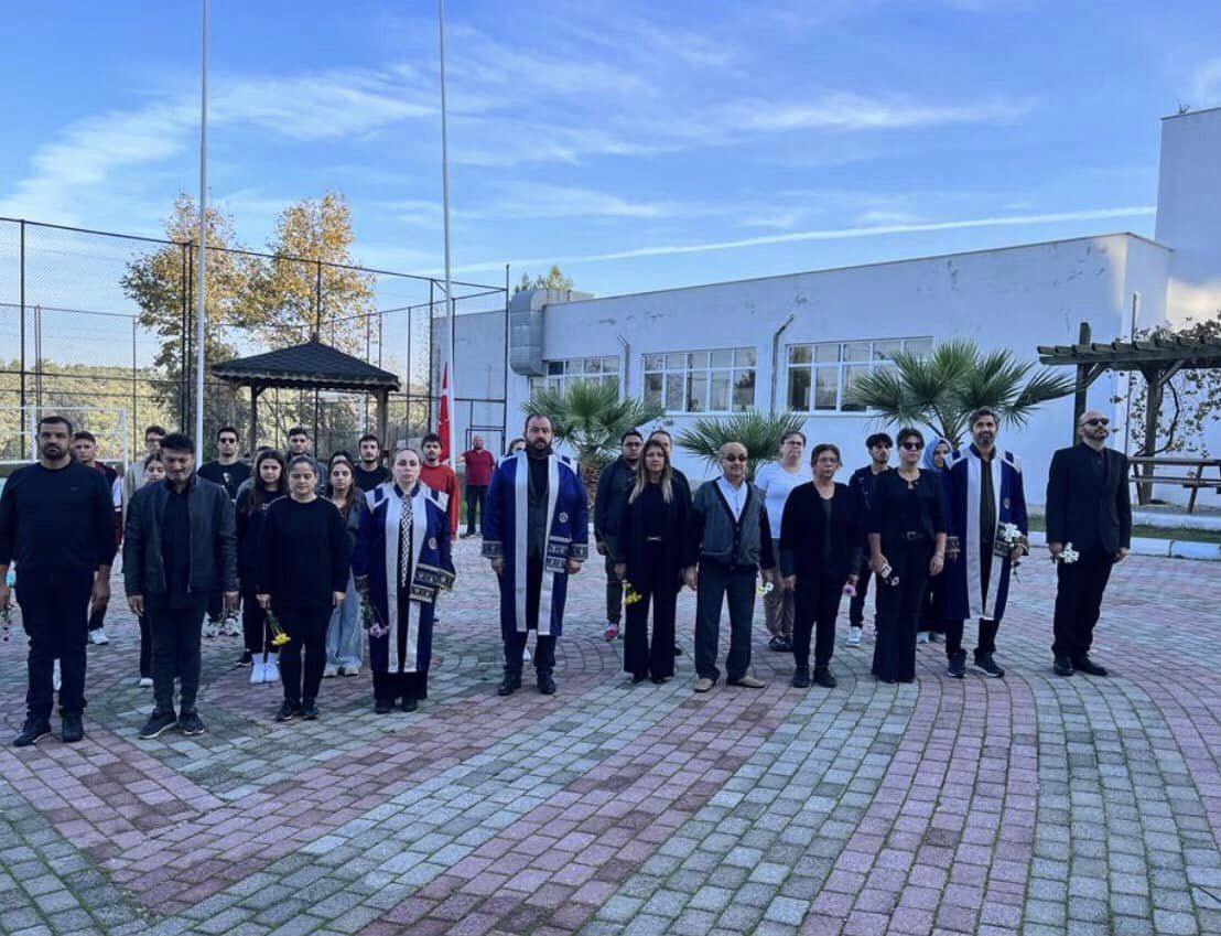 ADÜ Davutlar Meslek Yüksekokulu’nda, 10 Kasım 2023 tarihinde, Gazi Mustafa Kemal ATATÜRK’ün vefatının 85. yılı münâsebetiyle anma töreni düzenlendi. Akademik-idari kadromuz ve öğrencilerimizin hazır bulunduğu törende, siren sesi-saygı duruşu ve İstiklâl Marşı’mızın okunmasının ardından, Meslek Yüksekokulu Müdürümüz Sayın Prof. Dr. Pınar ALTIOK GÜREL’in günün anlam ve önemine ilişkin konuşmasının ardından, öğrencilerimiz ve tüm kadromuz Atatürk Büstümüze, Ata’mızın sevdiği çiçekler olan kasımpatıları sunarak saygılarını dile getirdiler.