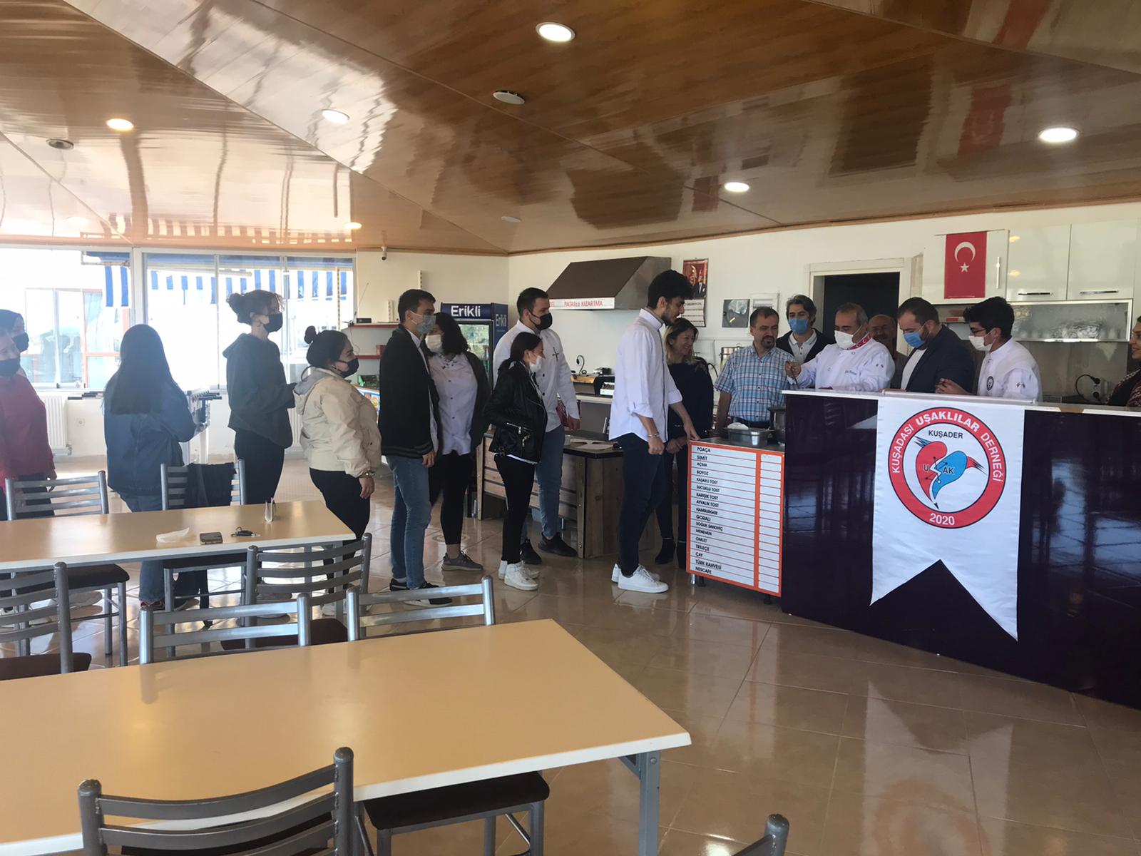 25.10.2021 Pazartesi günü KuÅŸadası UÅŸaklılar DerneÄŸi tarafından üstlenilen Davutlar MYO Askıda Çorba hizmeti yüksekokulumuz öÄŸrencilerinin katılımıyla gerçekleÅŸti. Dr. ÖÄŸretim Üyesi Emrah Köksal SEZGİN’in öÄŸrencileriyle birlikte hazırladığı yöresel tarhana çorbası Yüksekokul Müdürümüz Doç. Dr. Aziz BOSTAN tarafından öÄŸrencilere dağıtılmıştır. Yüksekokulumuzun bu ilk uygulamasını üstlenen KuÅŸadası UÅŸaklılar DerneÄŸi BaÅŸkanı Dr. Remzi GEDİZ’e ve dernek üyelerine Yüksekokul ailesi olarak teÅŸekkür ederiz.