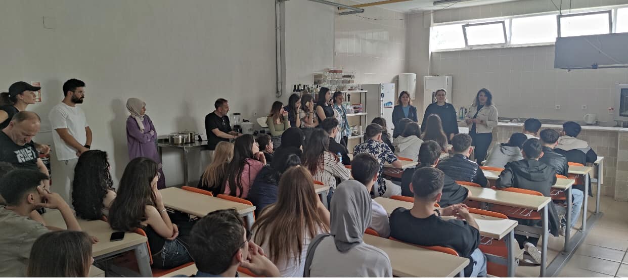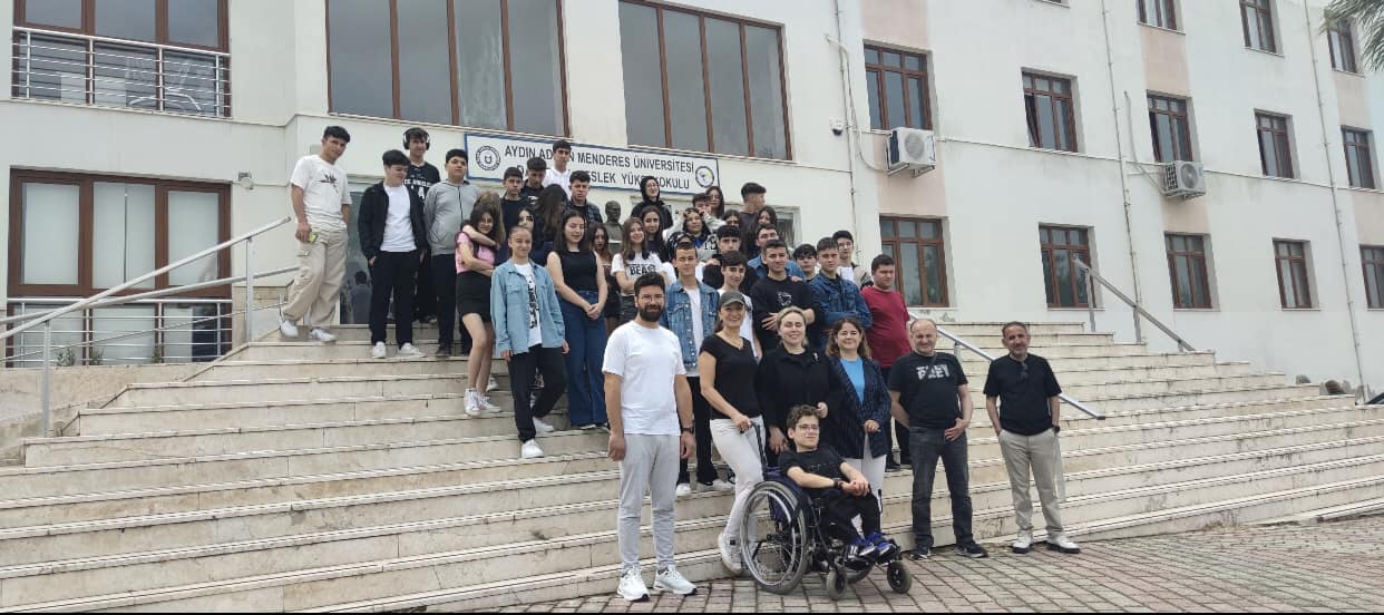 İzmit BaÅŸöÄŸretmen Meslekî Teknik Anadolu Lisesi Müdür Yardımcıları Sayın Hüseyin KARAMAHMUT ve Sayın Ahmet ÜNLÜ, İngilizce ÖÄŸretmeni Sayın Sevda ÅžAHİN, İdari Personel Sayın Sinan YILMAZ ve 50 kiÅŸilik öÄŸrenci grubu ile 25.04.2024 tarihinde okulumuza ziyaret gerçekleÅŸtirmiÅŸlerdir. (YKS) YükseköÄŸretime GeçiÅŸ Sınavları aÅŸamasında okulumuzu yakından tanımak ve bölümlerimiz hakkında bilgi edinmek amacıyla kampüsümüze gelen İzmit BaÅŸöÄŸretmen Meslekî Teknik Anadolu Lisesi öÄŸrencileri Üniversite’mizdeki ortamı yakından tanıma olanağı bulmuÅŸlardır. ADÜ KuÅŸadası Meslek Yüksekokulu Müdürümüz Sayın Prof. Dr. Pınar ALTIOK GÜREL tarafından konuklarımıza okulumuzla ilgili bilgilerin verildiÄŸi ziyarette, Müdür Yardımcılarımız Sayın ÖÄŸr. Gör. Dr. Ahu SEZGİN ve Sayın ÖÄŸr. Gör. Nurcan YILMAZ ve idari personelimiz hazır bulunmuÅŸlardır. Önce Müdür Yardımcımız Sayın ÖÄŸr. Gör. Dr. Ahu SEZGİN tarafından mutfak atölyemizde ve gastro-amfimizde konuk öÄŸrencilerimize tanıtım ve bilgilendirme konuÅŸması yapılmıştır. Ardından, konferans salonumuzda Müdür Yardımcımız Sayın ÖÄŸr. Gör. Nurcan YILMAZ’ın okulumuzda bulunan programlar, idari ve akademik kadrolarımız, fiziksel altyapımız, teknik olanaklarımız, okulumuzdaki sosyal ve sportif faaliyetler, Erasmus faaliyetlerimiz, sektörel iÅŸbirliklerimiz, staj imkânlarımız, mezunlarımızın çalışma alanları, bölümlerimizin iÅŸ bulma avantajları, katıldığımız etkinlikler, düzenlediÄŸimiz sosyal sorumluluk projeleri, gezi programları gibi pek çok konuyu içeren geniÅŸ kapsamlı sunumuyla detaylı bir ÅŸekilde bilgilendirilen konuklarımızla, merak ettikleri konularda sohbet edilerek soruları cevaplandırılmıştır.