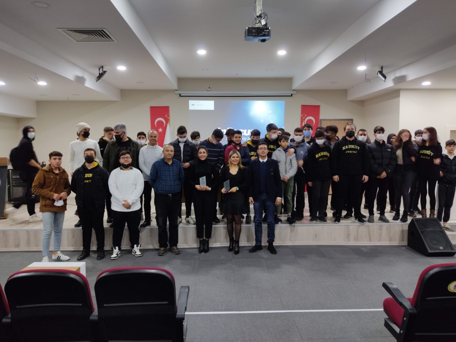 Yüksekokulumuz Müdür Yardımcısı Öğr. Gör. Dr. Ayşe ARSLAN ve Turizm Fakültesi Araştırma Görevlisi Sibel KAÇAR 10 Ocak 2022 tarihinde Kariyer Günleri etkinliği kapsamında Kadıköy Abdülhamid Han Mesleki ve Teknik Anadolu Lisesi öğrencileri ile bir araya geldi. Profesyonel turist rehberliği ve akademisyenlik hakkında bilgi verildi. Öğrencilerin soruları cevaplandı .Program plaket takdimi ile sona erdi.
