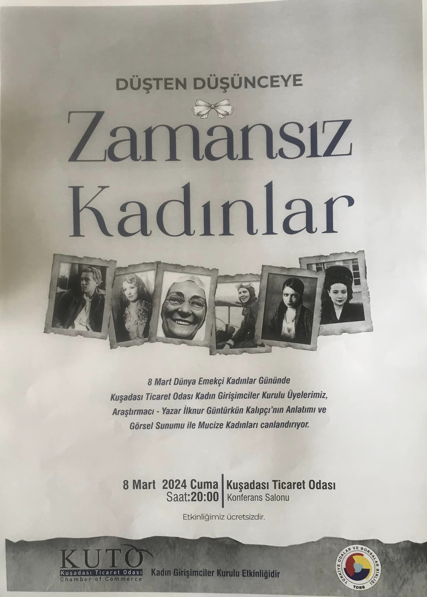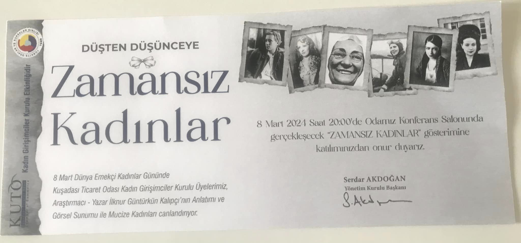 Ayrıca bizleri KUTO Kadın Girişimciler Kurulu tarafından 8 Mart 2024 tarihinde gerçekleştirilecek olan “Zamansız Kadınlar” isimli etkinliklerine davet etmişlerdir.