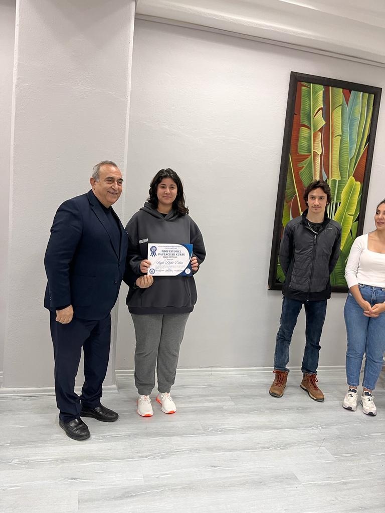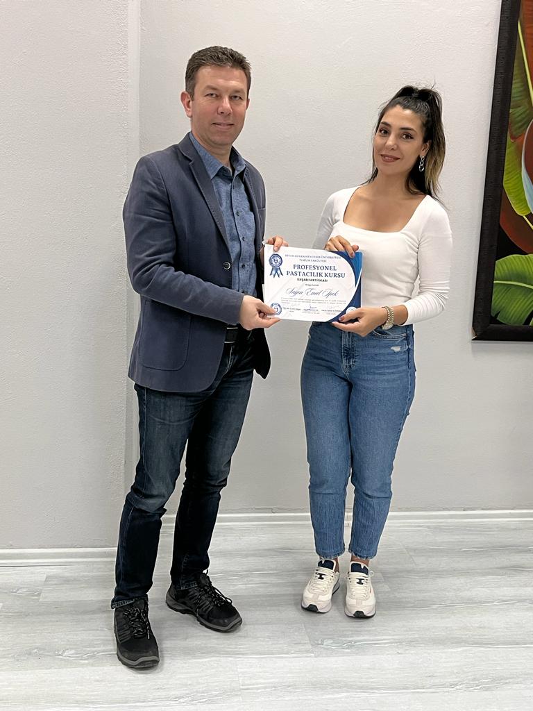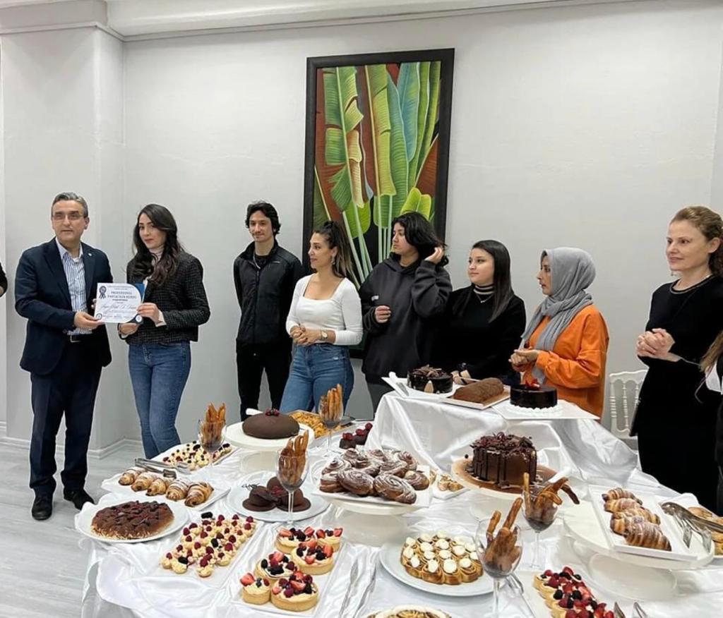 Aydın Adnan Menderes Üniversitesi Turizm Fakültesi tarafından düzenlenen Pastacılık Kursu sertifikaları ve Turizm Fakültesi mutfak ekipman bağışçılarının teşekkür plaketleri, Kuşadası Kaymakamı Sayın Sadettin YÜCEL, Kuşadası İlçe Jandarma Komutanı Sayın Mustafa KARAGÖZ, Turizm Fakültesi Dekan Yardımcısı ve Karacasu Meslek Yüksekokulu Müdürü Sayın Doç. Dr. Aziz BOSTAN, Davutlar Meslek Yüksekokulu Müdürü Sayın Doç. Dr. Pınar ALTIOK GÜREL, akademik ve idari personel ve davetlilerin katılımıyla gerçekleştirilen törenle takdim edilmiştir. Pastacılık Kursu’nun eğitmeni Sayın Öğr. Gör. Okan Umut ŞİMŞEK ve eğitimlerini tamamlayarak sertifika almaya hak kazanan katılımcılar tarafından hazırlanan ürünler, davetlilere sunulmuştur.